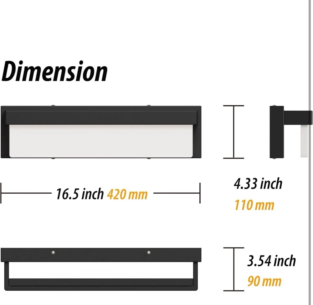 LED Bathroom Vanity Light Fixture Over Mirror 16.5 inch Modern Rectangle Black