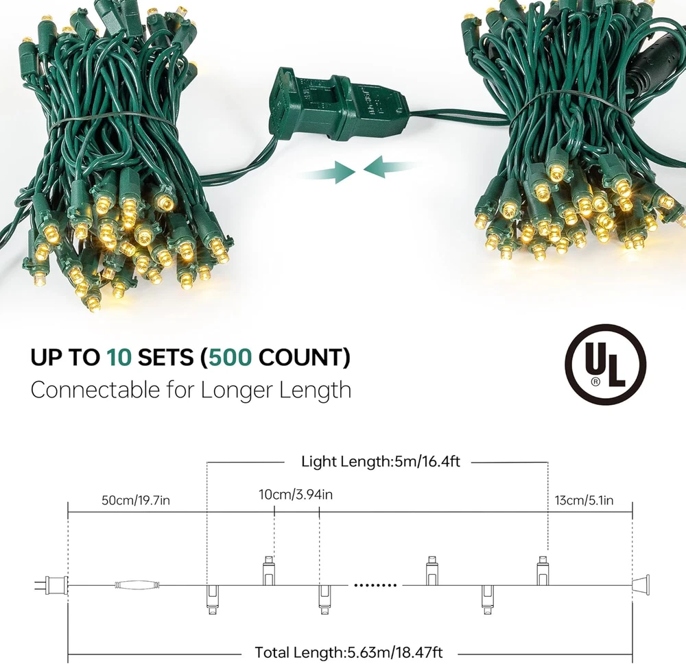 Store New Arrivals Add to Favorite View Feedback Contact Fast deliveries to the customer's home Quality customer service John Make the customers happy! LED Christmas Lights, Mini Led Lights Outdoor Indoor Plug in Waterproof String Lights 16.4Ft 50 Count 2 Pack Steady On, Tree Lights for Party Wedding Home Holiday Decoration (Warm White) Description 5mm led lights: Green wire double pack warm white 50 led Christmas lights 5mm steady steady, each string length: 5m/16.4ft,110 volts, distance between each string of lights: 7cm/2.76 inches, lead length: 50cm/1.6 inches, each Christmas light has male and female plugs for easy end-to-end connection and can be connected to up to 10 groups for a brighter effect. Waterproof and durable christmas lights: led lights are durable, with IP44 waterproof rating, strong waterproof function, even in rainy days also give full play to the lamp string function. At the same time, the led string has a strong life, the use of thick green wire, with a strong insulated copper core, will not produce entanglement when used, the wire is soft, but also easy to operate. High-quality led lights: These high-quality led strings are UL certified and durable, where the rectifier on the string allows lED lamps to have stable voltage and function without safety concerns, and these LED lights have a constant temperature compared to incandescent lamps. Detachable led lights: led string bulbs are removable and easily repaired and replaced with spare extra bulbs when the bulbs burn out or break. There is a fuse in the plug to prevent the bulb from burning out. We also offer 4x extra bulbs for you to replace without having to worry about burnout or overload. Led christmas lights outdoor & Indoor: Warm white light strings are suitable for indoor and outdoor Christmas decorations and Christmas tree lights, can be used in Christmas, Valentine's Day, Halloween, can also be used for wedding, party, bedroom, home, courtyard, wall, garden or balcony decoration, bringing a comfortable and warm feeling. Product Description Connectable 1 Porch 2 Festivals 3 Outdoor 4 Indoor Get in the Christmas spirit The video showcases the product in use. The video guides you through product setup. The video compares multiple products. The video shows the product being unpacked. Led lights embellish the festive atmosphere Item model number QX-50-1-C series Light Source Type LED Style Modern Power Source Corded Electric Number of Light Sources 50 Control Method Touch Theme Christmas,holiday,Valentine’s Day, Birthday Batteries Included? No Controller Type Touch Control Batteries Required? No Package Dimensions 5.55 x 4.21 x 3.66 inches Indoor/Outdoor Usage Indoor Light Color Warm White Item Weight 13.4 ounces Occasion Christmas,Party,Wedding,Home Special Features Corded Special Feature Corded Part Number E115096 Color Warm White Size 50LED ABOUT US We offer the best prices around on high quality products. Our E-store includes media such as books, movies, music and games while offering electronics, toys, sporting apparel, clothing, tools, general home, garden items and more. SHIPPING We are always working hard to ensure your package arrives as soon as possible. Please understand that some factors like weather, high postal traffic, and the performance of shipping companies are outside of our control. We offer free shipping to the lower 48 states and ship within 2 business days of payment, usually sooner. We do not accept P.O. Boxes. Please provide a physical address. For shipping outside of the continental USA, we only use eBay's Global Shipping Program. The item is shipped to KY and then sent to the rest of the world. International customers are responsible for all duties and taxes. Continue to 'check out' to calculate costs for shipping the item to your country. Messages regarding eBay's Global Shipping Program MUST be directed at eBay EXCLUSIVELY. RETURNS We offer a 30-Day Return Policy on items in which you are not completely satisfied with. You have the option of a full-refund or an exchange of the item. No returns are available on items shipped outside of the USA PAYMENT We accept PayPal. CONTACT US This page content is yet to come Please ad us to your favorite seller and visit again later Thank You CUSTOMER SATISFACTION We try our very best to make sure every customer is completely satisfied. If there's a problem, message us! We're happy to help. WE ACCEPT