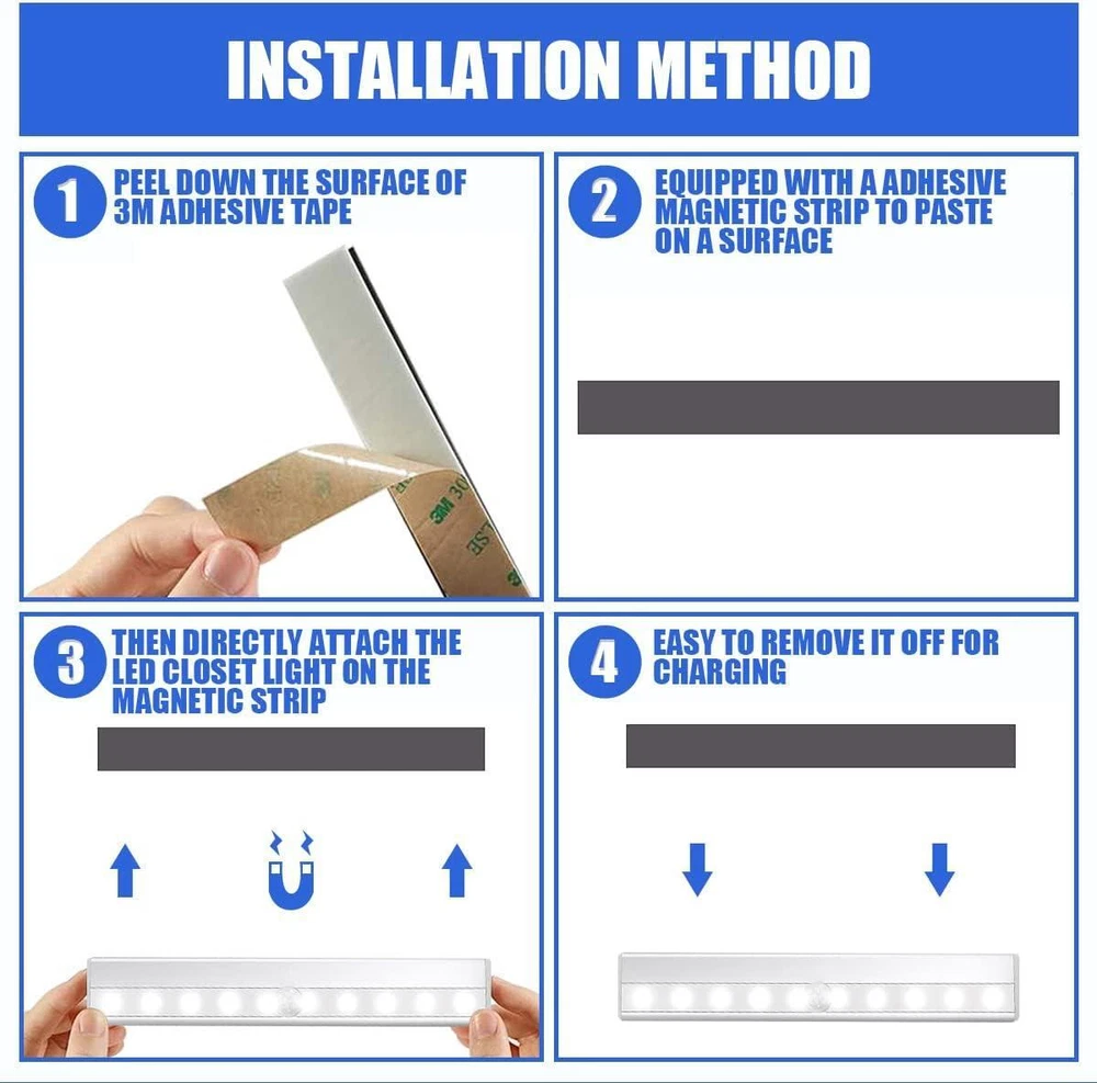 CONTACT US DIRECTLY FOR FREE & PREPAID RETURNS LED Closet Light Motion Activated, Under Cabinet Lights, Homelife LED Lights LED Closet Light Motion Activated, under Cabinet Lights, Homelife LED Lights Description Item model number DCK-3 Light Source Type LED Style Modern Power Source Battery Powered Number of Light Sources 10 Control Method App Batteries Included? No Lighting Method LED Mounting Type Adhesive,Magnetic Mount,Under Cabinet,Surface Assembled Height 3 centimeters Controller Type Push Button Unit Count 3.0 Count Room Type Pantry, Storage Room, Garage, Kitchen, Bathroom, Basement, Hallway Assembly Required No Product Dimensions 7.48 x 0.59 x 1.18 inches Material Plastic, Metal Assembled Width 1.5 centimeters Installation Type Adhesive Mount Model Name LED Specific Uses For Product Cabinet Included Components 3x Motion Sensor Lights, 1x User Manual Fixture Type Non Removable Brightness 120 Lumen Country of Origin China Batteries Required? Yes Item Weight 10.2 ounces Shade Material Acrylonitrile Butadiene Styrene, Aluminum Light fixture form Vanity Special Features Motion Sensor Special Feature Motion Sensor Part Number DCK-3 Shade Color White Color Temperature 6000 Kelvin Color Bright White Shape Linear Voltage 6 Volts Plug Format magnetic Assembled Length 19 centimeters Size 3 Pack 1、★【AUTOMATIC MOTION SENSOR】: with passive infrared technology (PIR) detects human motion to automatically turn on in the dark. These Motion Sensor Closet Lights have a 9-foot sensor range. Automatically turns off after 20 seconds with no motion or if other light sources are detected. Saves your batteries by not turning on in the daylight. 2、★【EASY TO INSTALL】: These homelife led bars motion sensor lights include a magnetic strip with an adhesive backing for easy peel and stick installation. The LED cabinet lights attach to the magnetic strip for easily detaching and battery replacement. No tools, screws or nuts are required. Mount it on any dry, clean, and flat surface. 3、★【BRIGHT UNDER THE COUNTER LIGHTS】: These lights for the kitchen are brighter than other similar lights, with 10 LEDs in each light, motion sensor lights provide enough light to make sure you never stumble in the dark. Energy-saving and environmentally friendly. 4、★【BATTERY OPERATED】: Completely wireless for an easy and neat installation. Each under cabinet light bar is powered by 4 AAA batteries (not included). Simply detach the lights from the magnetic strip for quick battery replacement. Built-in daylight sensor ensures a long battery life by not turning on when other light sources are detected. 5、★【MULTI-PURPOSE 】: This motion sensor cabinet light can be used in the kitchen, closet, pantry, hallway, bathroom, safe, drawers, attics, basements, kid's room, cupboard, emergency supplies storage room, garage, medicine cabinet, storm cellar, storage unit, vanity mirror, workstation, and anywhere you need hands free lights. Bright 10 LED Motion Sensor Closet Light Battery Powered Powered by 4x AAA Batteries(Not Included), the LED motion sensor light can work for a long time so that you will not have any concern in the use. Also, you can save much time pulling and charging. Stick on Anywhere No tools, screws are needed, you can stick-on anywhere you want by the help of the adhesive strip with magnetic fields of the light. You can mount the light on the places such as closet, kitchen,stairs and hallway. Widely Application The motion sensor light is perfect for various places such as closet, wardrobe, under kitchen cupboard, corridor, attics, stairs, garage, basement, kitchen cabinets or anywhere you need illumination. Battery Closet Lights Specification LED Quantity: 10 LED Material: Aluminum+ABS Color: White Battery Required: 4x AAA Batteries(Not included) Sensitivity Distance: 10ft Detection Angle: 120 degrees Package Content : 3x Motion Sensor Light 1x User Manual REVIEWS The product came very well packaged. I'm very happy. thank you for everything. Seller strongly recommended. This is great! I definitely recommend! Product looks amazing Delivery was fast. Excellent seller, great communication. I advise everyone