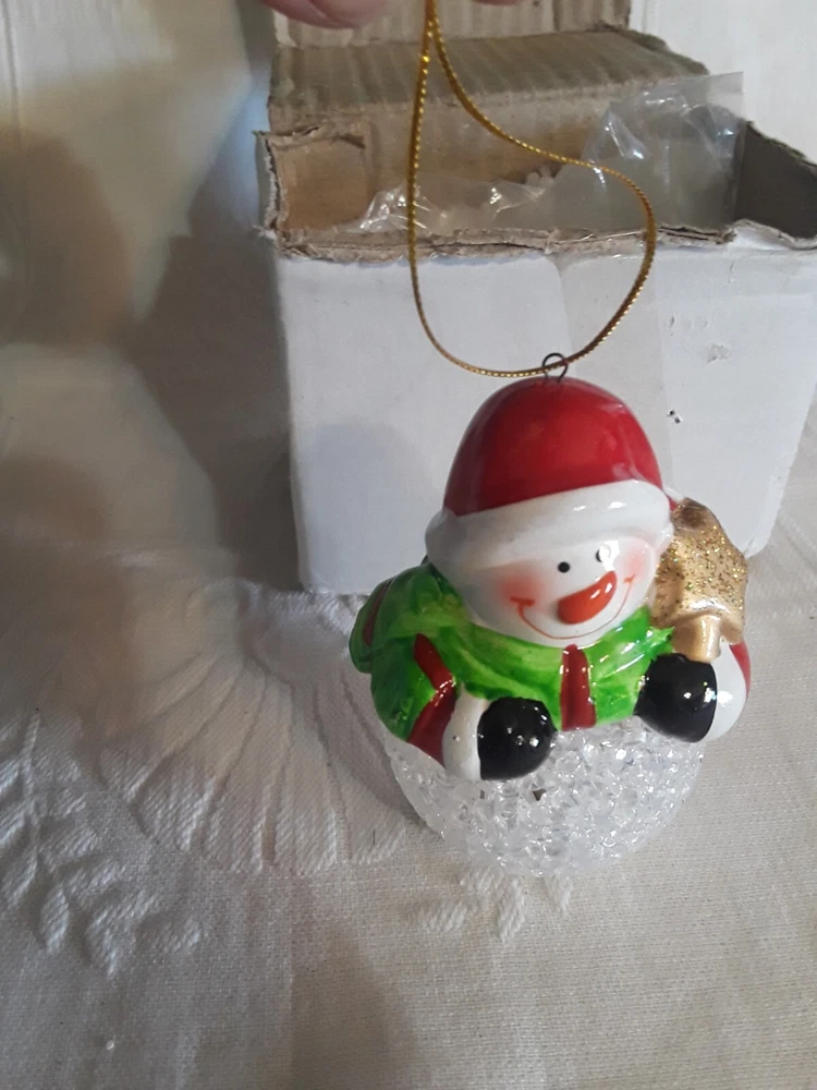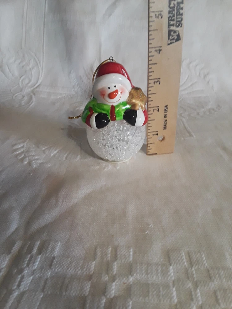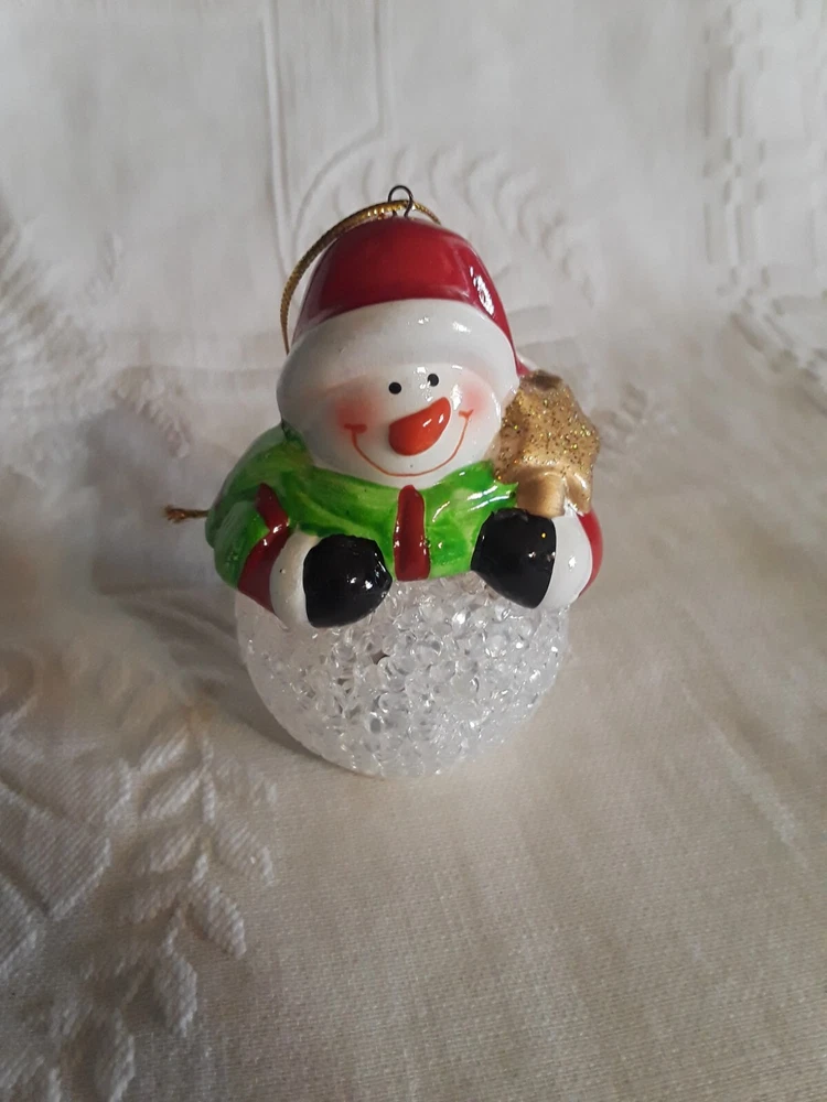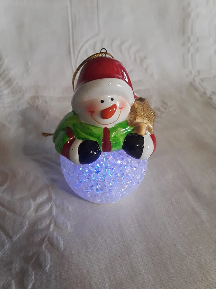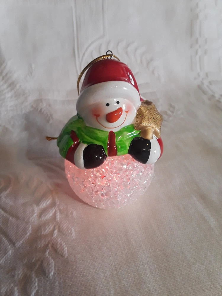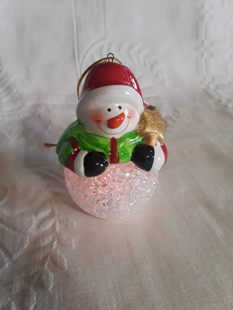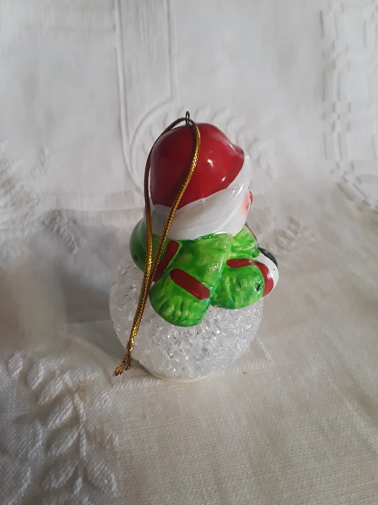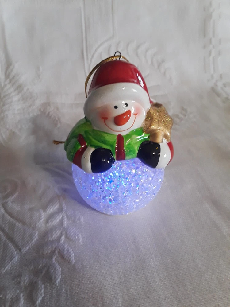 LED Color Changing Snowman Christmas Decor Battery Operated Ceramic/ Acrylic New