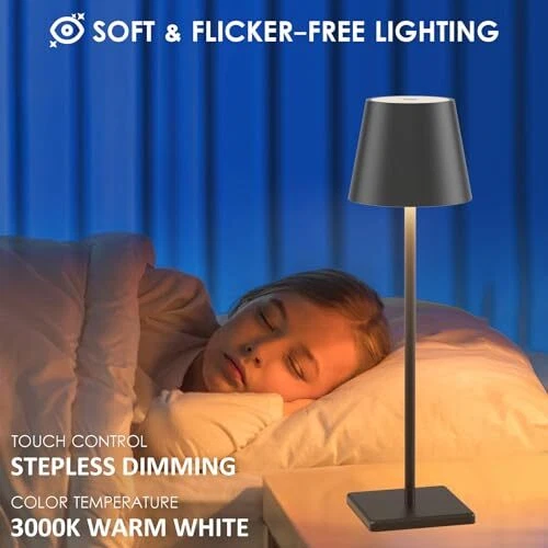 Menu 1. We require immediate payment. 2. We currently accept payment via eBay managed payments only. 3. Once payment is cleared, we will dispatch your shipment within 1-3 business days. Please refer to the "Shipping" tab for more information regarding shipping speed to your destination. 2-Pack LED Cordless Table Lamp, Rechargeable Battery Desk lamp 3W 5500mAh Battery Operated Stepless Dimming Modern Portable Table Light for Restaurant/Dinner/Bedroom/Outdoor IP54 Waterproof (Black) Product description 【High Capacity Battery Desk Lamp】 Built-in 5500 mAh rechargeable battery, secure Type-C charging port (comes with a charging cable), takes 5-6 hours to fully charge, and can be used for 16-30 hours afterwards, also can be used while charging. Wireless convenience, energy saving and environmental protection, long use time, suitable for placing anyw. 【Stepless Dimming】 3000K warm white light, stepless dimmable. Touch control: Click on/off; Long press to adjust the brightness (10%-100%). When you turn it on again, it will keep the brightness used last time. Different brightness for different occasions, family camping/party/dinner lighting/night light, create a warm atmosp for your night. 【Aluminum Metal Table Lamp】 High capacity battery, Type-C charging port, 5-6 hours of charging, 16-30 hours of use; Power 3W; Input voltage: 3.7V; High quality metal aluminum + acrylic lampshade; Size 4.37LxH 15.2 inches; Push button switch control; IP65 waterproof, can be used outdoors. 【Minimalist Design】 High quality material, simple design. The shell is made of high quality metal aluminum with frosted coating process, scratch resistant and not easy to produce scratches. Built-in LED wick, acrylic lampshade, bright and non-blinding when you turn on the light, 360 degrees of dead-end lighting. The bottom is made of non-slip silicone, so that the lamp is not easy to fall. 【100% Satisfaction】Two years of after-sales service. If you have any questions, please tell us (Log into your amazon account and find the order, then contact the seller and write message),our customer service will solve your problem within 24 hours. Please rest assured to buy. PLEASE MESSAGE US IF YOU HAVE ANY OTHER QUESTIONS, AND MANY THANKS FOR READING ALL OF THIS. Copyright ©#. All Rights Reserved.