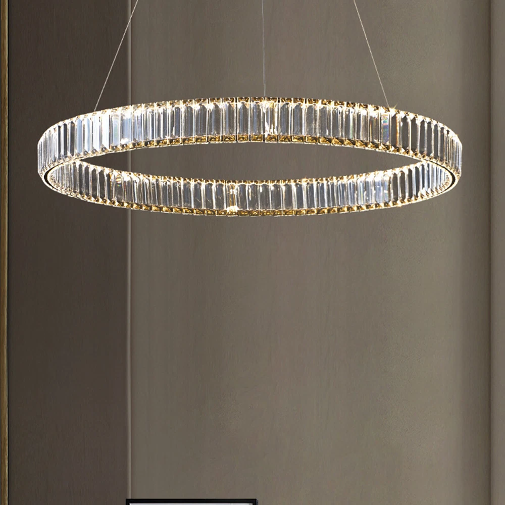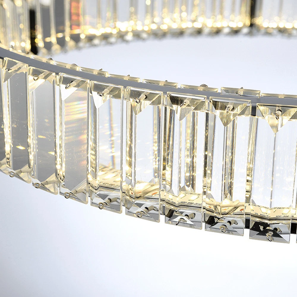 About this item 【HIGH QUALITY MATERIAL】: This creative pendant chandelier features a well-made metal structure combined with hand-picked multi-faceted cutting K9 crystals, durable, anti-corrosion no-fading。sparkling crystals refracting light in multiple angles, which make this chandelier fairy glittering and shinning to your house. 【LUXURY GOLD HANGING LIGHT DIMENSIONS】: Diameter31.5" x Height 3". The overall hanging height is adjustable from 19" to 39.3". This glittering hanging crystal light fixture will add elegance and ambiance lighting to your living room, dining room, kitchen island, bedroom, foyer, etc. 【3-COLORS CHANGEABLE LED CHANDELIER for DINING ROOM】: Built-in high-bright 48W 3-Color LED strips, AC 110V. The color temperature could be changed from 3000K to 4500K and then 60 LED Crystal Chandelier Ring Pendant Lamp Ceiling Light Hanging Light About this item 【HIGH QUALITY MATERIAL】: This creative pendant chandelier features a well-made metal structure combined with hand-picked multi-faceted cutting K9 crystals, durable, anti-corrosion no-fading。sparkling crystals refracting light in multiple angles, which make this chandelier fairy glittering and shinning to your house. 【LUXURY GOLD HANGING LIGHT DIMENSIONS】: Diameter31.5" x Height 3". The overall hanging height is adjustable from 19" to 39.3". This glittering hanging crystal light fixture will add elegance and ambiance lighting to your living room, dining room, kitchen island, bedroom, foyer, etc. 【3-COLORS CHANGEABLE LED CHANDELIER for DINING ROOM】: Built-in high-bright 48W 3-Color LED strips, AC 110V. The color temperature could be changed from 3000K to 4500K and then 6000K. You can change the light color by repeatedly pressing the ON/OFF switch to achieve different ambiances. Working voltage: 110-120V,50/60Hz Lumens:2200 lumens Light color:3000K-4500K-6000K Material: Stainless steel + Crystal Glass Light Body Color: Chrome finish Light Source: SMD2835 led chip, above CRI 80 index Wide applications: Modern and elegant design rustic chandelier, ideal for pendant lights in living room, kitchen island lighting, bedroom mini chandelier, study room hanging light fixtures, foyer small chandelier, etc. Package Content: 1 x Crystal Chandelier 1 x Instruction manual 1 x Hardware bag Installation Instruction: ①For your safety, Please turn off the power before installation ② Please check parts against the packing list to see if the accessories are available. ③We provide install instructions for you. please referred to install manual or have a professional electrician. If need any help, please contact us. Payment Delivery details Terms of sales About us Contact us Payment We accept ebay payment 。 Fees such as import duties, taxes are not included in the item price or shipping costs. These charges are the buyer's responsibility. Delivery details Shipping: 2-9 working days to: USA Terms of sales We maintain high standards of excellence and strive for hundred percent customer satisfaction. Feedback is very important to us. We hope that you contact us immediately before you give neutral or negative feedback, so that we can address your concerns. It is impossible to address issues if we do not know about them! About us Your satis faction is our ultimate goal. We work hard to earn your trust and future business. Our certified technicians have tested each item before shipping. The unit comes with 1 year limited warranty on all manufacturing defects. a) If you receive a defective item, you may return it or ask for a discount. Please contact us within 14 days after you receive the package. b) What you returned must be intact and in its original packaging as re? u. Customer is responsible for shipping costs of the returned item. c) We will cover the cost of shipping back t with the shipping rate indicated in the registration page. We will send you a new unit or refund the full payment you paid. Thank you. Contact us Business Hour Business Hour: Monday To Friday: 8:30 AM to 5:00 PM (Beijing China time) Due to time zones, our reply to your questions may not be immediately. But within above working time, we will reply your email within 24 hours. If it's non-workdays, please kindly be patient and wait till Monday. Please contact us with ebay message. Please feel free to contact us if you have any questions. Monday To Friday: 8:30 AM to 5:00 PM (Beijing China time) Due to time zones, our reply to your questions may not be immediately. But within above working time, we will reply your email within 24 hours. If it's non-workdays, please kindly be patient and wait till Monday. Please contact us with ebay message. Please feel free to contact us if you have any questions. * Feature * Creative Design,Durable Material,Beautiful Appearance Note: Do not send to Brazil Bundle Description: No Feature 1 *Stable characteristic*, *high reliability* shipping notice Can not ship to Puerto Rico,Alaska/Hawaii Item location: CA /NJ /Austell Transportation does not include: canarias shipping notice: Can not ship to Puerto Rico,Alaska/Hawaii Light Direction Downwards Features Height-Adjustable, Energy saving, Long lifespan Installation Area Indoor Shade Shape Round Color Silver Light Color Warm light-Warm White- White Room Bedroom, Dining Room, Garage, Hallway, Home Office/Study, Kitchen, Laundry/Utility Room, Living Room, Bar, Playroom, Porch, Utility/Laundry Room Material Crystal, Stainless Steel Lighting Technology LED Style Contemporary Sensor Type Light Brand Unbranded Power Consumption 25Watt Working voltage 110-120V 50/60Hz Lumens 1500 lumens Light Body Color Chrome finish Light Source SMD2835 led chip, above CRI 80 index Type Ceiling Light Item Diameter 31.5 inches Finish Chrome Theme Art Voltage 110-120V