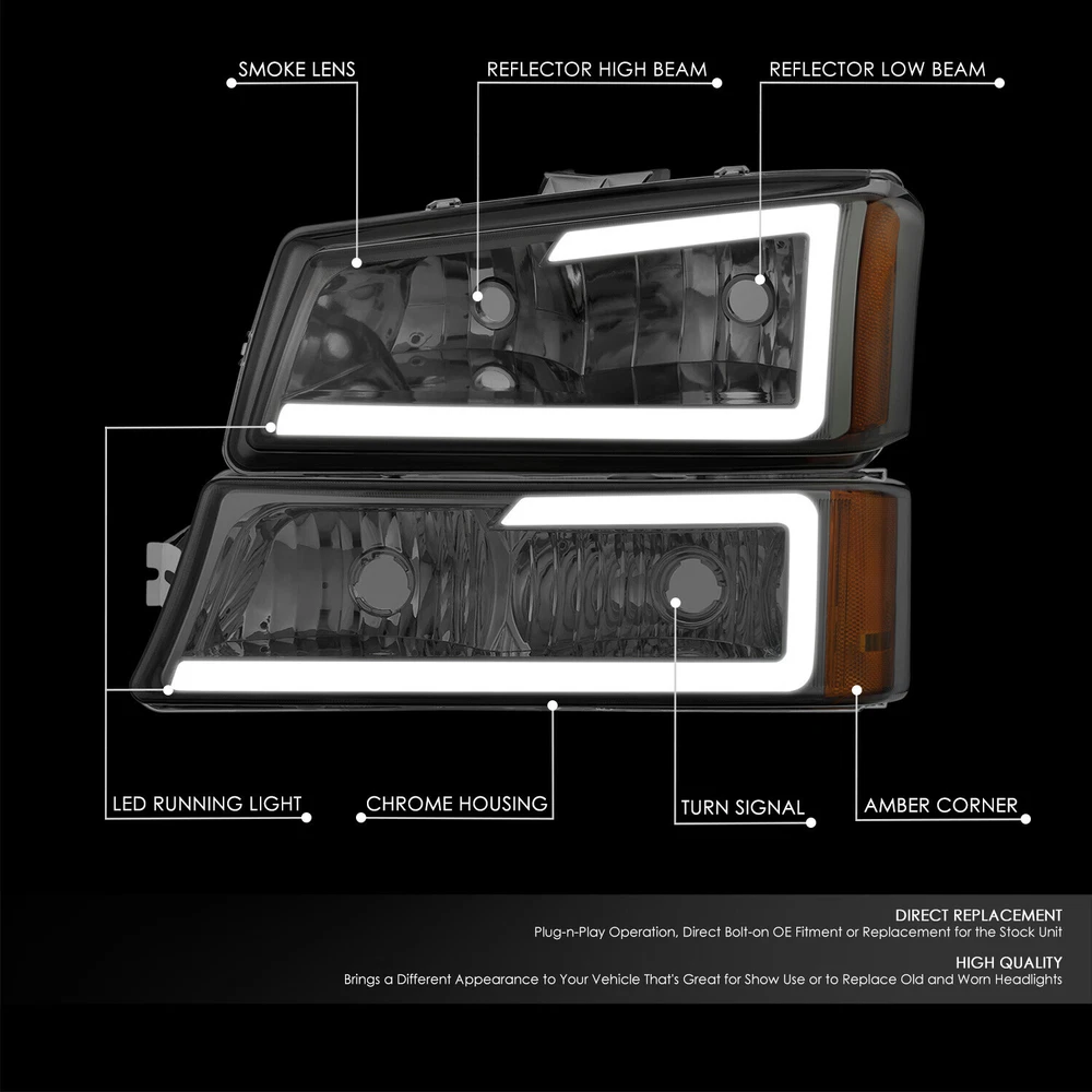 Welcome to Speed Daddy Store Home About Us Feedback Add To Favorites New Arrivals Ending Soon Contact Us [LED DRL] For 03-07 Chevy Silverado Avalanche Headlight Bumper Lamp Smoked/Amber Product Description A headlight (headlamp) is a lamp attached to the front of a vehicle to light the road ahead. Headlight performance has steadily improved throughout the automobile age, spurred by the great disparity between daytime and nighttime traffic fatalities. Headlights are one of the most important components of your vehicle; they allow you to see the road in front of you clearly during the night and in any bad weather that may arise. Our headlights upgrade the face of your vehicle with clear style and extreme range. Specifics and Features : Headlight: Easy to Install Replacement for the Stock Unit Comes with a Complete Set of Headlights (Driver and Passenger Side) Comes with a Complete Set of Bumper Lights (Driver and Passenger Side) White Hook Style LED 3D Light Bar Running Light Brings a Different Appearance to Vehicle thats Great for Show Use or to Replace Old and Worn Headlights Includes : 1 X Pair of Headlights(Left & Right) 1 X Pair of Parking / Turn Signal Lights Notes : Compatible with: 03-06 Chevrolet Avalanche 1500 2500 03-06 Chevrolet SIlverado 1500 2500 3500 03-06 Chevrolet SIlverado 1500 HD 2500 HD 2007 Chevrolet Silverado 1500 1500 HD 2500 HD 3500 Classic Fit Models without Factory Body Cladding ONLY Requires wiring LEDs to Factory Wiring Harness 100% Brand New Professional Installation is Highly Recommended Installation Instruction is NOT Included Shipping Payment Returns Terms & Conditions Feedback Contact Us DOMESTIC LOWER 48 US STATES: FREE SALES TAX: CA ONLY VERY IMPORTANT: Double check shipping address. We are not responsible for incorrect or undeliverable addresses. Please use Shipping & Payments tab on top of page for shipping details for your location. Shipping to PR, HI, AK and PO Box addresses will be charged the same as shipping to Canada. GU, VI, SAIPAN will be charged the same as international shipping rate. For Canada shipping please select the lowest price. We do not offer expedited shipping. US Territories such as GU, VI, SAIPAN will be charged the same as CANADA shipping rate. Transaction will be held until a full shipping amount received. Some of the packages cannot be delivered to a PO Box. Customer is responsible to ensure PO Box address given is deliverable by the shipping company. Package will be held until a valid physical address is provided. Customer assumes shipping charges incurred in shipping to undeliverable address. International buyers are responsible for all customs duties, taxes, and other applicable fees incurred by the country's customs/border regulations. Please contact customs for more information. We ship 98% of all orders the same or next business day after payment received/cleared. Please understand that once orders are shipped, we cannot control the transit times thereafter. Most orders will ship via USPS First Class/Priority Mail or FedEx/UPS or the best suitable carrier for the specific size of the product. We are not responsible for any changes to address after item has been shipped. Item will be shipped out within 24 hours after payment cleared, except for weekends and holidays. PayPal e-check takes 3-7 business days to be processed. We will not ship until an e-check has been cleared. 30 Days Free Returns, please notify us within 30 days after you've received your order. Please email us or call us to obtain a RMA (Return Merchandise Authorization) number from us, and have the RMA number written on the return package. Items to be returned must be in resalable condition. All returns are for refund ONLY. No exchange accepted. For emissions related items, please check with your local jurisdiction for emission specific requirements before purchasing. All items do not come with installation instruction unless otherwise specified. If item is questionable, please consult your local professional/mechanic before making purchase. Shipping DOMESTIC LOWER 48 US STATES: FREE SALES TAX: CA ONLY VERY IMPORTANT: Double check shipping address. We are not responsible for incorrect or undeliverable addresses. Please use Shipping & Payments tab on top of page for shipping details for your location. Shipping to PR, HI, AK and PO Box addresses will be charged the same as shipping to Canada. GU, VI, SAIPAN will be charged the same as international shipping rate. For Canada shipping please select the lowest price. We do not offer expedited shipping. US Territories such as GU, VI, SAIPAN will be charged the same as CANADA shipping rate. Transaction will be held until a full shipping amount received. Some of the packages cannot be delivered to a PO Box. Customer is responsible to ensure PO Box address given is deliverable by the shipping company. Package will be held until a valid physical address is provided. Customer assumes shipping charges incurred in shipping to undeliverable address. International buyers are responsible for all customs duties, taxes, and other applicable fees incurred by the country's customs/border regulations. Please contact customs for more information. We ship 98% of all orders the same or next business day after payment received/cleared. Please understand that once orders are shipped, we cannot control the transit times thereafter. Most orders will ship via USPS First Class/Priority Mail or FedEx/UPS or the best suitable carrier for the specific size of the product. We are not responsible for any changes to address after item has been shipped. Payment Item will be shipped out within 24 hours after payment cleared, except for weekends and holidays. PayPal e-check takes 3-7 business days to be processed. We will not ship until an e-check has been cleared. Returns 30 Days money back, please notify us within 30 days after you've received your purchased item. All return requests must be submitted through your eBay account. You have to obta
