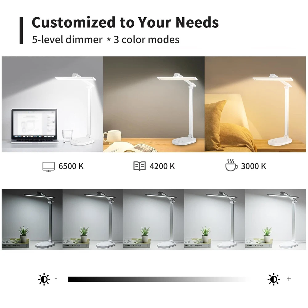 LED Desk Lamp, Dimmable Table Lamp Reading Lamp with USB Charging Port,5 Ligh...