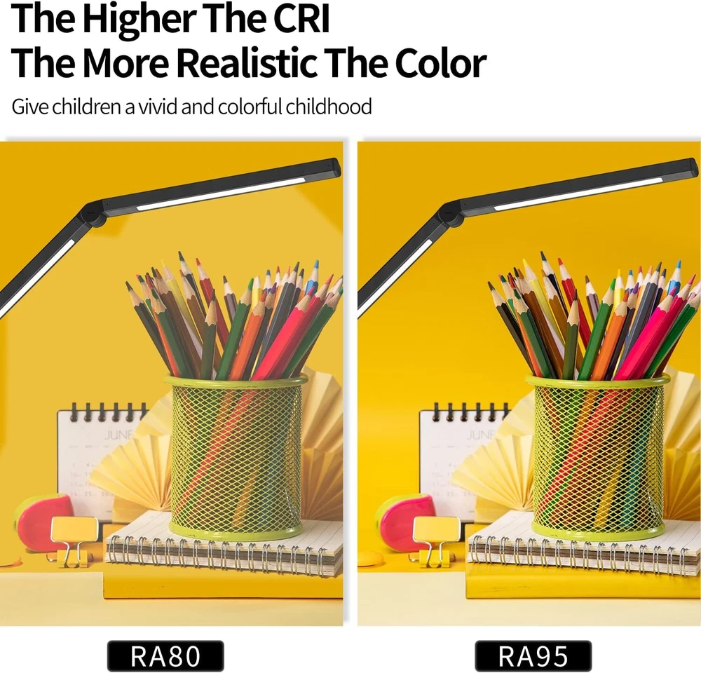 LED Desk Lamp with Clamp, Architect Dual Light and Black+Touch Product Details Finish Type: Painted Base Material: Strong Metal Clamp Product Dimensions: 46"D x 2"W x 2.7"H Item Weight: 2 Pounds Lamp Type: LED 【Dual Light Source Design, CRI=95】Micomlan swing arms led desk light with dual light source, which can evenly illuminate the entire desktop workbench. The desk lamp offers a nature and soft light colse to the sunlight, CRI=95. No flicker, no glare, less blue light hazard. You won't get tired with prolonged use. 【7 Rotating Parts】The office lamp body has 7 rotatable parts, which can be freely adjust the direction, angles and positions(you can check our videos for details), and can be clipped to various scenes such as desktops, bookshelves, sofa sideboards, shelves, and bedheads. 【Ultra-Wide Metal Clamp & All-Aluminum Lamp Body】The clamp light is equipped with an ultra-wide strong metal clamp with silicone pad, which supports the maximum thickness of the desktop edge up to 2.5". Please insert the metal clamp completely into the tabletop, tighten it, and keep the desk top and bottom flat; The lamp body is all made of high-quality aluminum, which has superior heat dissipation performance, prolongs the service life of clamp lamp, and has good texture. 【Eye-Friendly Technology and 5 Brightness Levels & Adjustable Color Temperature】LED desk lamp for home office offers you 4 different Color Temperature choices(warm white, nature white,cool withe, daylight)5 brightness levels for each color mode, which can perform best light of desk lamp, and prevent eye fatigue. It can be used for studying, reading, working to meet the needs for clear lighting. 【Timing & Memory Function】Micomlan table clamp have built-in automatic delay-off function in the led lamp. It can be set 30 minutes before sleeping, then it will turn off automatically. It is not necessary to worry about getting out of the warm bed to turn off the light. The office table lamp supports power off memory function, it will return your last setting when you turn it on next time.