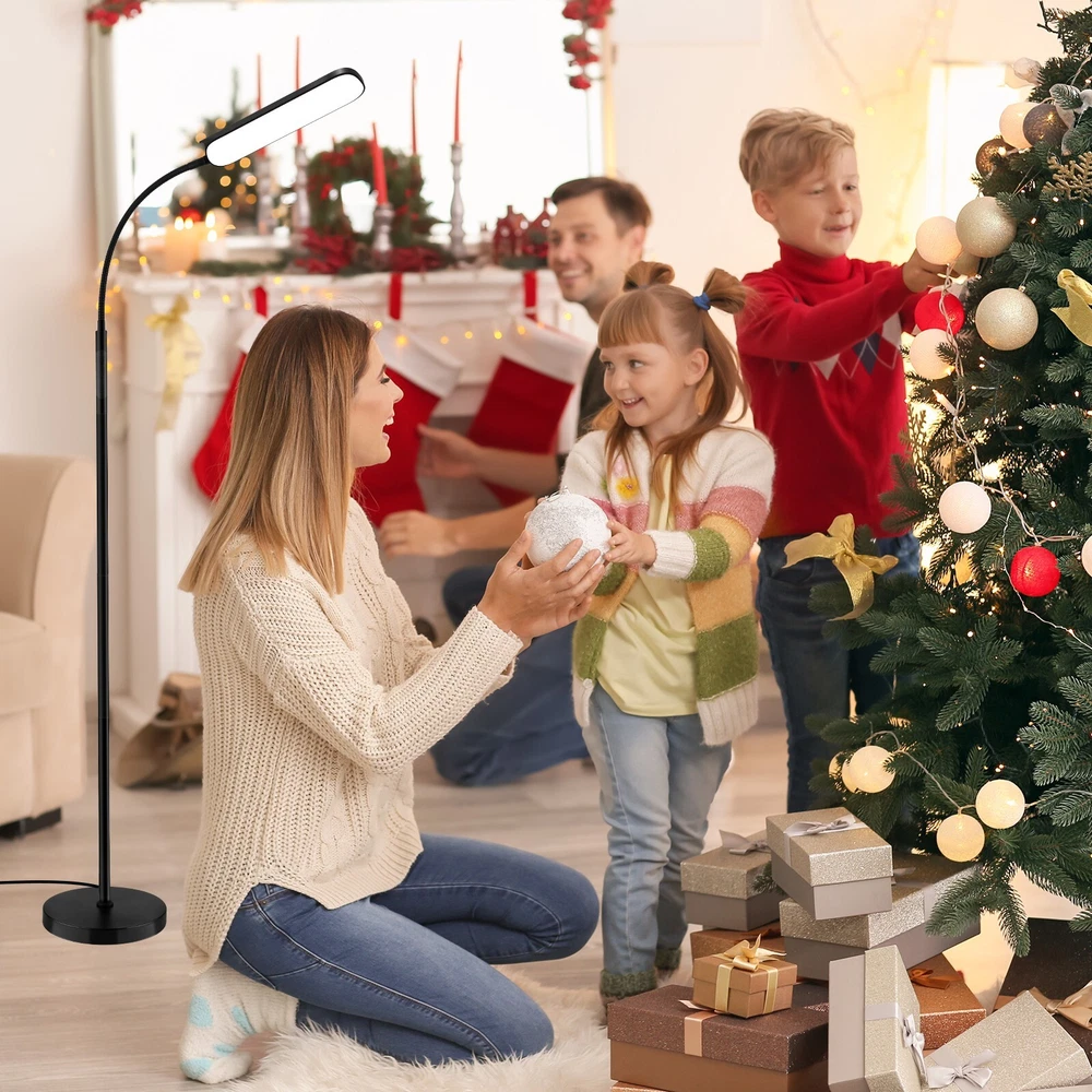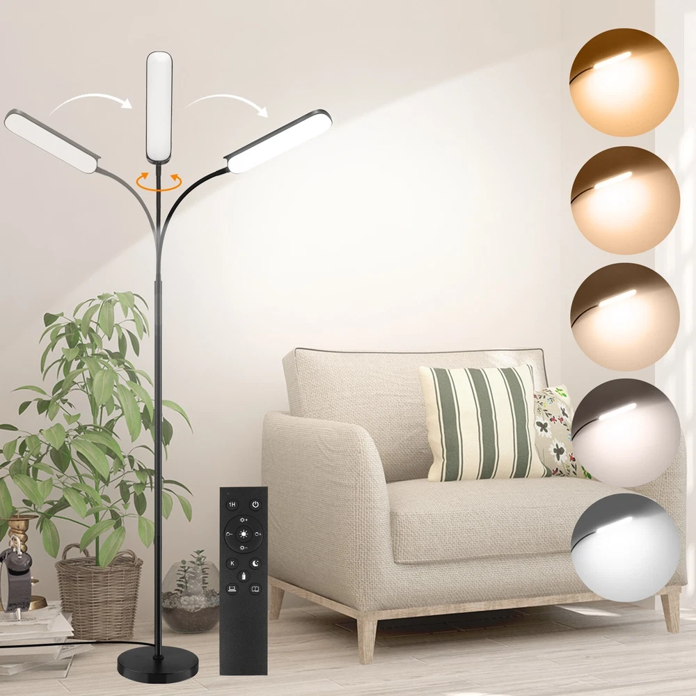 18W Upgrade Floor Lamp Different Color Temperature Options --- Meeting daily requirements ! Remote Control has a 50feet Range --- Easy to Use Product Features Flicker- Free Eye Protection Use Premium LED technology and equipped with a light guide plate, soft and natural light, no flicker. Easy to Install Installation is very easy and can be done in less than a minute, no other tools or parts required. Stable Base The stable base is designed to be safe and easy to use, even if the floor lamp is hit by a pet, there will be no problem. 360° Adjustable Lamp Head Unique lamp head shape and flexible gooseneck, perfectly satisfies your needs, and lights up every corner. 5 Mode Functions ---- Bright Up Your Life ! Enjoy Reading Time Best Present Choices Also be used as a Christmas present and birthday present for your family and friends!