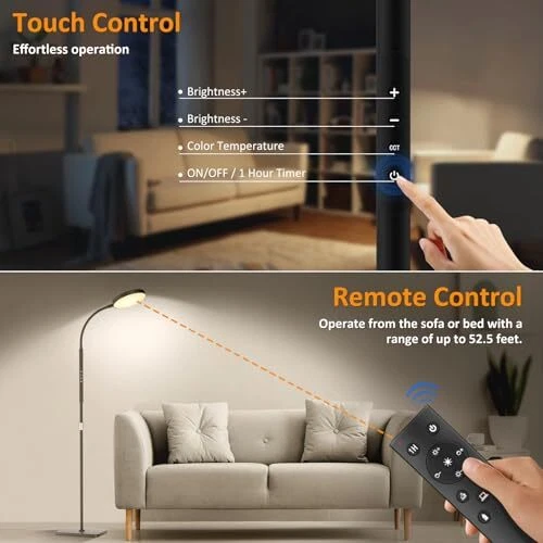 30 Days Return Policy Fast Delivery Trusted seller LED Floor Lamp, Height Adjustable Floor Lamps for Living Room, Super Bright Standing Lamp with Timer, Adjustable Colors & Brightness Floor lamp for Bedroom with Remote & Touch Control, Black Product Description 【Adjustable Height Design】Our standing lamp features an adjustable height, perfect for enhancing the reading experience in your living room or bedroom. Boasting 120 high-brightness LEDs, delivering up to 1600 lumens of soft, bright light. With a lifespan of up to 60,000 hours, no need to worry about bulb replacements. The sturdy metal base ensures stability on a variety of surfaces, and the high-quality lamp head is flicker-free and blue light-free to protect your and your family's eyes 【Stepless Dimming Mode】: Elevate your space with our reading light, featuring dimmable brightness (10%-100%) and adjustable color temperature (3000K-6500K). Customize the lighting of the bedroom floor lamp to your preference. Easily switch between cool whites, warm whites, and warm tones to create the perfect ambiance for your bedroom or any room in your home 【Remote Control & Touch Control】Illuminate your room with our lights for bedroom, featuring smart remote control (range 32.8/10m) and touch control. Easily manage your lights, pushing a button for the perfect brightness and color temperature for working, reading, relaxing, breastfeeding, or sleeping. Enjoy convenience at your fingertips without leaving the comfort of your space 【Timer Settings】Our LED floor lamp comes with 30-minute, 1-hour, and 2-hour timer functions, allowing you to customize the shut-off time as needed, all without having to leave the comfort and warmth of your bed or sofa 【Memory Function and Easy to Install】The memory function can remember the brightness and color used when power is cut off. The flexible gooseneck allows you to easily control the light to perfectly illuminate any item. The floor lamp for bedroom is easy to assemble, no additional tools or parts required! If you have any questions or suggestions about our floor lamps for living room, our customer service will assist you within 24 hours Shipping Returns Payment Shipping Shipping is FREE to all addresses other than APO/PO boxes in the lower 48 states. All our stock ships from US-based warehouses. Shipped via USPS or UPS (depending on location and package weight) Unless stated otherwise, all orders will ship within 24-72 hours of your payment being processed. Check our feedback to see the great reviews of FAST shipping we offer. Returns As our valued customer, we will do our best to make sure the product you receive arrives to you on time and as expected. If you are not satisfied with your purchase, please contact us within 30 days of receiving your order to process a return. Payment We currently accept payment via eBay managed payments only. Once payment is cleared, we will dispatch your shipment within 1-3 business days. Please refer to the "Shipping" tab for more information regarding shipping speed to your destination.