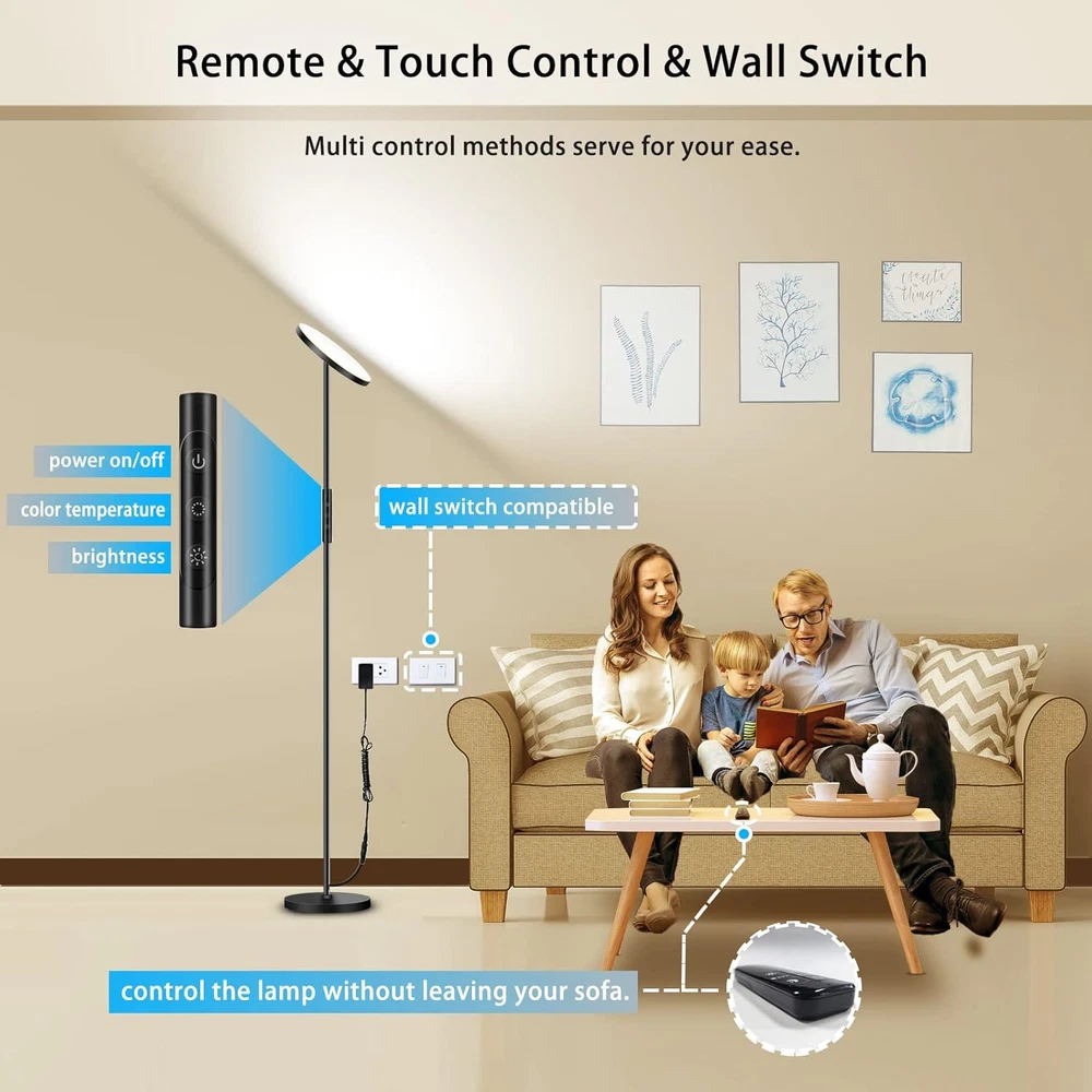 Store New Arrivals Add to Favorite View Feedback Contact LED Floor Lamps for Living Room, 2400LM Super Bright 300W Equivalent LED Floor Lamp with Remote Control, 69" Tall Standing Lamp with Stepless Dimmable, Modern Torchiere Corner Lamp for Bedroom Office Description Item model number 3a8c8cf1-82d9-4545-885e-137f580baa39 Light Source Type LED Style Modern Base Diameter 9.8 Inches Number of Items 1 Power Source Corded Electric Number of Light Sources 132 Material Type Powdered Metal Steel Is Electric Yes Lighting Method Adjustable Finish Types Powder Coated Lamp Type Floor Lamp Subject Character 2700K-4000K-5000K-6500K Controller Type Remote Control, Touch Control Item Shape Round Room Type Office, Bedroom, Living Room, Study Room, Dining Room Product Dimensions 9.8"D x 9.8"W x 69"H Model Number 3a8c8cf1-82d9-4545-885e-137f580baa39 Installation Method Freestanding Efficiency 100 lm/W Is Product Cordless No Number of Pieces 1 Finish Type Powder Coated Specific Uses For Product Working Mode, Night Mode, Nursing Mode, Reading Mode, 2700K-6500K Color Temperature Stepless Dimming, 1 Hour Timing, Memory Function, 50FT Remote Control, Touch Control, 5%-100% Brightness Stepless Dimming Brightness 2400 Lumen Country of Origin China Water Resistance Level Not Water Resistant Connectivity Protocol KNX-RF Item Weight 9 Pounds Connectivity Technology RF Special Features Working Mode, Night Mode, Nursing Mode, Reading Mode, 2700K-6500K Color Temperature Stepless Dimming, CRI>85, No-Flickering, Rotatable Lamp Head, Stable Lamp Base, Easy to Assemble, 1 Hour Timing, Memory Function, 50FT Remote Range, 5%-100% Brightness Stepless Dimming Mount Type Floor Mount Bulb Base E26 Shade Color Black Color Black 24W Wattage 24 watts Indoor Outdoor Usage Indoor Base Material Metal Is Waterproof False Voltage 110 Volts (AC) Control Method Remote, Touch Recommended Uses For Product Memory Function, Working Mode, Night Mode, Nursing Mode, Reading Mode, 2700K-6500K Color Temperature Stepless Dimming, 50FT Remote Range, 5%-100% Brightness Stepless Dimming, 1 Hour Timing Shade Material Acrylic Included Components Remote Control, Power Cable, 1 × Lamp, 4 × Lamp Poles, 1 × Lamp Base, 1 × Remote Control, 1 × Power Adapter with cable, 1 × User Manual Item Dimensions D x W x H 9.8"D x 9.8"W x 69"H Switch Type Touch 🌕 𝘼𝙙𝙟𝙪𝙨𝙩𝙖𝙗𝙡𝙚 𝘽𝙧𝙞𝙜𝙝𝙩𝙣𝙚𝙨𝙨 & 𝘾𝙤𝙡𝙤𝙧 𝙏𝙚𝙢𝙥𝙚𝙧𝙖𝙩𝙪𝙧𝙚 & 𝙍𝙤𝙩𝙖𝙩𝙖𝙗𝙡𝙚 𝙃𝙚𝙖𝙙: Yikuneng LED floor lamp adopts stepless dimming and color temperatures 2700K-6500K. When your kids doing homework, 100% brightness and 5000K daylight are appropriate for reading the books and note. And the dimmable floor lamp can light up any area with 350°rotatable head. 🌖 𝘾𝙤𝙢𝙛𝙤𝙧𝙩𝙖𝙗𝙡𝙚 𝙉𝙞𝙜𝙝𝙩 𝙇𝙞𝙜𝙝𝙩 𝙈𝙤𝙙𝙚 & 𝙈𝙚𝙢𝙤𝙧𝙮 𝙁𝙪𝙣𝙘𝙩𝙞𝙤𝙣: The LED floor lamp for bedroom night model design with soft warm white, you may feel relaxed and comfortable, when you see the warm light in the darkness, create a great sleep environment for your families. The floor lamp can remember your last settings even when you turn it off or after power cut. 🌗 𝘾𝙤𝙣𝙫𝙚𝙣𝙞𝙚𝙣𝙩 𝙍𝙚𝙢𝙤𝙩𝙚 𝘾𝙤𝙣𝙩𝙧𝙤𝙡 & 𝙏𝙤𝙪𝙘𝙝 𝘾𝙤𝙣𝙩𝙧𝙤𝙡: With advanced RF remote control, easy to control your floor lamps any where any direction (with a 50ft range), even you are in another room. The remote has magnets design, you can put it on the standing lamps which find it easily. You also can control it by touch. 🔴 𝙈𝙤𝙙𝙚𝙧𝙣 𝘿𝙚𝙨𝙞𝙜𝙣 & 𝙎𝙩𝙖𝙗𝙡𝙚 𝘽𝙖𝙨𝙚: Our modern floor lamp has a sleek and modern design that complement to your home decor, maximize your space with modern lifestyle. Yikuneng tall floor lamp(69inch) with weighted base firmly hold the standing light to prevent the toppling over when the kids or the pets pass it. 💡 𝙎𝙪𝙥𝙚𝙧 𝘽𝙧𝙞𝙜𝙝𝙩 & 𝙎𝙖𝙫𝙚 𝙀𝙣𝙚𝙧𝙜𝙮: Use 132pcs advanced LEDs, equal to 250W incandescent torchiere floor lamps. Our bright floor lamp 24W more bright then other 30W LED floor lamp, it means save more energy for you, directly reflected on your electricity bill. Works perfectly for living room, bedroom, studying room, office, etc. Yikuneng tall floor lamp provide 36 months after-sale service, we would like to assist you anytime Product Description 1 Color Temperatures 2 Brightness 1 Bedroom 2 Living Room 3 Office 4 Nursing Room 5 Dining Room 1 Working Mode 2 Reading Mode 3 Night Mode 4 Nursing Mode 1 Touch Control 2 Remote Control 1 Stable Lamp Base 2 1H Timer 3 Easy to Assemble ABOUT US We offer the best prices around on high quality products. Our E-store includes media such as books, movies, music and games while offering electronics, toys, sporting apparel, clothing, tools, general home, garden items and more. SHIPPING We are always working hard to ensure your package arrives as soon as possible. Please understand that some factors like weather, high postal traffic, and the performance of shipping companies are outside of our control. We offer free shipping to the lower 48 states and ship within 2 business days of payment, usually sooner. We do not accept P.O. Boxes. Please provide a physical address. For shipping outside of the continental USA, we only use eBay's Global Shipping Program.The item is shipped to KY and then sent to the rest of the world. International customers are responsible for all duties and taxes. Continue to check out in order to calculate costs for shipping the item to your country. Messages regarding eBay's Global Shipping Program MUST be directed at eBay EXCLUSIVELY. RETURNS We offer a 30-Day Return Policy on items which you are not completely satisfied with. You have the option for a full-refund or an exch