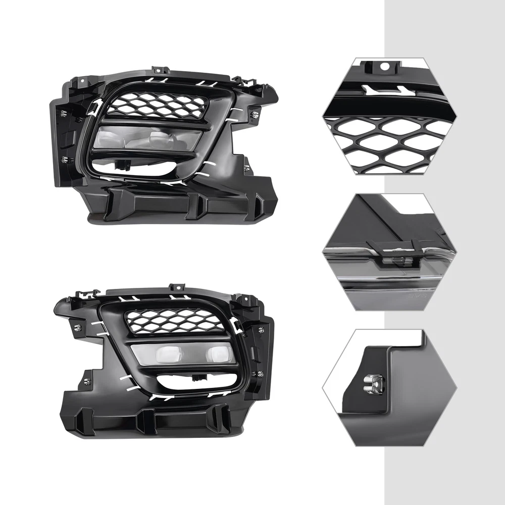 Specifications Applicable Models: For 2017-2022 Jeep Grand Cherokee SRT Condition: New Light Cover Material: PC Lamp Material: PC, PP, CPB, PBT Process: UV Lens Color: Clear Housing Color: Black Placement on Vehicle: Front, Right and Left Way of Use: Direct Replacement Light Source Type: LED Voltage: 12V Wattage: 12W Color Temperature: 6000K Each Package Size: 45*40*15cm/17.72*15.75*5.91in Each Gross Weight: 1.5kg/3.31lbs LED Fog Light Lamps W/ Covers Bezel For Jeep Grand Cherokee 2017-2022 LH&RH Specifications Applicable Models: For 2017-2022 Jeep Grand Cherokee SRT Condition: New Light Cover Material: PC Lamp Material: PC, PP, CPB, PBT Process: UV Lens Color: Clear Housing Color: Black Placement on Vehicle: Front, Right and Left Way of Use: Direct Replacement Light Source Type: LED Voltage: 12V Wattage: 12W Color Temperature: 6000K Each Package Size: 45*40*15cm/17.72*15.75*5.91in Each Gross Weight: 1.5kg/3.31lbs Key Features Protective Packaging: The bubble bag provides comprehensive protection for the product to ensure that it is fully delivered to you to the greatest extent possible. Build to Last : High-quality PC, PP, CPB, and PBT with an UV process m ake this product durable and solid, so it can remain practical and beautiful without frequent replacement. Good Compatibility: This product is a customized product, specially customized for the 2017-2022 Jeep Grand Cherokee SRT , so it can be compatible with the adapted models. Highlights Brand New, With High Quality Direct Replacement Trouble-free Installation Stylish Appearance Strong and Durable Exquisite Workmanship Stable Performance Long Service Life Notes Please double-check compatibility before purchasing to ensure proper fit. We strongly recommend professional installation. Please allow for slight color differences caused by shooting light and errors caused by manual measurement, and make sure you don't mind before ordering. If you have any questions, please contact us, and we will reply and solve your problem as soon as possible . Fits (As a Reference) For 2017-2022 Jeep Grand Cherokee SRT Package Included 1 Pair x LED Fog Lights (Right and Left) 1 Pair x Fog Light Covers (Right and Left) Payment Delivery details Terms of sales About us Contact us Payment We accept ebay payment 。 Fees such as import duties, taxes are not included in the item price or shipping costs. These charges are the buyer's responsibility. Delivery details Shipping: 2-9 working days to: USA Terms of sales We maintain high standards of excellence and strive for hundred percent customer satisfaction. Feedback is very important to us. We hope that you contact us immediately before you give neutral or negative feedback, so that we can address your concerns. It is impossible to address issues if we do not know about them! About us Your satis faction is our ultimate goal. We work hard to earn your trust and future business. Our certified technicians have tested each item before shipping. The unit comes with 1 year limited warranty on all manufacturing defects. a) If you receive a defective item, you may return it or ask for a discount. Please contact us within 14 days after you receive the package. b) What you returned must be intact and in its original packaging as re? u. Customer is responsible for shipping costs of the returned item. c) We will cover the cost of shipping back t with the shipping rate indicated in the registration page. We will send you a new unit or refund the full payment you paid. Thank you. Contact us Business Hour Business Hour: Monday To Friday: 8:30 AM to 5:00 PM (Beijing China time) Due to time zones, our reply to your questions may not be immediately. But within above working time, we will reply your email within 24 hours. If it's non-workdays, please kindly be patient and wait till Monday. Please contact us with ebay message. Please feel free to contact us if you have any questions. Monday To Friday: 8:30 AM to 5:00 PM (Beijing China time) Due to time zones, our reply to your questions may not be immediately. But within above working time, we will reply your email within 24 hours. If it's non-workdays, please kindly be patient and wait till Monday. Please contact us with ebay message. Please feel free to contact us if you have any questions.