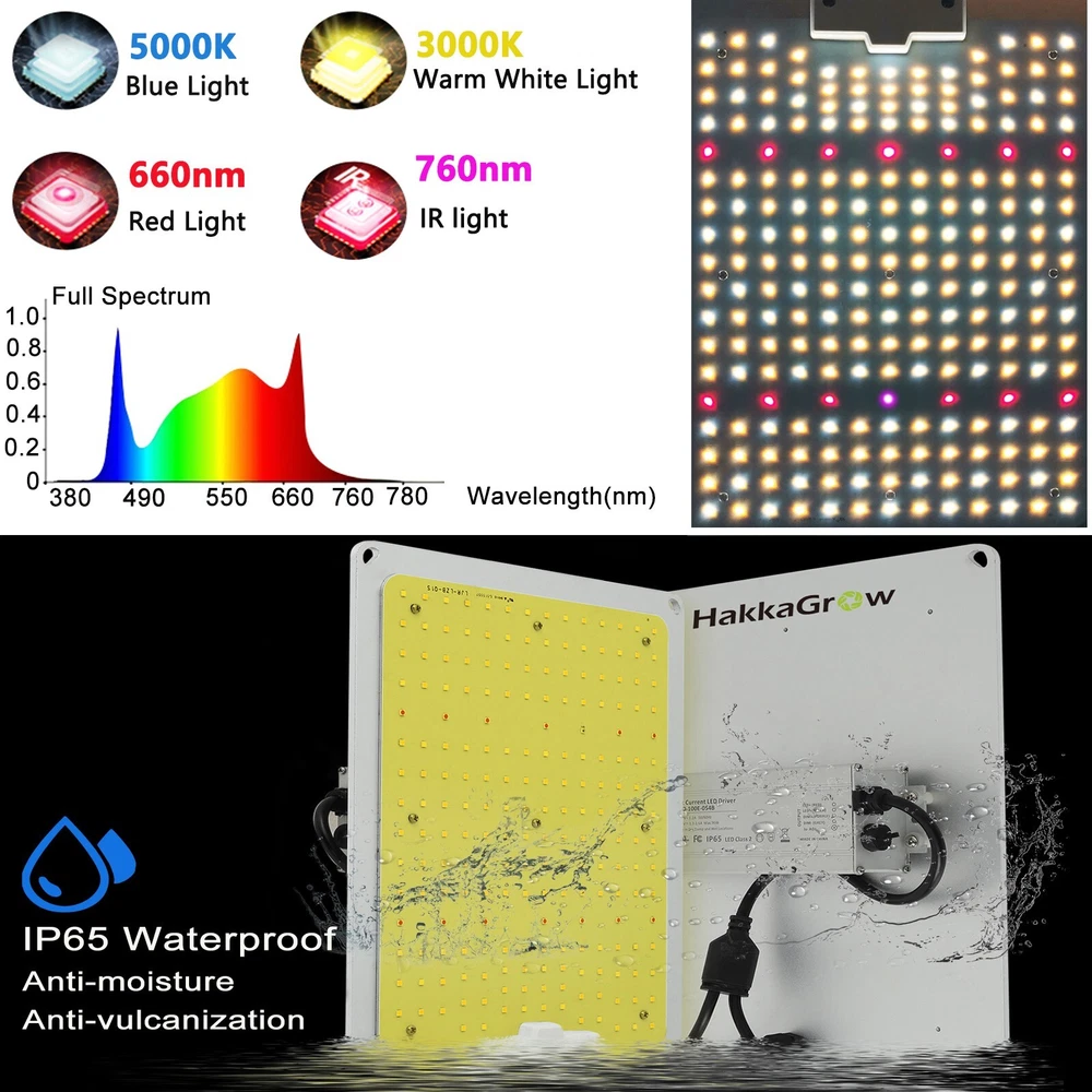 This LED grow light is the perfect addition to any greenhouse or home plant setup. With a wattage of 110W and a full spectrum output, it is ideal for rooting cuttings and seedlings, maintaining mother plants, and achieving vegetative growth. The light has a beam angle of 120° and comes with a timer, power cord, ballast, reflector/hood, and controller unit. The HakkaGrow brand LED grow light is made of aluminum and has a silent-running feature. It has a lifespan of 35000 hours and comes with a 1-year manufacturer warranty. The light can be controlled with a switch and has dimming settings of 25%, 100%, 75%, and 50%. It is compatible with magnetic, electromagnetic, and electronic ballasts. The LED grow light has a maximum temperature of 104°F and a minimum temperature of 32°F. It is suitable for use in the greenhouse and has a universal position feature.