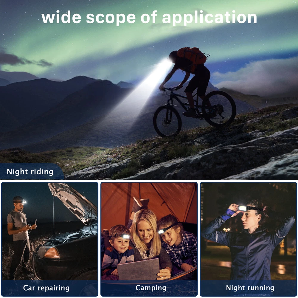 Product Description Features: Battery Indicator: 4 lights on at 100%→3 lights on at 75%→2 lights on at 50%→1 lights on at 25% Lighting Modes: White light LED on high mode→White light LED on low mode→Red light on→Red light on low ode→Red light flashing→Off Applications: Ideal equipment for outdoor activities such as garage work, car repairs, fishing, camping, hunting, agriculture, travel, night riding, walking, emergency situations, etc. Specifications: LED: white+red Mode: Strong white light/Spot white light/Spot red light/Red light low/Red light strobe Battery(built-in): 1200mAh, 3.7V. Use time: white cob strong light 2 hours, white cob weak light 4 hours. Waterproof rating: IPX4. Shell material: ABS+silicone. Color: black. Charging port: Type-c. Charging voltage and current: 5V/0.5A. Full time: 100 minutes. Charge display: 100%-75%-50%-25%. Package includes: 1x Headlight 1x Charging Cable Shipping Returns Contact Us Payment 1. Items sent from US warehouse. 2. Receiving time = Processing time + Shipping time. 3. Pro cessing Time: Around 1-2 business Days. 4. Shipping Time: 3-5 business day. it may have a little delay during some holiday (such as Christmas), any problem, please feel free to contact. 1. 30 days warranty from the purchased date. Please contact us via email before returning the defective item. 2. Our warranty does not extended to any product that are physically damaged or that are not under normal operating conditions as result of misuse or improper installation on the buyer/user's part. 3. Return items should include the original packaging and all accessories. buyers MUST contact us for the returning address. 4. In all cases, buyers pay shipping fees at their own cost to return products for exchange or refund. We will be responsible for the postage of replacements. Refund will be made upon receipt of the returned item. If you have any question, please e-mail us immediately, we will reply you as quickly as possible. We care about our valued customers, and will always try to help you. We accept all verified payment from eBay. Shipping 1. Items sent from US warehouse. 2. Receiving time = Processing time + Shipping time. 3. Pro cessing Time: Around 1-2 business Days. 4. Shipping Time: 3-5 business day. it may have a little delay during some holiday (such as Christmas), any problem, please feel free to contact. Returns 1. 30 days warranty from the purchased date. Please contact us via email before returning the defective item. 2. Our warranty does not extended to any product that are physically damaged or that are not under normal operating conditions as result of misuse or improper installation on the buyer/user's part. 3. Return items should include the original packaging and all accessories. buyers MUST contact us for the returning address. 4. In all cases, buyers pay shipping fees at their own cost to return products for exchange or refund. We will be responsible for the postage of replacements. Refund will be made upon receipt of the returned item. Contact Us If you have any question, please e-mail us immediately, we will reply you as quickly as possible. We care about our valued customers, and will always try to help you. Payment We accept all verified payment from eBay. You may also like 2Pcs Dryer Roller Wheel Drum Support Kit Replacement Part For Maytag Whirlpool 18.91 USD 3.99 USD 8PCS Hair Clipper Cutting Guide Combs With Metal Clip Replacement Tools For WAHL 13.38 USD 3.99 USD Leather Cushion Face Cover Eye Foam Mask Pad Anti-Sweat For Oculus Quest 2 VR 15.94 USD 18 Grids Watch Tiny Parts Storage Box Plastic Repair Acc Container + Dust Cover 11.75 USD Metal Bead Eyeglass Chain Glasses Strap Holder Lanyard Sunglasses Non-slip 8.93 USD Soft Rubber Dust Blower Air Pump Cleaner Watch & Camera PCB Repair Cleaning Tool 4.61 USD 3.99 USD powered by