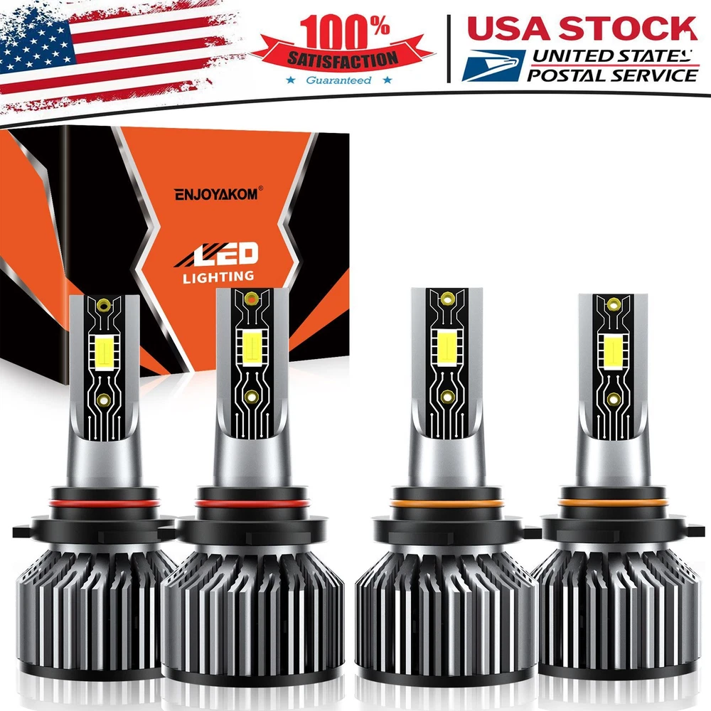 Application 2: led headlights for car &led bulb light bulbs Application 1: For Headlight High Low Beam/led bulbs car headlights Type: Headlight Kit Fit 2: Easy Installation, Heat Resistant, Higher brightness/Super Bright White Lumens: 26000lm Fitment Type: Direct Replacement More LED Kit We Have 2: H4/9003/HB2 9004/HB1 9007/HB5 9008/H13 D1/D1S D2/D2S D3S D4S Ballast Included: Yes Material: Aviation 6063 aluminum profile Manufacturer Part Number: 9005+9006 Wattage: 150W Fit 1: Car, Motorcycle, Motorbike, van, truck, pickup, SUV, vehicles MPN: ENJOYAKOM-Headlamp Bulb Color Temperature: 6500K Number of Bulbs: 4 Size: the same as the car original light Placement on Vehicle: Front, Left, Right Performance Part: Yes Light Color: Cold White Chips Type: CSP LED Chips, Super Bright Other Part Number: HB3 high beam + HB4 low beam To Fit: Headlight Bulb Life Hours: Up to 50000 Hours EAN: Does not apply Superseded Part Number: Replacement Halogen Xenon Led Light Bulbs Brand: ENJOYAKOM Suitable For: High Beam, Headlight, Low Beam Manufacturer Warranty: 5 Year Model: LED Headlight Conversion Kit More LED Kit We Have 1: 9005 9006 HB3 HB4 H11/H8/H9/H16 9012/HIR2 H1 H7 UPC: 868715814851 OE/OEM Part Number: 6500K LED Headlights Universal Fitment: Yes gtin13: Does not apply Features: CAN bus Compatible, road Legal, Rust-Resistant Voltage: 9V-36V Country/Region of Manufacture: United States Other Available Type: Foglight Kit Bulb Fitment Code: 9005/HB3 + 9006/HB4 Sealed Housing: IP68, Shockproof, Dustproof & Waterproof Interchange Part Number: 9005 High beam + 9006 Low beam More LED Kit We Have 3: 9005/9145/H10/9140 5202/2504 880/892/893/899 881/898/889/894 H3 Lighting Technology: LED Vintage Part: Yes Feature 2: light bulbs & leds/Light Bulbs Combo Kit Lighting Type: Specialty Head Light Bulb