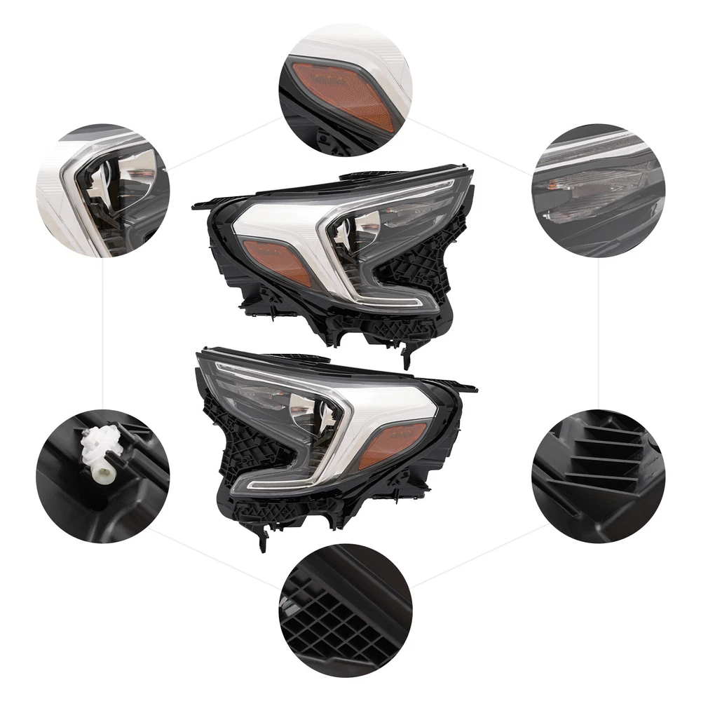 Specifications Left Headlamp OE/OEM Part Number: 84610587 Superseded Part Number: 84664075, 84312728, 84243328, 84355672, 84751231, 84634934 Other Part Number: GM2502476 Right Headlamp OE/OEM Part Number: 84610588 Superseded Part Number: 84664076, 84312729, 84243329, 84355673, 84751232, 84634935 Other Part Number: GM2503476 Applicable Models: 2018-2021 GMC Terrain Condition: New Material: PC+PP Process: Injection Molding Type: Headlight Assembly Lens Color: Clear Housing Color: Black Light Source Type: LED High Beam Light: Included Low Beam Light: Included Turn Signal Light: Included Side Marker Lamp Light: Included LED Daytime Running Light: Yes Installation Position: Left, Right, Front Way of Use: Direct Replacement Assembly Method: Closed Voltage: 12V Each Gross Weight: 7.8kg/17.2 lb ❤❤❤Welcome to royalfeatured ❤❤❤ For 2018-2021 GMC Terrain Full LED Headlight Headlamp Assy Left+Right Side Key Features Build to Last: High-quality PC and PP make this product solid and durable, so it can be used without frequent replacement. Good Compatibility: This product is a customized product, specially customized for the 2018-2021 GMC Terrain, so it can be compatible with the adapted models. Security Guard : The energy-saving, environmentally friendly , and bright LED light source, low/high beam, turn signal bulb, side marker bulb, and daytime running light can provide a security guarantee for you and your family. Protective Package: To prevent the product from being damaged and bumped during transportation, we packed it with the foam to protect your products to the maximum extent possible. Highlights Brand New, With High Quality Elaborate Design Direct Replacement Long Service Life Waterproof Good Performance High Working Efficiency Strict Manufacturing Process Quality Assurance Professional Customization Notes We strongly recommend professional installation. Please carefully check compatibility before purchasing to ensure that the product is suitable. Please allow for slight color differences caused by shooting light and errors caused by manual measurement, and make sure you don't mind before ordering. If you have any questions, please contact us, and we will reply and solve your problem as soon as possible. Fits (As a Reference) For 2018-2021 GMC Terrain [ Full LED Type ] OEM Part Number: 84610588 Package Included 2* Headlights(Left+Right) Payment Delivery details Terms of sales About us Contact us Payment We accept ebay payment 。 Fees such as import duties, taxes are not included in the item price or shipping costs. These charges are the buyer's responsibility. Delivery details Shipping: 2-9 working days to: USA Terms of sales We maintain high standards of excellence and strive for hundred percent customer satisfaction. Feedback is very important to us. We hope that you contact us immediately before you give neutral or negative feedback, so that we can address your concerns. It is impossible to address issues if we do not know about them! About us Your satis faction is our ultimate goal. We work hard to earn your trust and future business. Our certified technicians have tested each item before shipping. The unit comes with 1 year limited warranty on all manufacturing defects. a) If you receive a defective item, you may return it or ask for a discount. Please contact us within 14 days after you receive the package. b) What you returned must be intact and in its original packaging as re? u. Customer is responsible for shipping costs of the returned item. c) We will cover the cost of shipping back t with the shipping rate indicated in the registration page. We will send you a new unit or refund the full payment you paid. Thank you. Contact us Business Hour Business Hour: Monday To Friday: 8:30 AM to 5:00 PM (Beijing China time) Due to time zones, our reply to your questions may not be immediately. But within above working time, we will reply your email within 24 hours. If it's non-workdays, please kindly be patient and wait till Monday. Please contact us with ebay message. Please feel free to contact us if you have any questions. Monday To Friday: 8:30 AM to 5:00 PM (Beijing China time) Due to time zones, our reply to your questions may not be immediately. But within above working time, we will reply your email within 24 hours. If it's non-workdays, please kindly be patient and wait till Monday. Please contact us with ebay message. Please feel free to contact us if you have any questions.