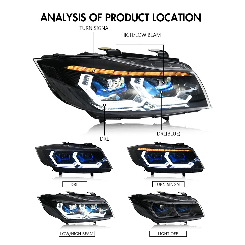 LED Headlights For BMW E90 320i 323i 325 330 335 2005-2011 Sequential Assembly 【WARN!!!】 This headlight is available in 2 versions. 1. 2005-2012 halogen headlights. 2. 2005-2012 Xenon headlights. Please confirm with the seller before placing an order to verify whether it is applicable and whether it is in stock. 【WARN!!!】 If your original headlight has AFS function, you need to go to the repair shop for coding. Product details 1. One pair: 1 pair headlights (Left side & Right side) 2. Bulbs: All bulbs are built-in, no extra bulbs needed 3 . Easy i nstallation: plug and play, same as original one to install Fitment F its For BMW E90 320i 323i 325 330 335 2005-2012 ( Professional Installation is Highly Recommended. ) Note 1. Please confirm whether this car-lamps can fit your car before you purchase, if you are not sure, please contact us. 2. Using your factory supplied connector/harness will avoid cutting or modifying any wires. 3. It is better to note what color do you want when you order. Specification ·100% Brand New ·Professional Installation is Highly Recommended ·Welcome to send us message for more information