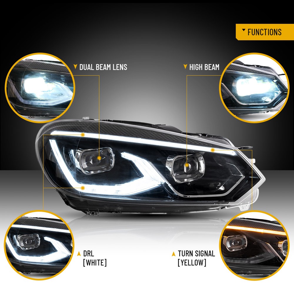 LED Headlights w/Bule Dynamic DRL For VW 2010-2014 Golf 6 MK6 Projector Assembly Description: Compatible for: 2010-2014 Volkswagen Golf Mk6 Standard/TDI(Not Fit GTI and R Version) Vehicle Exceptions: This items only Fits with Factory Halogen Headlights Models (Including TDI/TSI/GTD/LPG) and will NOT Work On Factory HID/Xenon Models. Note: GTI Halogen models need an adapter cable or change the pins to work properly. Please contact us. Condition: Brand New Sold As: A Pair (Driver side & Passenger side) Head Light Lens: Clear Lens, Black Housing DRL: Built-in LED (White)Startup Animation Turn Signal: Built-in LED (Amber)Sequential Turn Signal Low/High Beam: Full LED built-in light source Installation: Plug & Play Bulbs Included: Built in LED Warranty: 1 year Tips: Professional installation is highly recommended Video(The video color is for reference only, and the physical object shall prevail) SPECIFIC SHIPPING ABOUT PAYMENT RETURN SPECIFIC SHIPPING ABOUT PAYMENT RETURN Store Categories Store Categories Headlights Taillights Headlights&Taillights LED Bulb Other LED Headlights w/Bule Dynamic DRL For VW 2010-2014 Golf 6 MK6 Projector Assembly Description: Compatible for: 2010-2014 Volkswagen Golf Mk6 Standard/TDI(Not Fit GTI and R Version) Vehicle Exceptions: This items only Fits with Factory Halogen Headlights Models (Including TDI/TSI/GTD/LPG) and will NOT Work On Factory HID/Xenon Models. Note: GTI Halogen models need an adapter cable or change the pins to work properly. Please contact us. Condition: Brand New Sold As: A Pair (Driver side & Passenger side) Head Light Lens: Clear Lens, Black Housing DRL: Built-in LED (White)Startup Animation Turn Signal: Built-in LED (Amber)Sequential Turn Signal Low/High Beam: Full LED built-in light source Installation: Plug & Play Bulbs Included: Built in LED Warranty: 1 year Tips: Professional installation is highly recommended Video(The video color is for reference only, and the physical object shall prevail) SPECIFIC SHIPPING ABOUT PAYMENT RETURN SPECIFIC 1.This Price is for a left & right 1 pair 2.Bulk Discount is negotiable! 3.If you are interested in selling some of our products exclusive in the entire market,please contact us via eBay message! SHIPPING Our default shipping rates are for the 48 US states only via UPS Ground. No Alaska, Hawaii, Puerto Rico, APO, FPO or PO Box please. We usually ship within 1-2 business days of receiving cleared payment. Unless otherwise noted, Buyer pays shipping. Pick up at our facilities is available. Please contact us prior to your purchase to arrange pick up. For items marked with FREE shipping no shipping fees apply to 48 US states. Freight Items We will not ship freight items and some larger or fragile parts outside of the 48 US states. For large items that must be shipped via Freight Truck (i.e. engines, transmissions), the delivery site must be a commercially zoned address capable of unloading a freight truck. We can also arrange for you to pick up your freight item at your local freight terminal. For an accurate residential freight quote, please contact us before your purchase. If for some reason our shipping cost is greatly over this estimate, we reserve the right to ask for additional funds or an alternate ship to address. Shipping Deadlines We will process every order within 24 orders of checkout. Please allow 1-5 days for delivery. Most areas in the US are within 5 days. No Expedited shipping is available. ABOUT If you have a question about a part please contact us before purchasing. Our main contact method is by ebay messaging. We try to answer all messages within 24 hours, Monday - Friday 8am-5pm Eastern Standard Time . If we are unable to answer your questions before the listing ends the item will be re-listed again soon for you to purchase. PAYMENT RETURN 1. We offer 30 days return policy. 2. Please contact us within 30 days from the date you receive your package if you have any questions with the products . 3. Refund will be sent after we got your returned package. 4. All returned items should be in the original packaging with tracking number. On Jun 27, 2025 at 18:05:18 PDT, seller added the following information: