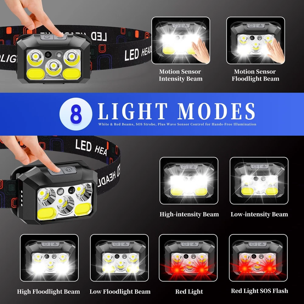 LED Lampara De Cabeza Recargable Luz De La Cabeza Linterna Para Pescar Camping Features: Iluminación potente: Equipado con 5 LED de alto rendimiento, el faro proporciona unos impresionantes 1200 lúmenes para una visibilidad clara durante la exploración nocturna, emergencias y actividades al aire libre. Perfecto para usuarios que buscan faros delanteros con luz fuerte y brillante en cualquier entorno. Carga USB-C y batería de larga duración: Para mayor comodidad, nuestro faro cuenta con una batería recargable incorporada con compatibilidad USB-C, que brinda una iluminación confiable durante 4 a 8 horas con una sola carga. Sigue funcionando desde el anochecer hasta el amanecer con facilidad. Control de gestos y apagado rápido: Disfruta de un control manos libres sin esfuerzo con nuestro sensor de movimiento inteligente, que permite una fácil operación con un movimiento de tu mano. La función de pulsación larga rápida te permite apagar la luz instantáneamente sin tener que pasar por todos los modos. Modo de luz roja para visión nocturna: Activa el modo de luz roja para preservar la visión nocturna, lo que lo hace ideal para acampar y otras actividades al aire libre. Muévete discretamente sin molestar a la vida silvestre, mejorando tu experiencia nocturna. Cómodo y ajustable: diseñado para todos, el faro incluye una inclinación ajustable de 45° y una diadema ergonómica y ajustable para un ajuste seguro. Con un peso de solo 73 g, es lo suficientemente ligero para un uso prolongado. Además, la diadema desmontable es fácil de limpiar. Funcionalidad resistente a la intemperie y multimodo: con una clasificación de impermeabilidad IPX4, este faro está diseñado para soportar la lluvia y otras condiciones climáticas. Con 8 modos versátiles accesibles a través de dos simples botones, se adapta a cualquier situación, ya sea que esté montando un campamento o haciendo senderismo en clima húmedo. Regalo perfecto para entusiastas del aire libre: los faros son un regalo ideal para aventureros, ya sea para cumpleaños, vacaciones u ocasiones especiales. Más que una luz, es un compañero confiable para todas sus exploraciones y aventuras. SHIPPING We are always working hard to ensure your package arrives as soon as possible. Please understand that some factors like weather, high postal traffic, and the performance of shipping companies are outside of our control. We offer free shipping to the lower 48 states and ship within 3 business days of payment, usually sooner. We do not accept P.O. Boxes. Please provide a physical address.