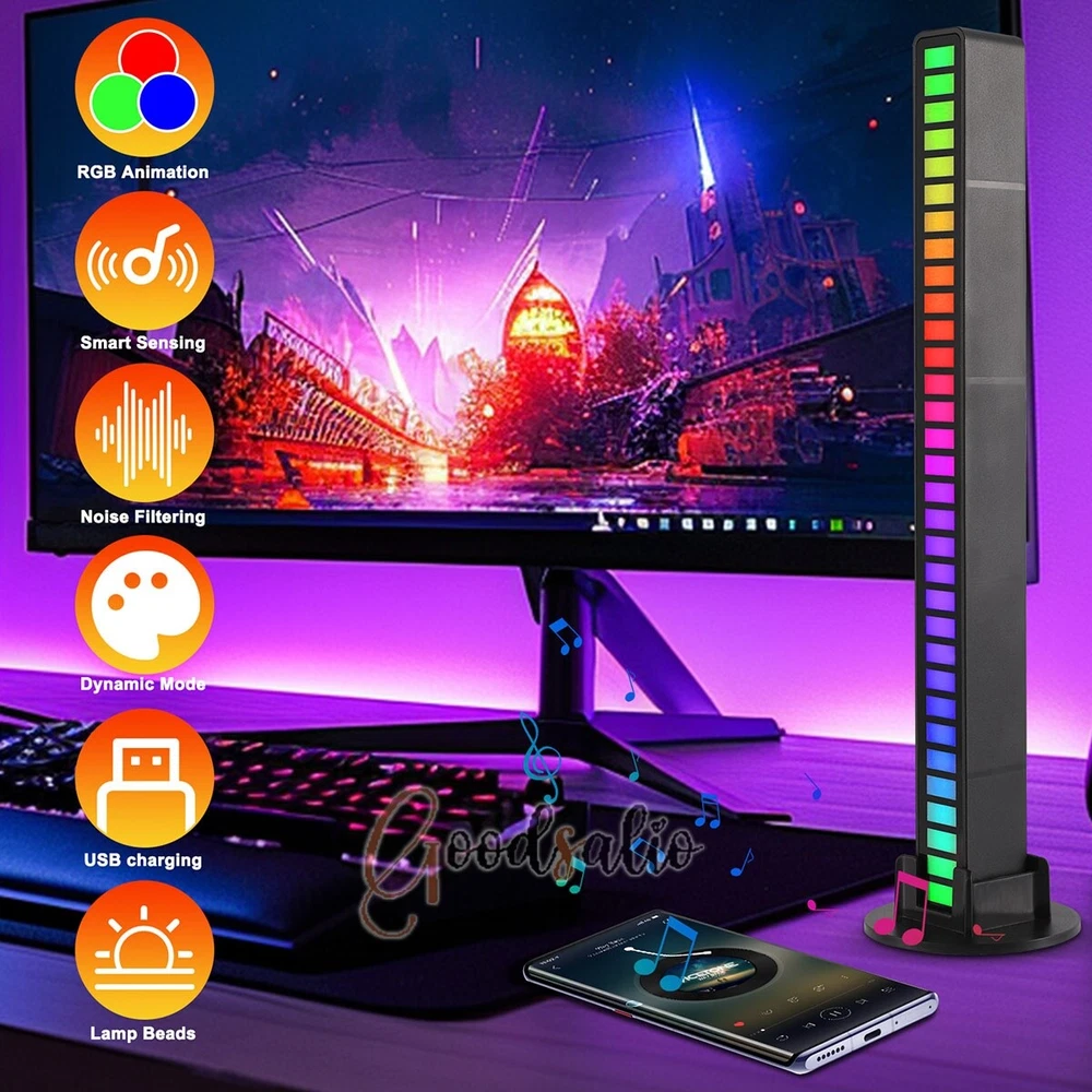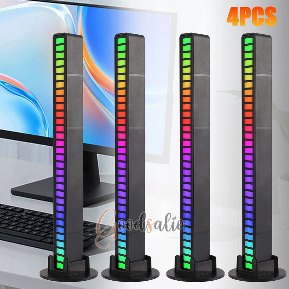 LED Light Bar Sound Control Ambient RGB Rechargeable 32Bit Multi-Color Light LOT ★SPECIAL TIPS: √ Ship within 24 hours Via USPS from NJ ,USA √ 100% New & Excellent Quality √ Professional Customer Service √ Strictly QC, Each set was fully tested before shipping √ Offer delivery with Tracking Number If not 100% satisfied with our products, no-questions asked, we offer 30-day free return & money back. Product Feature * Bulit-in 180mAh rechargeable battery * Design: The RGB voice-activated pickup light is small and charming. * Technology: It automatically senses the external sound through the built-in microphone and lights up the dynamic spectrum of the synchronized rhythm. * Intelligent: Soft light design, bright colors, and built-in AGC automatic gain algorithm. * Color Mode Switching: Minimalist design, multi-function with several buttons, 18 colors, 8 dynamic modes, 5 speeds, and 4 levels of brightness. * 32-bit ARM Processor: this voice-activated light has 32 built-in dazzling lamp beads, with a dedicated MIC for music and a 32-bit ARM processor with a main frequency of 72M, which realizes the dynamics of music and sound field. * Material: RGB pickup light is made of ABS, acrylic, and PVC electronic component material, durable and strong. * Breathing Mode: The brightness of the light will have a breathing fade effect according to the sound frequency. * Streamer Mode: From left to right, the phantom color flow spectrum effect moves according to the melody. * Diffusion Mode: Flow spectrum from middle to sides (or sides to the middle) according to the rhythm. * Mode of Use: With a dual-purpose base, it supports two modes, horizontal and vertical, to enhance the fun of use. * Instructions: long press power to turn on the light, short press mode speed to switch the lighting mode, short press color bright to switch colors; long press power to turn off; in any dynamic mode, tap near the microphone hole or play music, the rhythm of the lights flashing It will change with the rhythm of music and percussion. Note * This model does not have an APP function (without Bluetooth). * This product does not include a built-in battery, please use the USB cable when using. Product Specification Type: 32LED RGB Voice-Activated Ambient Sound Pickup Light Material: PVC+Acrylic+ABS Color: Black Light Color: RGB Lamp Beads: 32LED Light Type: LED Power Supply: Type-C Lamp Shape: Spiral Wattage: 5W Voltage: DC 5V/1A Battery capacity: 180mAh Frequency Response: 100-16KHZ Special Feature: Color Change, Sound Control Dimensions: 181x18x16mm/7.13x0.71x0.63in Package Included 1/2/4 x Pickup Light 1/2/4 x Bracket 1/2/4 x USB Cable 1 x Manual(Universal, Without App Function)