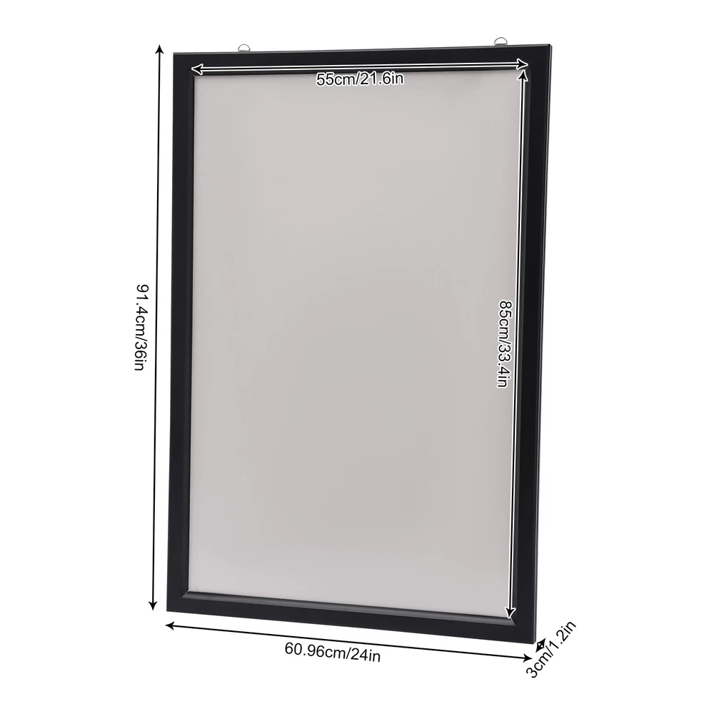 Application It is suitable for exhibitions, advertisements, signs, and decorations in cinemas, event promotions, retail stores, restaurants, art displays, trade shows, banks, hospitals, libraries, counters, offices, companies, menu boards, jewelry stores, hotels, studios, etc. Key Features Soft Light: This product uses a uniform nano light guide plate and side light guide technology, making the light soft and not harsh to protect your eyes. The LED light has high brightness, fast heat dissipation, which can provide stable performance, extend the service life of the product, and save electricity. Multiple Uses: It can display posters for cinemas, shopping malls, restaurants, etc. to attract customers' attention or be used as a signs board to guide the way for passersby. LED Light Box Movie Poster Display 23.6"*35.8"Advertising Frame Store Wall Mount Description: Our photo light box is made of a premium aluminum alloy and acrylic. It’s sturdy and durable. With two sturdy hooks on the back, you can easily hang this product on the wall.LED light source can illuminate your posters and advertisements. This product doesn't need assembly and you can use it directly after plugging it in. The LED light box is suitable for home decoration and commercial areas, such as chain stores, supermarkets, stations, large-scale exhibition projects, etc. Package Included 1* LED Poster Frame Specification Color: Black Material: Acrylic, Aluminium Alloy Shape: Rectangular Style: Modern Plug Voltage: 110V Power: 20W Power Type: Plug-in Mounting Type: Wall Mount Lumen: 2000lux CRI: >85 Color Temperatur: 9000-10000K Service Time: About 80000h Efficiency: E Plug: American Standard Light Source: LED (Included) Net Weight: 3.5kg/7.7lbs Gross Weight: 4kg/8.8lbs Surface Treatment: Sandblasting Process, Baking Paint Process, Oxidation Process, Cutting Process Product Size: 60*3*91cm/23.6*1.2*35.8inch Package Size: 98*63*4cm/38*24*1inch Key Features Soft Light: This product uses a uniform nano light guide plate and side light guide technology, making the light soft and not harsh to protect your eyes. The LED light has high brightness, fast heat dissipation, which can provide stable performance, extend the service life of the product, and save electricity. Narrow Edge Design: The frame is spliced at 45° and has a width of 1.5 inch, which can maximize the visibility of the visual area (24*36 inches) and play a promotional and display role. Thoughtful Design: The built-in stainless steel shrapnel and the front-opening frame design allow you to gently flip out to open the panel, making it easy to replace the poster Multiple Uses: It can display posters for cinemas, shopping malls, restaurants, etc. to attract customers' attention or be used as a signs board to guide the way for passersby. You can also put it at home for decoration or use it as a display board for art galleries and museums. Details Study Hooks: With two sturdy hooks on the back, you can easily hang this product on the wall. Strong and Durable: The high-quality acrylic panel is dustproof, moisture-proof, and can resist impact and deformation. Meanwhile, the aluminum alloy frame adopts a sandblasting process, baking paint process, and an oxidation process, so it can resist wear, corrosion, rust, and heat. Protective Packaging: The four corners of the product are wrapped with sponges to resist compression and falls, which can prevent product damage in transit. Ready to Use: This product doesn't need assembly and you can use it directly after plugging it in. Application It is suitable for exhibitions, advertisements, signs, and decorations in cinemas, event promotions, retail stores, restaurants, art displays, trade shows, banks, hospitals, libraries, counters, offices, companies, menu boards, jewelry stores, hotels, studios, etc. Installation 1.Place the poster frame on the wall, and mark the location of the nail hole with a pen. 2.Drill 2/4 holes at the marked position and punch nails(not included). 3.Remove the rear protective film and hang the frame on the corresponding nail. 4.Remove the front protective film. Notes 1.The product has protective films on both sides, please tear them off before use. 2.Please allow the slight color difference caused by the shooting light and 1-3cm error due to manual measurement, and make sure you do not mind before ordering. Description: Our photo light box is made of a premium aluminum alloy and acrylic. It’s sturdy and durable. With two sturdy hooks on the back, you can easily hang this product on the wall.LED light source can illuminate your posters and advertisements. This product doesn't need assembly and you can use it directly after plugging it in. The LED light box is suitable for home decoration and commercial areas, such as chain stores, supermarkets, stations, large-scale exhibition projects, etc. Package Included 1* LED Poster Frame Specification Color: Black Material: Acrylic, Aluminium Alloy Shape: Rectangular Style: Modern Plug Voltage: 110V Power: 20W Power Type: Plug-in Mounting Type: Wall Mount Lumen: 2000lux CRI: >85 Color Temperatur: 9000-10000K Service Time: About 80000h Efficiency: E Plug: American Standard Light Source: LED (Included) Net Weight: 3.5kg/7.7lbs Gross Weight: 4kg/8.8lbs Surface Treatment: Sandblasting Process, Baking Paint Process, Oxidation Process, Cutting Process Product Size: 60*3*91cm/23.6*1.2*35.8inch Package Size: 98*63*4cm/38*24*1inch Key Features Soft Light: This product uses a uniform nano light guide plate and side light guide technology, making the light soft and not harsh to protect your eyes. The LED light has high brightness, fast heat dissipation, which can provide stable performance, extend the service life of the product, and save electricity. Narrow Edge Design: The frame is spliced at 45° and has a width of 1.5 inch, which can maximize the visibility of the visual area ((23.6 × 35.8 inches) and play a promotional and display role. Thoughtful Design: The built-in st