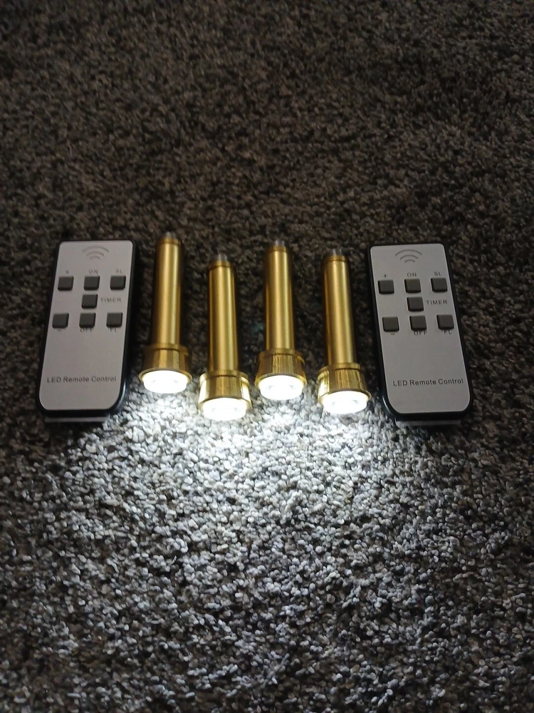 Fits Coleman 220 228 Lanterns, and AGM 2572. 4 tubes and 2 remotes. No Electrical Cords or Wires. Gold Plastc. Grandpas Old Lantern LED Burner Tube Inserts is Made For Coleman 220 228 Lanterns. Remove Original Tubes and Insert LED Tubes Quickly Without Damaging Lantern. Made to Display Your Collection Indoors, Shows, or Rare Unfired Lanterns. Lights. Switch Back to Original anytime. Lights are not made to replace the Same Light Output As Original Fuel. But Makes A Nice Light. 3 Modes of Glow, Including Slow Flicker, fast flicker, or steady. Requires 1 AAA battery per tube. LED inserts are made to display non- working lanterns, unfired rare lanterns, and indoor displays for a comforting light and show. I am always on the lookout to find a brighter light. As soon as one is developed that can run on the size of battery used, I'm all in. No one would love that more than me. LIGHTS FOR 200As ARE FOR SALE AS WELL. KEYWORDS: GRANDPAS OLD LANTERN 200A