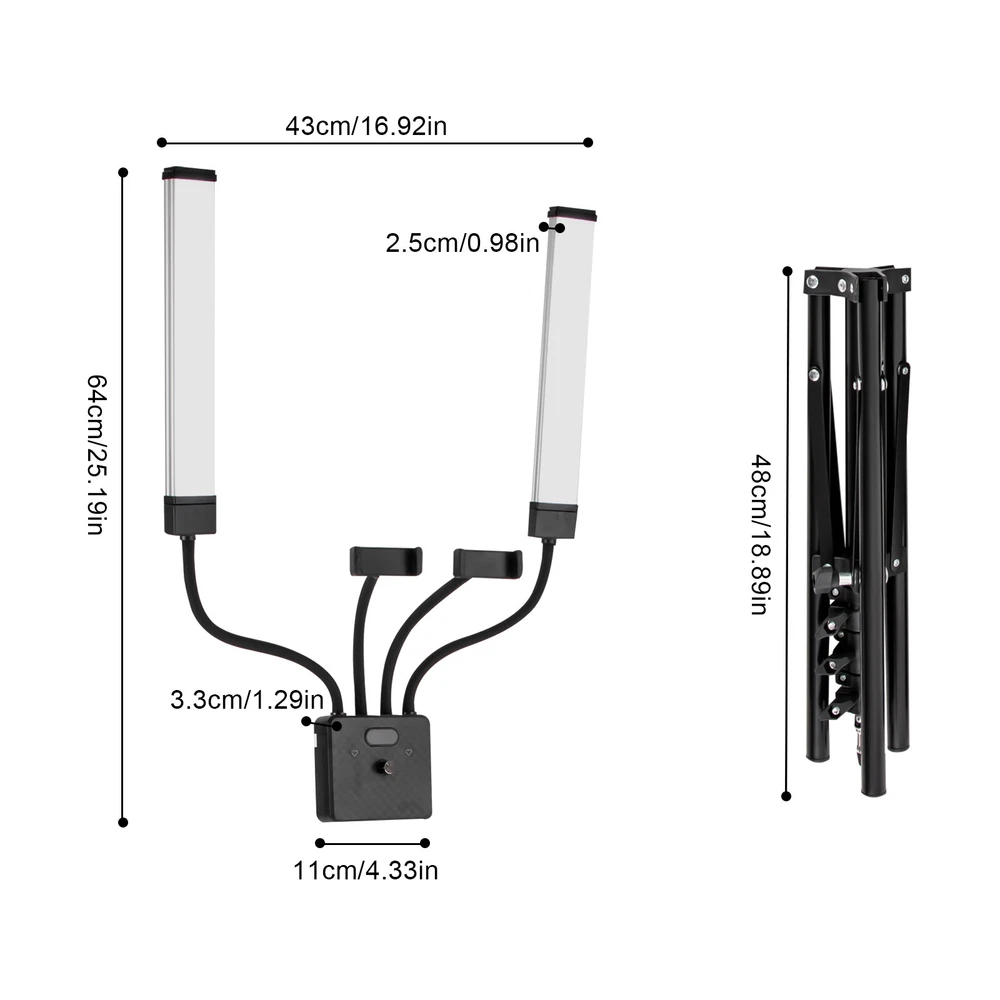 Description A good lash light will undoubtedly have high-quality materials, bright adjustable light, and a humane design, and our lash light can light up your beauty. Its excellent and energy-saving LED light source not only provides you with convenience but also protects your eyes. With it, whether at work or in life, you have an excellent helper. Application It can be widely used in beauty salons, nail salons, tattoo parlors, homes, live rooms, bedrooms, study rooms, and so on. It is ideal for tattoo artists, live streamers, online celebrities, makeup artists, eyelash technicians, facial care professionals, or estheticians. Package Included 1* Lash Light Lamp Body 1* Tripod Stand 1* Power Cord 1* Adapter 1* Handbag 1* English Manual Other Accessories for Assembly LED Light W/Stand For Makeup Eyelash Extensions Tattoo Social Media Beauty Shoot ❤Welcome❤ Description A good lash light will undoubtedly have high-quality materials, bright adjustable light, and a humane design, and our lash light can light up your beauty. Its excellent and energy-saving LED light source not only provides you with convenience but also protects your eyes. With it, whether at work or in life, you have an excellent helper. Key Features Sturdy and Durable: It consists of high-quality aluminum alloy and ABS with a painting treatment to make the product rustproof, corrosion-resistant, wear-resistant, and sturdy, which can better maintain long-term beauty and practicality. Excellent Lighting: The LED light source with 45W power, 112 lamp beads, adjustable brightness (10-100%), 2 light colors(white and yellow), 3000-6000K color temperature, 5000LM, and high color rendering index(>90) provides you with more natural and brighter light while protecting your eyes and saving energy, meeting the various lighting needs of beauty, tattooing, and photography. Adjustable and Rotatable: You can adjust the height (up to 6.56ft) by rotating and fixing the knob on the pole, and the lamps and phone holders can also be rotated 360 degrees to fully meet your different needs. Good Heat Dissipation: Uniform heat sinks on the back of the light can effectively help dissipate heat from the light source, which in turn ensures the durability and safety of the product. Lightweight and Portable: With 5.07 lbs of lightweight and a portable black handbag, you can take it with you when you're out on the air or tour, allowing you to focus on your work anytime and anywhere. Simple Installation: We have already equipped the product with the necessary mounting parts, so you only need to spend a little time assembling it. The English manual is equipped for your reference. Easy to Clean: The smooth surface and simple structure make it easy for you to clean it up with a rag. Ideal Gift: Because of its fancy appearance and bright light, you can give it as a gift for your friends, or family on Christmas, Thanksgiving days, etc. Customer Service: We aim to provide quality products and service s. If you have any problems, please feel free to contact us. We will reply and solve the problem for you as soon as possible. Details Cell Phone Holders: Two cell phone holders can clip the cell phones with a width of 2.36-3.35 inches, convenient for you to use in make-up, photography, or live broadcasting, for easy live streaming and shooting. Practical Lampshades: The ABS lampshades have good light transmittance to restore the original brightness of LED lights and effectively prevent dust from entering the interior to reduce the difficulty of cleaning. Independent Control Knob: You can long press it to switch on/off the light, short press it to adjust the light color, or rotate it to adjust the brightness infinitely. Triangle Stand: The tripod stand with foot pads ensures the stability of the product without easily sliding. Application It can be widely used in beauty salons, nail salons, tattoo parlors, homes, live rooms, bedrooms, study rooms, and so on. It is ideal for tattoo artists, live streamers, online celebrities, makeup artists, eyelash technicians, facial care professionals, or estheticians. Specification Model: HT-18R Color: Black Pattern: ‎Solid Process: Painting Material: Aluminum Alloy, ABS Light Source: LED(Included) Number of LED Beads: 112(56 for White Light and 56 for Yellow Light) Light Color: Yellow Light and White Light Indoor/Outdoor Usage: ‎Indoor and Outdoor Power Source: Corded Electric Plug Type: US Standard Assembly Required: Yes Mount Type: Floor Mount Remote Control: Yes Connectivity Technology: USB Remote Control Battery: 2* AAA Batteries(Not Included) Light Battery: 2*F550/570 2200mAh, F750/770 4400mAh, F960/970 6600mAh(Not Included) Lumen: 5000LM Color Temperature: 3000-6000K(±200K) CRI: RA>90 Dimmable Brightness: 10%-100%(Infinite Adjustment) Adjustable Angle: 360 ° Adapter Model: HT-1504000 Input Voltage: 110-240V, 50/60Hz, 1.6A Output Voltage: 15V, 4A Output Power: 40W Light Power: 45W Adjustable Height: Up to 2m/6.56ft Clippable Cell Phone Width: 6-8.5cm/2.36-3.35inch Overall Size: 224*43*48cm/88.19*16.93*18.9inch Package Size: 52*10*43cm/20.47*3.94*16.9inch Gross Weight: 2.8kg/6.17 lbs Net Weight: 2.3kg/5.07 lbs Package Included 1* Lash Light Lamp Body 1* Tripod Stand 1* Power Cord 1* Adapter 1* Handbag 1* English Manual Other Accessories for Assembly Notes Please strictly follow the instructions for use and installation, and pay attention to the safety precautions inside. Please note that the product does not include batteries, you need to prepare 2 AAA batteries yourself. When installing, please pay attention to the correct tightening direction. Please allow the slight color difference caused by the shooting light and 1-3cm error due to manual measurement, and make sure you do not mind before ordering. *Description* ??Beyond your expectations, let's work together to create a perfect shopping experience. ↓↓↓↓ HAVE A NICE DAY ! Payment Delivery details Terms of sales About us Contact us Payment We accept ebay p