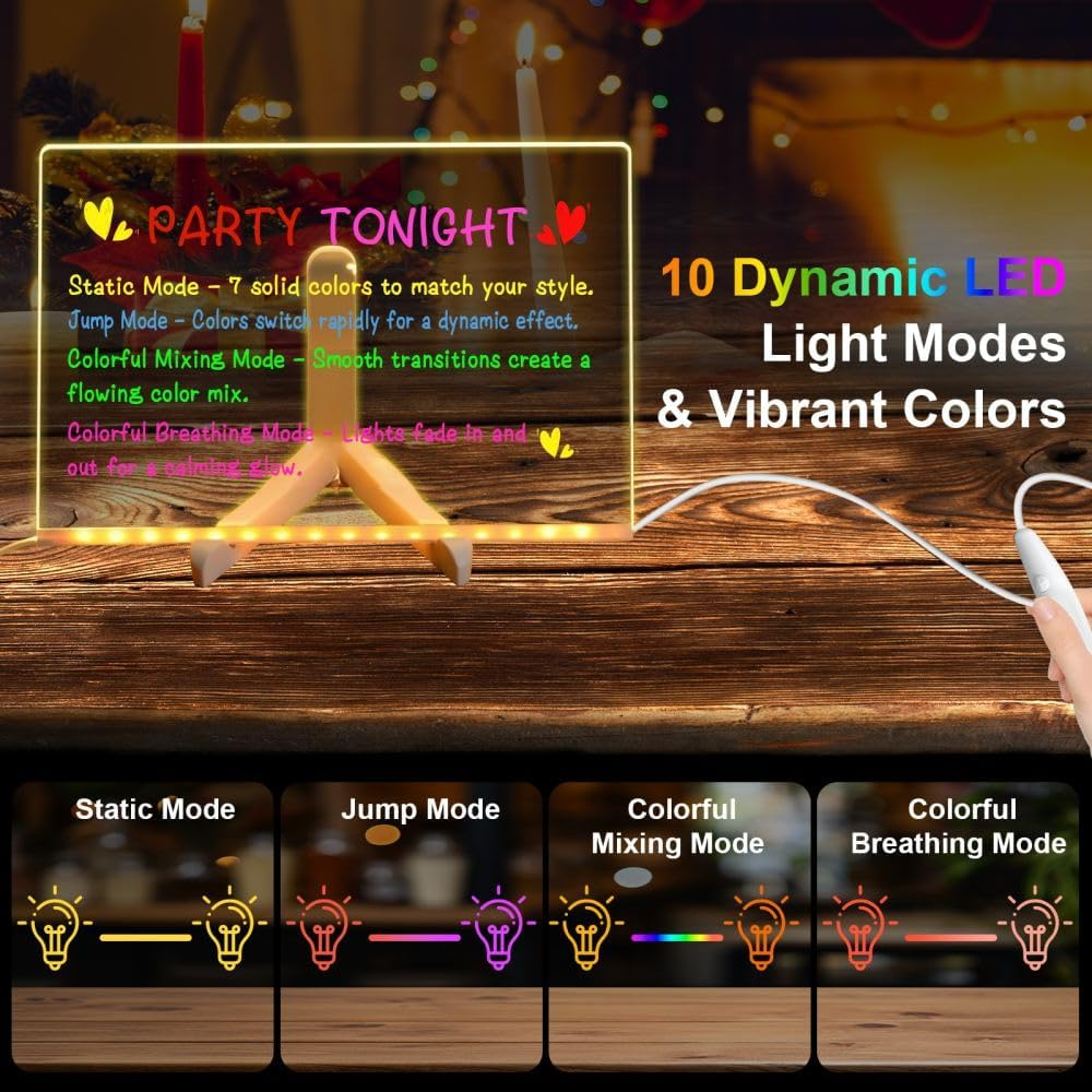 LED Light up Message Board - Doodle Glow Magic Board with 10 Modes, Acrylic Dry
