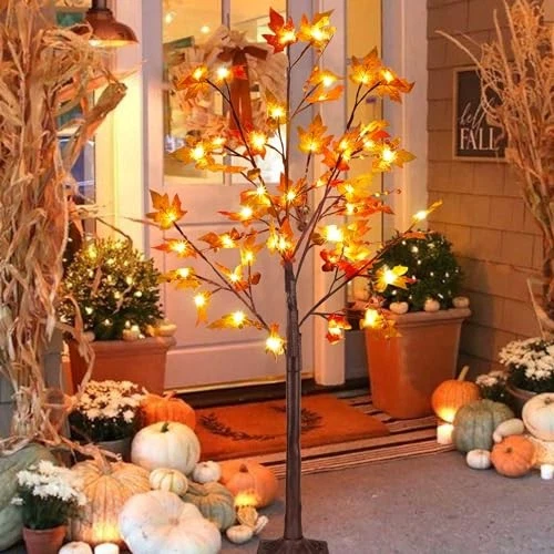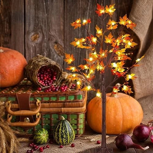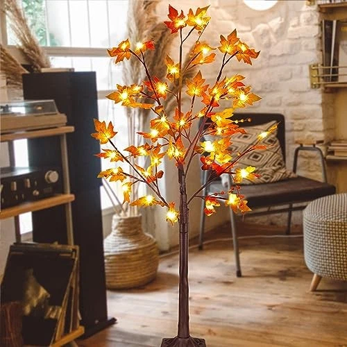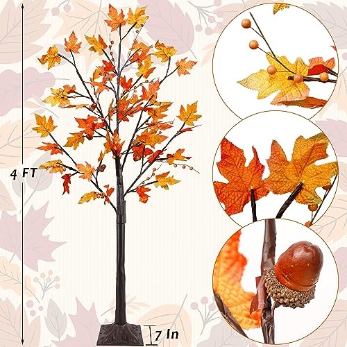 LED Lighted Maple Tree, 4 FT Lighted Artificial Tree for Thanksgiving Harvest