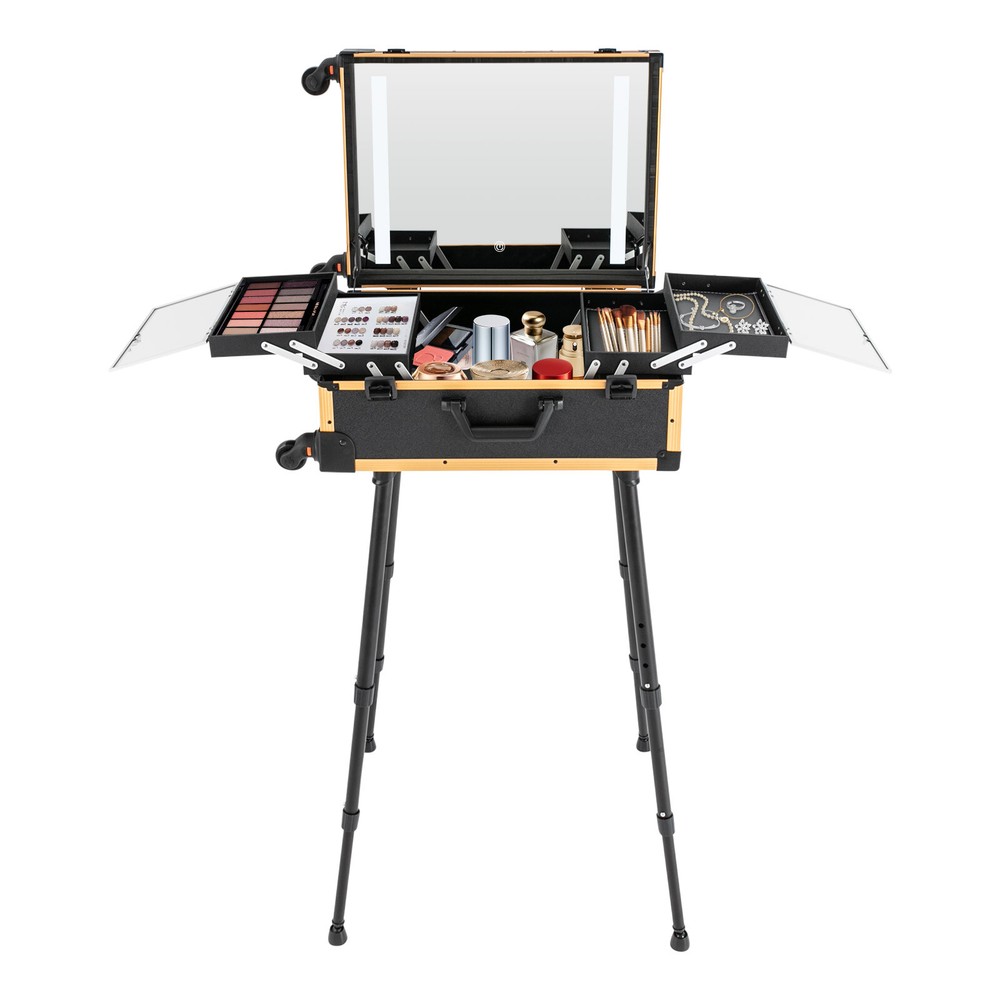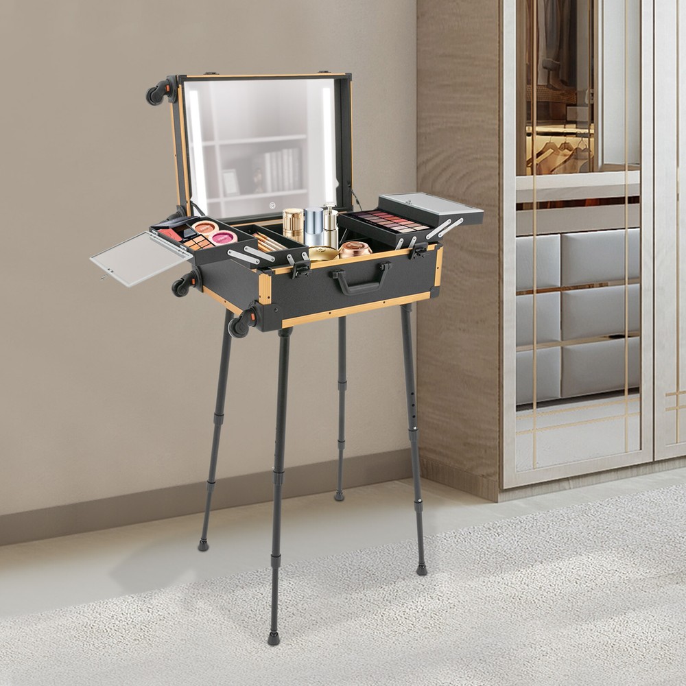 Whether you're working or traveling, a professional makeup case will be a great convenience. This makeup case is made of high-quality material, which is strong and durable. The compartmentalized design makes the items neatly organized, and the clear mirror and LED lights are convenient for you to apply makeup in various environments. It is ideal for professional makeup artists and cosmetologists. Rolling Makeup Case Trolley Train Box Organizer with LED Lighted Mirror DESCRIPTION High-quality Material: The product is made of high-quality aluminum alloy, medium fiberboard, ABS, and PVC with oxidation and electroplating processes, which are strong, pressure-resistant, waterproof, impact-resistant, corrosion-resistant, rust-resistant , and has a long service life. Humanized Design: The large mirror with LED light can be easily adjusted between warm, neutral and white light with the touch of the switch and the brightness of the light can be infinitely adjusted with a long press of the switch, which can help you see more details of your makeup and restore the true state of your makeup. Categorized Storage: This product has four storage trays for makeup brushes, nail polish, foundation, eye shadow, hair clips, and other tools (not included). The neat and orderly distribution and sorting trays keep the tools in order, which is an essential and good helper for you. Convenient to Use: This product is equipped with a 12V charging jack, an external power jack, and a power jack. After connecting the power cord, it can be connected to an external curling iron, cell phone, and hair dryer (not included) to meet your needs when working. Protect Your Privacy : Two locking buckles with keys securely protect your valuables inside the box and maximize your privacy. Flexible Movement: 4 universal wheels, a telescopic trolley rod, and a top handle make it easy to move the case up and down stairs, in and out of cars and elevators. The detachable universal wheels enable you to replace them conveniently when damaged, which is easy and cost-efficient. Ideal Gift: With a stylish appearance and practical functions, this product is an ideal birthday and holiday gift for family, friends, fashionistas, and beauty lovers. Effortless Cleaning: Thanks to the smooth surface and simple structure, you can easily wipe off the dirt on it with a soft cloth. Good Customer Service: We stand behind all our guests and look forward to assisting you with your purchase. It is our pleasure to answer your confusion and questions. The end of the story between us is not "we sell and you buy". Details Adjustable Support Legs: The support legs have four adjustable heights (29.33in, 30.71in, 32.09in, and 33.46in) for people of different heights. Removable Tray: Two hooks and loops on the inside of the case make it easy to secure the tray and remove it for individual use. Wide Opening : With a wide opening, it is easy for you to store and retrieve certain items without messing up other items in the box. Application This product is suitable for travel, wedding, event, and home makeup use, and can organize makeup brushes, nail polish, foundation, eye shadow, hair clips, and other tools. It is ideal for makeup artists, hair stylists, nail technicians, and cosmetologists. Package Included 1* Makeup Case 4* Legs 1* Storage Bag 2* Keys 1* USB Cable 1* Power Cord All Accessories for Installation DESCRIPTION 2 Notes Please note that cosmetics and make-up tools are not included. Wear and tear is normal for cosmetic cases after use. Please try to avoid excessive impacts and drops during daily use to minimize the wear and tear of the case. Please use soft tools for cleaning. Please use water to clean, away from corrosive liquid. Please avoid long-term exposure to the sun. Please remove the debris around the wheels in time to keep the dragging smooth. Please allow the slight color difference caused by the shooting light and the 1-3 cm error due to manual measurement, and make sure you do not mind before ordering. ↓↓↓ Payment Delivery details Terms of sales About us Contact us Payment We accept ebay payment 。 Fees such as import duties, taxes are not included in the item price or shipping costs. These charges are the buyer's responsibility. Delivery details Shipping: 2-9 working days to: USA Terms of sales We maintain high standards of excellence and strive for hundred percent customer satisfaction. Feedback is very important to us. We hope that you contact us immediately before you give neutral or negative feedback, so that we can address your concerns. It is impossible to address issues if we do not know about them! About us Your satis faction is our ultimate goal. We work hard to earn your trust and future business. Our certified technicians have tested each item before shipping. The unit comes with 1 year limited warranty on all manufacturing defects. a) If you receive a defective item, you may return it or ask for a discount. Please contact us within 14 days after you receive the package. b) What you returned must be intact and in its original packaging as re? u. Customer is responsible for shipping costs of the returned item. c) We will cover the cost of shipping back t with the shipping rate indicated in the registration page. We will send you a new unit or refund the full payment you paid. Thank you. Contact us Business Hour Business Hour: Monday To Friday: 8:30 AM to 5:00 PM (Beijing China time) Due to time zones, our reply to your questions may not be immediately. But within above working time, we will reply your email within 24 hours. If it's non-workdays, please kindly be patient and wait till Monday. Please contact us with ebay message. Please feel free to contact us if you have any questions. Monday To Friday: 8:30 AM to 5:00 PM (Beijing China time) Due to time zones, our reply to your questions may not be immediately. But within above working time, we will reply your email within 24 hours. If it's non-workdays, please kindly be pati