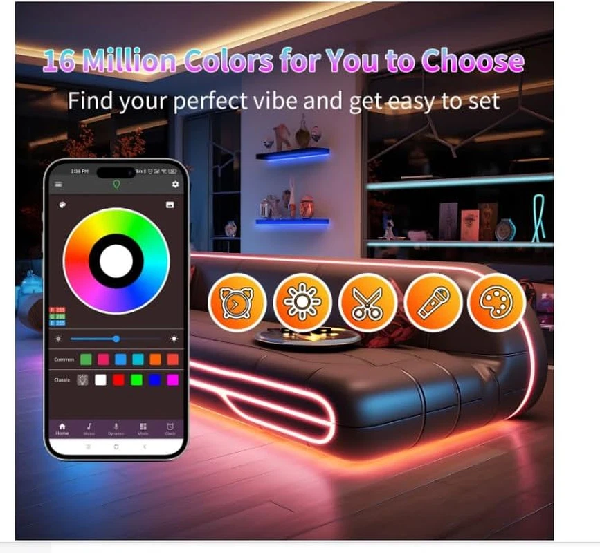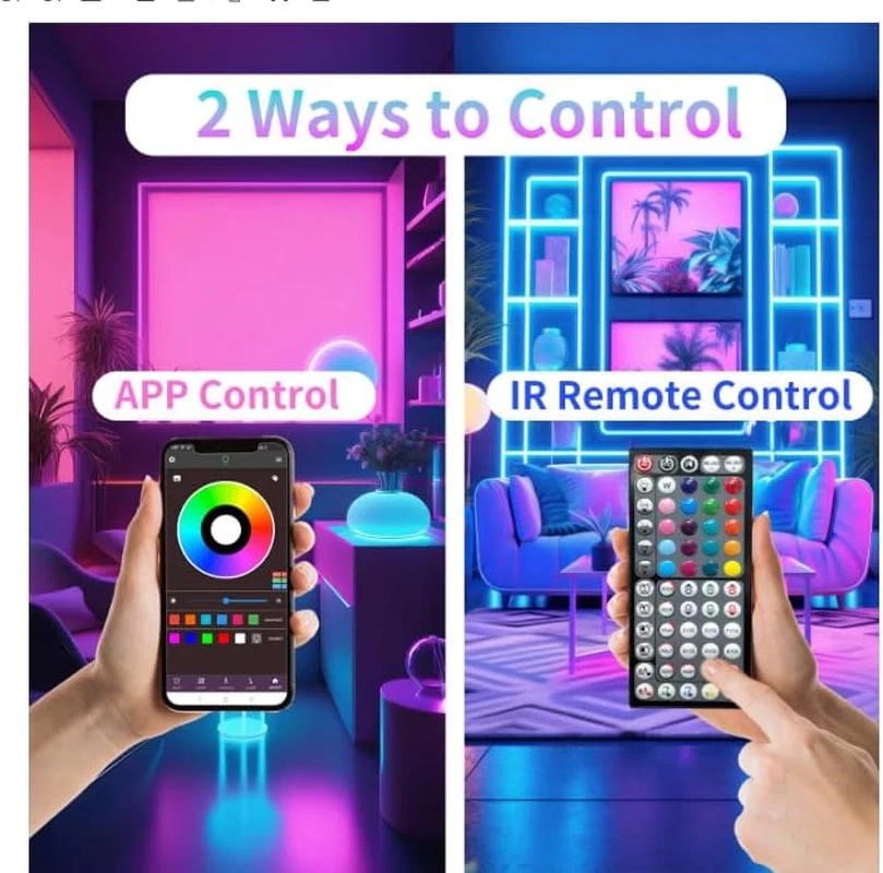 【Amazing RGB Effect】With a variety of modes to choose from, you can make the RGB led strip lights work according to your mood and activities, or use the auto-match mode. Choose from a variety of lighting effects 【Timing Setting】With the timer function, it can automatically turn on and off, you can set the wake-up time and end time to turn it on/off automatically, putting you in a good mood every day 【Sync with Music】Built-in sensitive microphone, the led lights 100ft can change colors and speed by detecting the rhythm of the surrounding sound and music. It can also sync to music by a smartphone with the app. These ambient lights will let you enjoy the dynamic party atmosphere 【App & Remote Control】You can use the remote and app to control the rgb led strips, freely choosing 16 million colors and different modes (like Flash, Jump, Fade, etc.), enhancing the beauty of your room decor aesthetic 【Adjustable Brightness】The brightness of the dimmable LED strip lights 50+ft can be adjusted to 20%, 40%, 60%, 80% or full brightness using the remote control. Alternatively, the brightness of the LED strip lights for bedroom can be freely adjusted from 1% to full brightness using the app, allowing users to meet both high and low brightness needs 【Wide Use】These RGB LED lights can bring you a visual feast. They are perfect for birthday parties, Christmas, Easter, Halloween, carnival, prom, and weddings. The led lights for bedroom are suitable for house ornamentation, especially for festival needs 【Easy Installation】The led tape light comes with a strong adhesive backing that can be installed in any dry location, just tear off the paper and stick it on, with the strong adhesive you don't have to worry about plug in led light strip falling off. (Tips: wipe off dust before applying) 【Post-Sale】Our cuttable led light strip have passed strict quality inspection, we are full of confidence in the quality of our room led lights for bedroom. Please get in touch with us if you encounter any problems or have any questions when using our fancy leds for bedroom. Our expert technical team is always ready to answer your questions and provide support. Product Description NBBUFF Led Lights for Bedroom NBBUFF RGB Led Strip Lights - Let you experience an immersive home light show With rgb led lights for room your home will look more stunning and decorate your vibrant life! NBBUFF RGB Led Strip Lights - Light Up Your Home NBBUFF Multi-Functional LED Light Strip for Multiple Scenarios The colourful music sync color changing led strip lights bring you a stunning visual effect! You can enjoy exciting moments with your family and friends under the magical lights. NBBUFF Dimmable Led Strip Lights for Bedroom Free Timer Led Light Strips with Remote - Your Light Alarm Clock Free timer led light strip with timer for more relaxing sleep, fall asleep/wake up with soft light. The light strip can be switched on and off using the remote control or Mohuan LED app, allowing you to avoid any inconvenience caused by darkness during the night. NBBUFF Game Room Ambient Lighting Led Strip Lights Gaming Accessories Led Light Strip Led light strips add dynamic ambience to your playtime, in a way that alleviates. Our led light strip enhances the gaming experience with a built-in microphone that changes colour to the rhythm of the music, reducing fatigue and creating a dynamic rock 'n' roll atmosphere. NBBUFF Music Sync Color Changing Led Strip Lights Fancy Leds Strip Lights- Essentials for Party & Festival NBBUFF rgb lights are designed to change colour in response to the sounds in the surrounding environment, offering you a choice of 21 music modes to enhance your party experience.