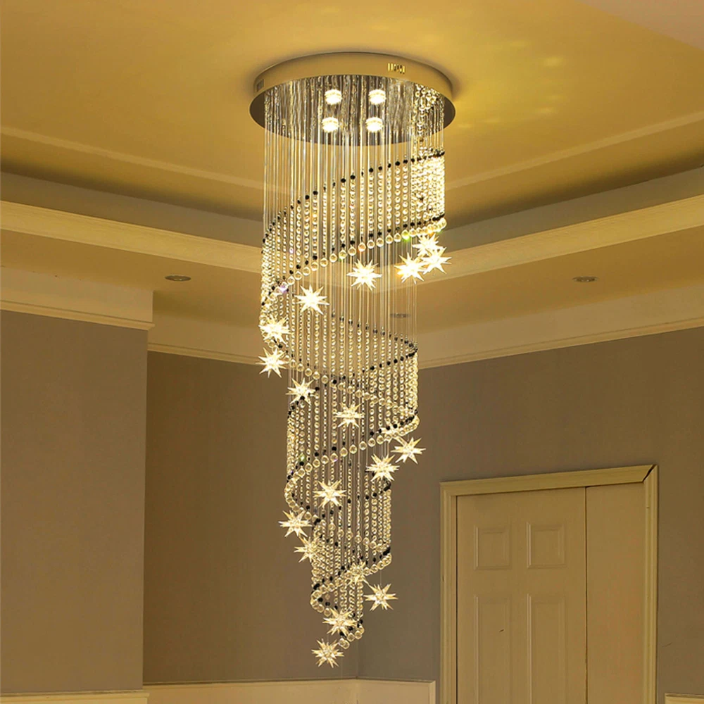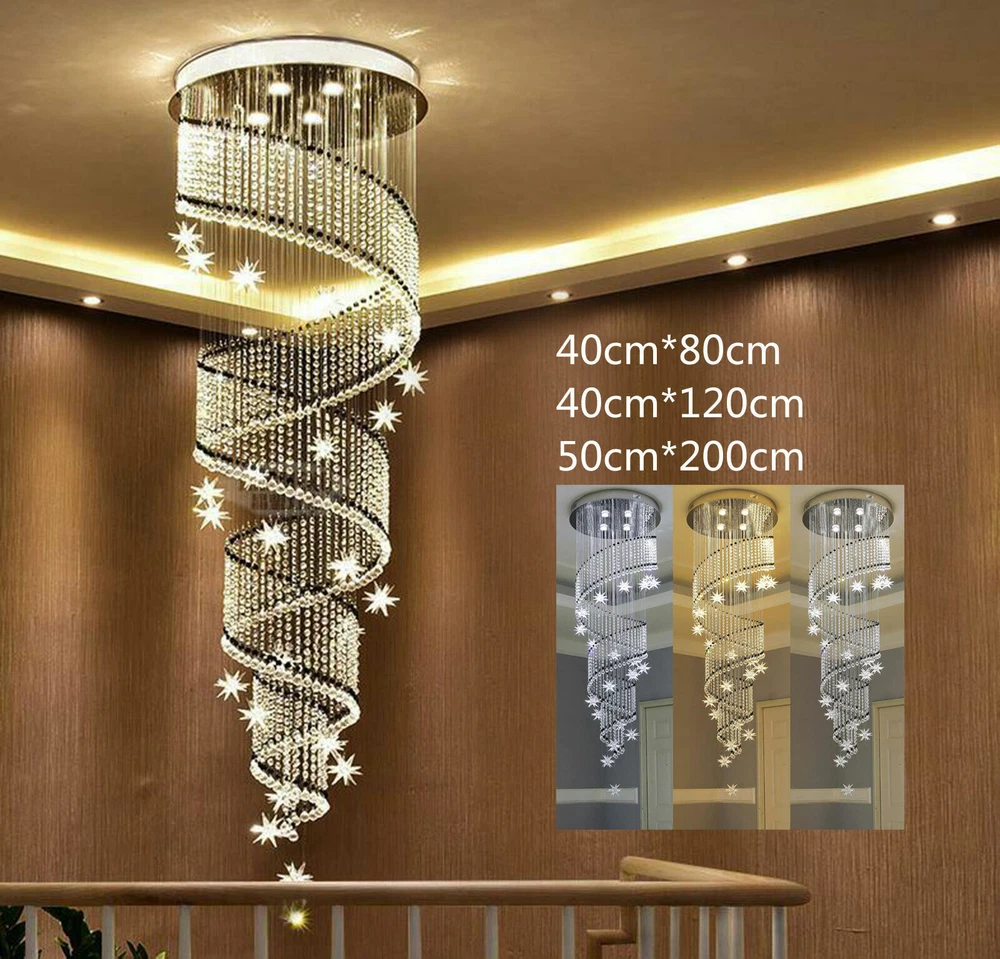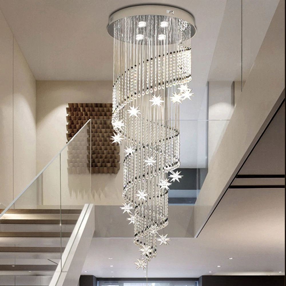 LED Modern K9 Crystal Chandelier Light Ceiling Villa Stairs Lighting Fixture