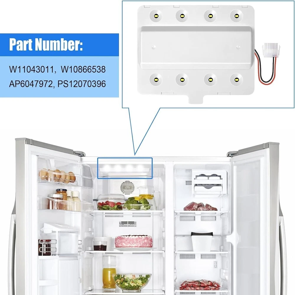 gtin13: Does not apply MPN: W10866538,W11043011,AP6047972,PS12070396 Compatible Model: W11043011,AP6047972,PS12070396,W10866538 Power Source: Electric Material: ABS Plastic Compatible Brand: Whirlpool,Kenmore,Maytag,Amana Capacity: N/A Color: White Type: Refrigerator LED Light Module Suitable For: Refrigerator Installation: Built-In Features: LED Lighting UPC: Does not apply Set Includes: Lamp Brand: Unbranded Model: W11043011