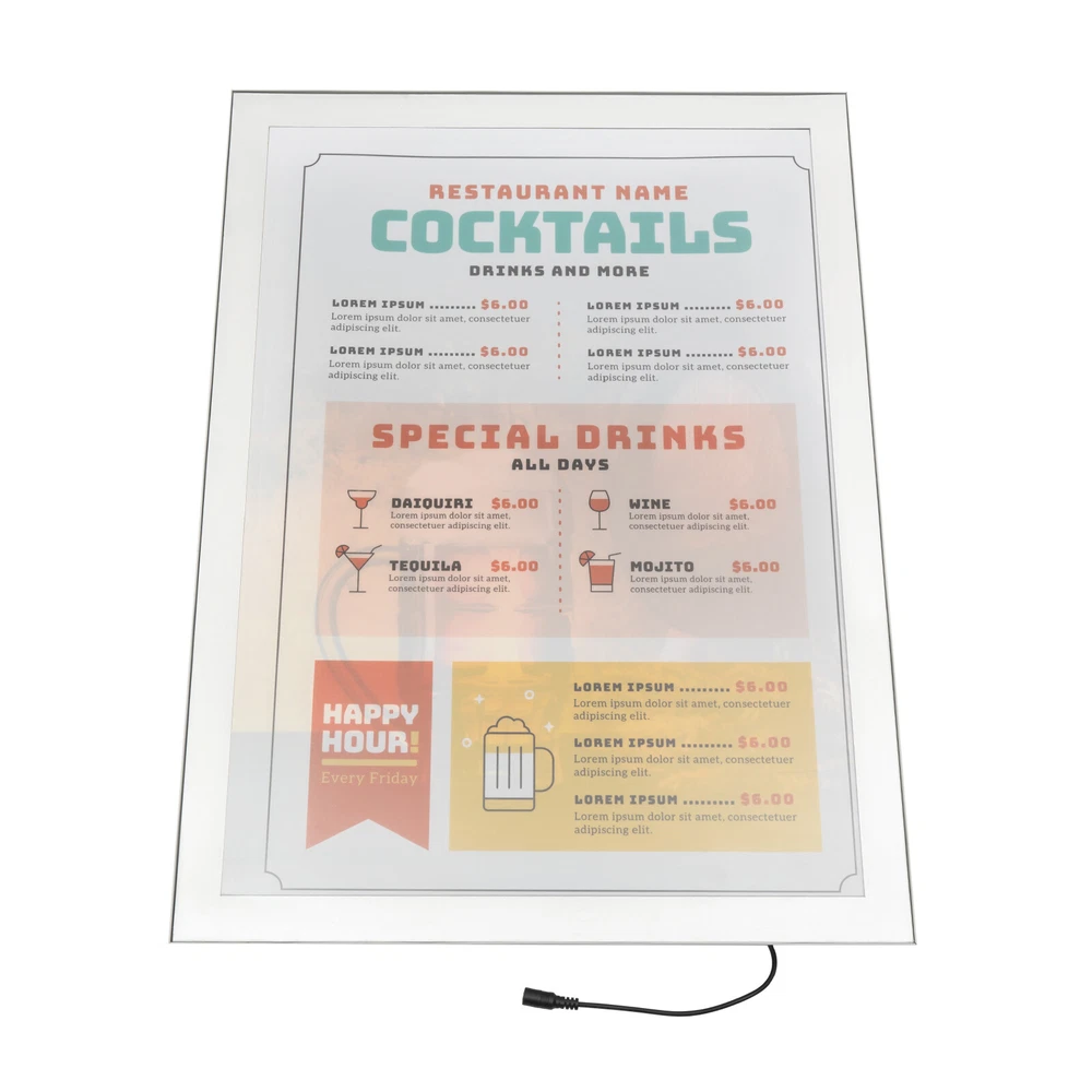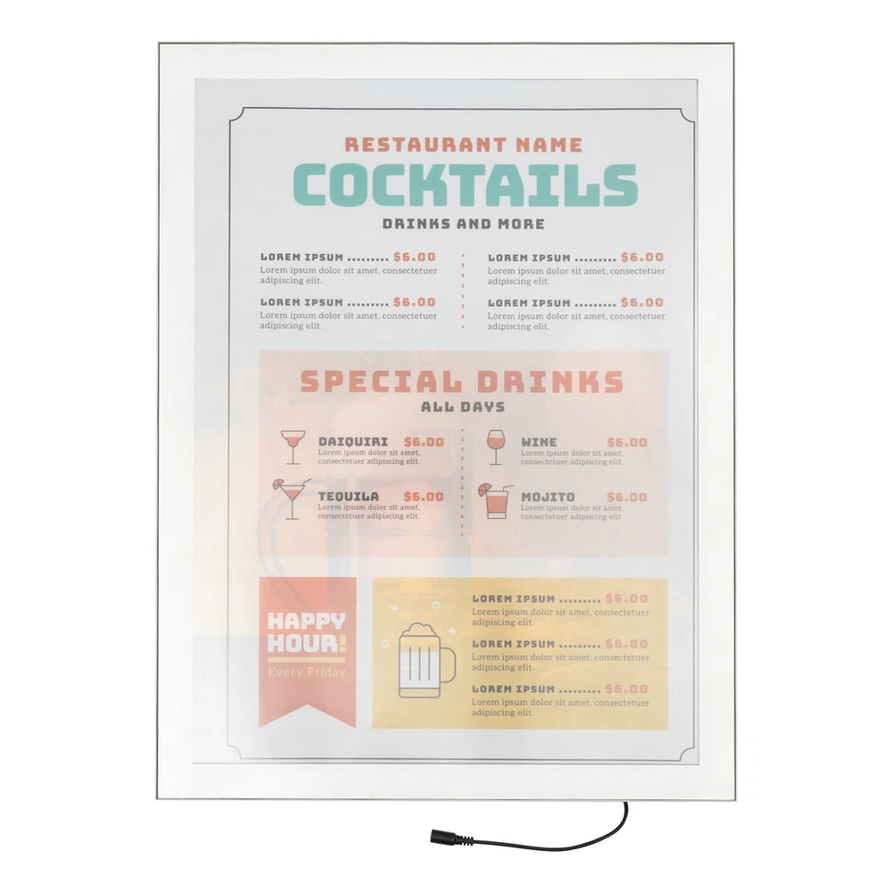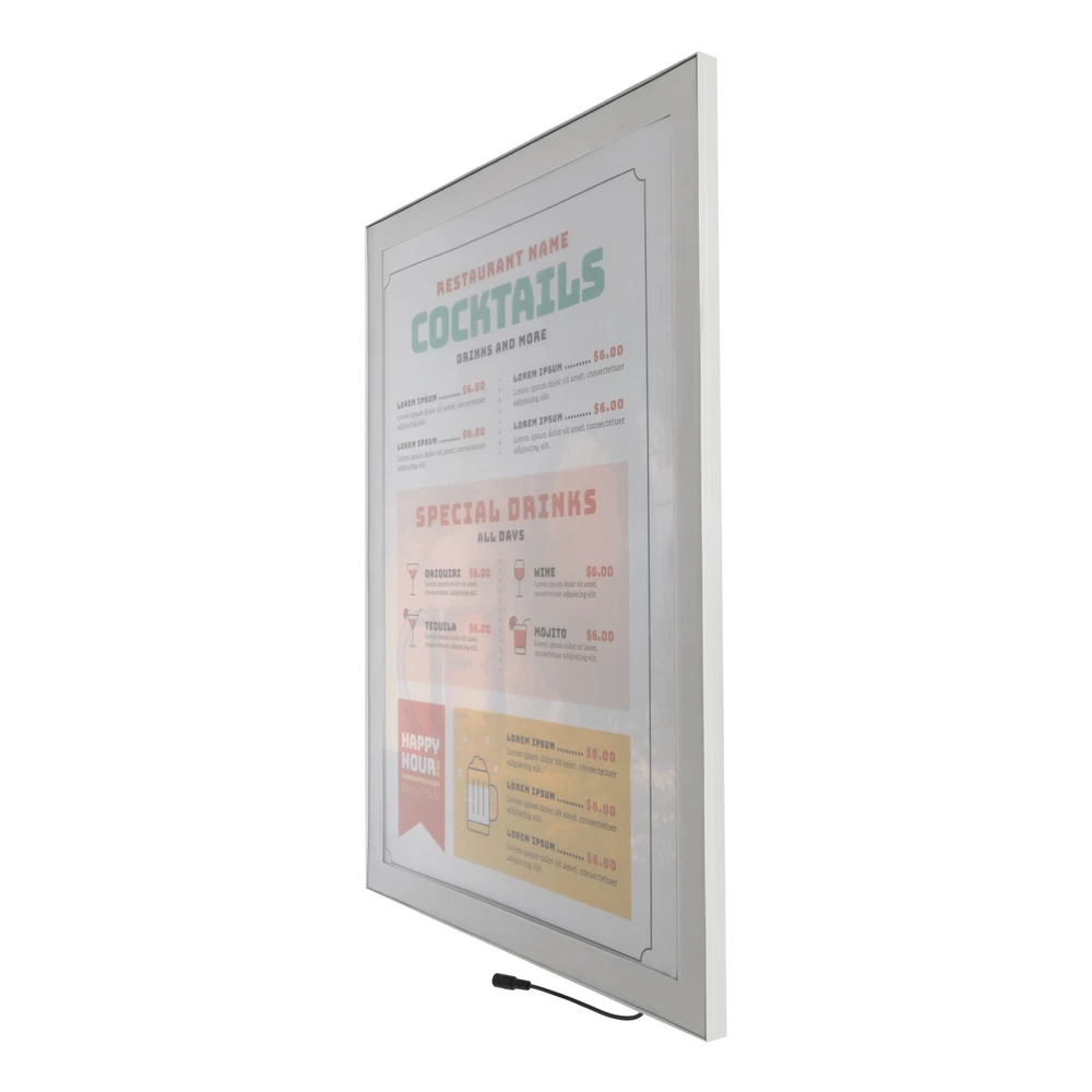 This LED poster frame is a game-changer for displaying artwork, menus, or movie posters! The sleek silver design looks modern and professional, while the bright, energy-efficient LED lighting makes everything pop. Easy to mount horizontally or vertically, it’s super versatile. The magnetic frame makes swapping posters a breeze, and the high-quality materials feel sturdy. Perfect for cafes, theaters, or even home decor—super impressive for the price!