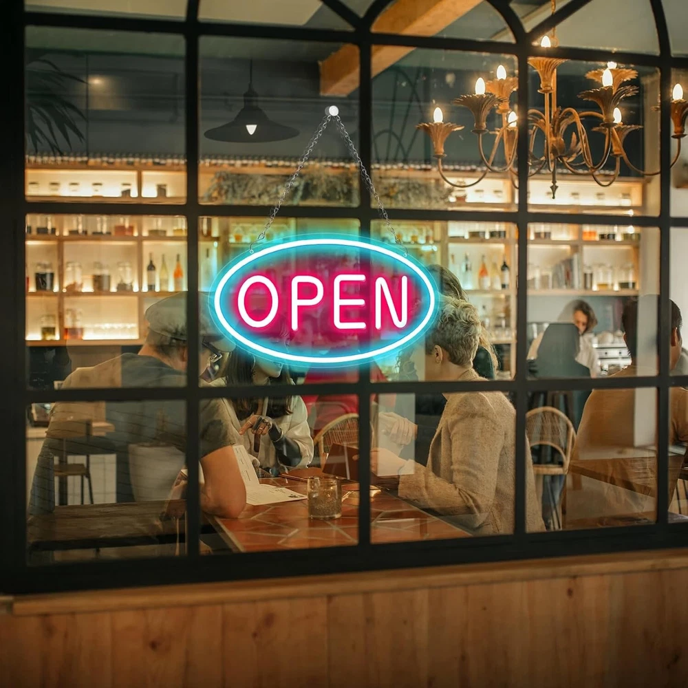 LED Neon Open Sign, 16.5 * 9inch 12V Open Signs for Business with ON/OFF Switch, LED Light Sign for Storefront Window, Glass Door, Shop, Florists, Bar, Salon, Restaurant (Blue & Red) HIGH QUALITY: Only needs 12 V to cast a comfortable and soft illuminated atmosphere for your business or store, which will help you reduce energy costs. And it's non-dazzling, noiseless and flicker-free, so it won't make your customers feel uncomfortable EYE-CATCHING: This 16.5*9 inch open neon sign with vibrant blue and penetrating pink color will help to attract more customers for your business ULTRA BRIGHT: Our LED open sign are made of 8 mm flexible silicone neon strip and acrylic. Compared with ordinary sign, our neon signs are more reliable, last much longer and brighter! And there is no risk of overheating or glass breakage EASY TO INSTALL: The open sign comes with the plug and switch, 1 Mounting Chains. The max 16.4-foot cord is not only convenient for you to connect the outlet power, but also allows you to easily mount the open sign for any storefront, window, etc WIDELY USED: Neon open signs are used in a wide range of settings, such as bars, salons, retail stores, restaurants, game rooms, parties, window, wall decor, etc Shipping We offer FREE shipping on all orders! We ship within Three business days of payment, usually sooner. We use a selection of shipping services such as UPS, FedEx, USPS etc. We only ship to the lower 48 states, no APO/FPO addresses or PO Boxes allowed. Local pickups and combined shipping options are not provided at this time. Return You can return a product for up to 30 days from the date you purchased it. Any product you return must be in the same condition you received it and in the original packaging. Please keep the receipt. Payment We accept payment by any of the following methods: PayPal Please pay as soon as possible after winning an auction, as that will allow us to post your item to you sooner! Feedback Customer satisfaction is very important to us. If you have any problem with your order, please contact us and we will do our best to make you satisfied. Contact Us If you have any queries, please contact us via ebay. We usually respond within 24 hours on weekdays. Please visit our eBay store to check out other items for sale! Thank you for shopping at our store.