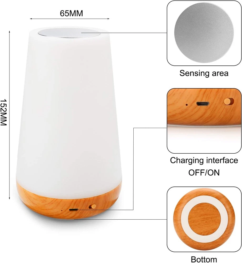LED Night Light Touch Lamp Bedside Table Lamp for Kids Bedroom Rechargeable Dimm
