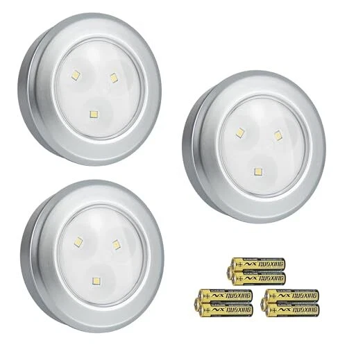 Color Temperature: 3000 Kelvin Country of Origin: China Material: Plastic Model Name: HA002SL-3 with battery Installation Type: Surface Mount Batteries: 1 Lithium Metal batteries required. (included) Brightness: 60 Lumen Type: Does Not Apply Item Length: 2.29 Item Height: 0.99 Switch Type: Touch Manufacturer: Does Not Apply Control Method: Touch EAN: Does Not Apply Color: Silver, with batteries3PK UPC: Does Not Apply Item Weight: 1.44 ounces Shade Material: Plastic Light Source Type: LED Product Dimensions: 2.29 x 2.29 x 0.99 inches Assembled Length: 2.29 inches Mounting Type: Surface Mount Special Features: Energy Efficient Number of Light Sources: 3 Batteries Included: Yes Shade Color: Silver MPN: Does Not Apply Special Feature: Energy Efficient Number of Items: 3 Item model number: HA002SL-3 with battery Part Number: HA002SL-3 with battery Recommended Uses For Product: Accent Lighting, Task Lighting Date First Available: October 29, 2024 Assembled Height: 0.99 inches Assembled Width: 2.29 inches Included Components: 3 LED Puck book light (Battery included) , 3 Double-sided tapes, Indoor Outdoor Usage: Indoor Brand: Does Not Apply Room Type: Bathroom, Kitchen, Living Room, Bedroom, Home Office Style: Modern Item Width: 2.29 Batteries Required: Yes Lighting Method: Puck Lights gtin13: Does Not Apply