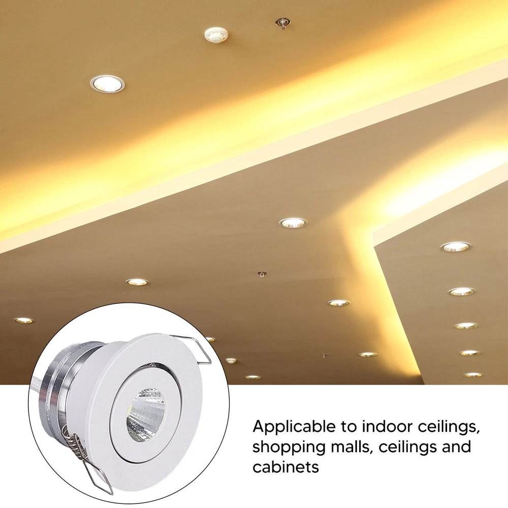 Feature: 1. Mild Lighting: LED recessed light is matched with high light transmission lampshade, so the light is soft and not dazzling, with stable heat dissipation, impact resistance, good insulation and longer service life. 2. Operating Voltage: Mini LED recessed light voltage is AC 85‑265V. If you want to use it normally, you'd better choose the corresponding voltage. 3. Fashionable Simplicity: Adjustable recessed light is small in size, which will not affect the overall beauty of the wall and make the interior decoration more simple and fashionable. 4. Adjustable Angel: Angle of recessed ceiling light is able to be adjusted to meet the needs of different lighting angles, which is very practical and convenient. 5. Multi Application: White recessed light is suitable for indoor ceilings, shopping malls, ceilings, cabinets, display cabinets, collection room, toilets, porch, etc. Specification: Item Type: LED recessed light Material: Aluminium Panel Diameter: Approx. 52mm / 2in Height: Approx. 33mm / 1.3in Opening Hole size: 42-48mm / 1.7-1.9in Installation Method: Embedded Light Source Power: 5W Weight: Approx. 92g / 3.2oz Package List: 1 x LED Recessed Light