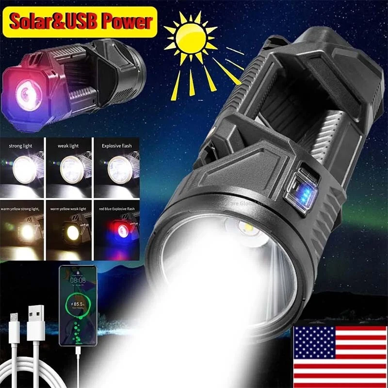 LED Rechargeable Solar/USB Super Bright Portable Handheld Spotlight Flashlight