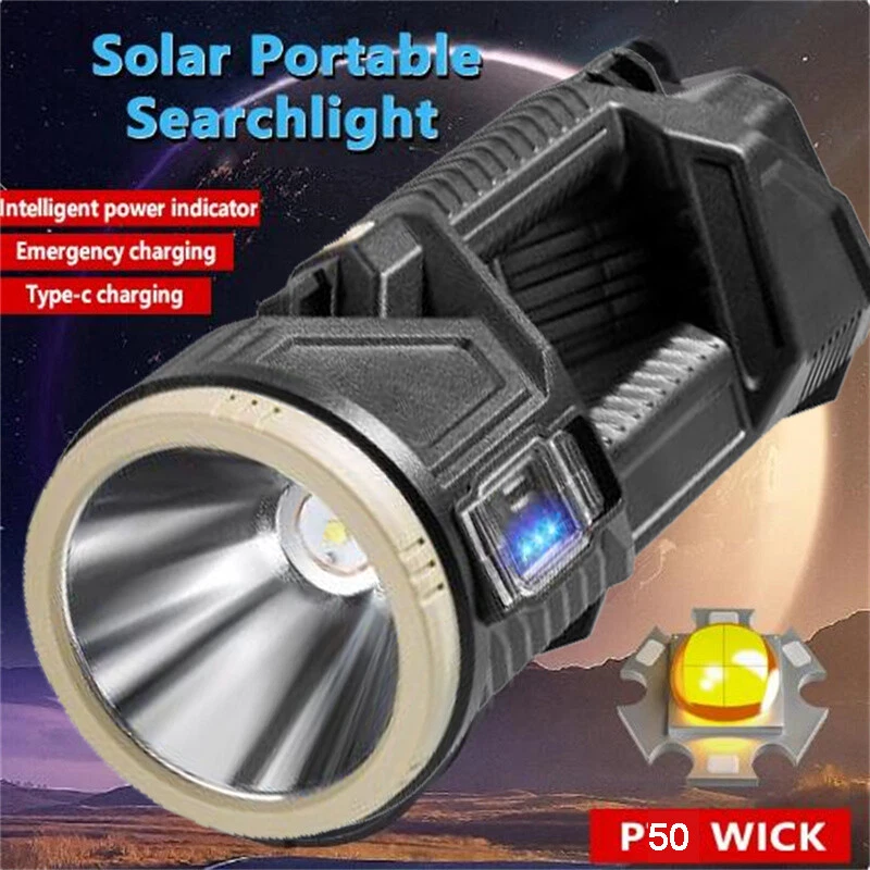 Material: ABS, PS Bulb: P50+COB Running time: 3-4 hours Item Length: 4.25*10.63*4.53inch Charger: Multifunctional Charging Features: Handheld, Rechargeable, Solar, Waterproof Item Height: 4.25*10.63*4.53inch Color: Black Brand: Unbranded/Generic gtin13: Does not apply Item Weight: 4.25*10.63*4.53inch Operating Range: 25 m Power Source: USB Type: Flashlight MPN: Does not apply Lighting Technology: LED UPC: Does not apply