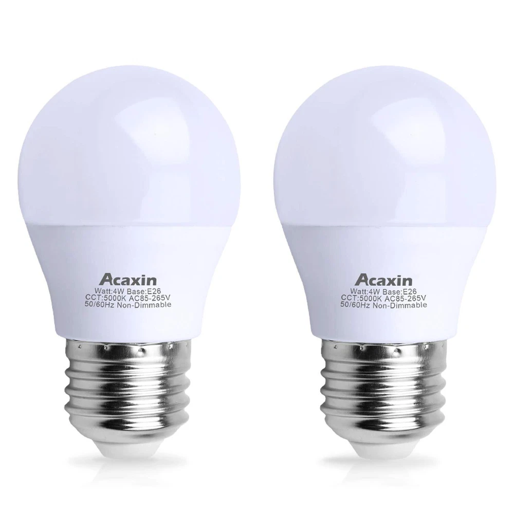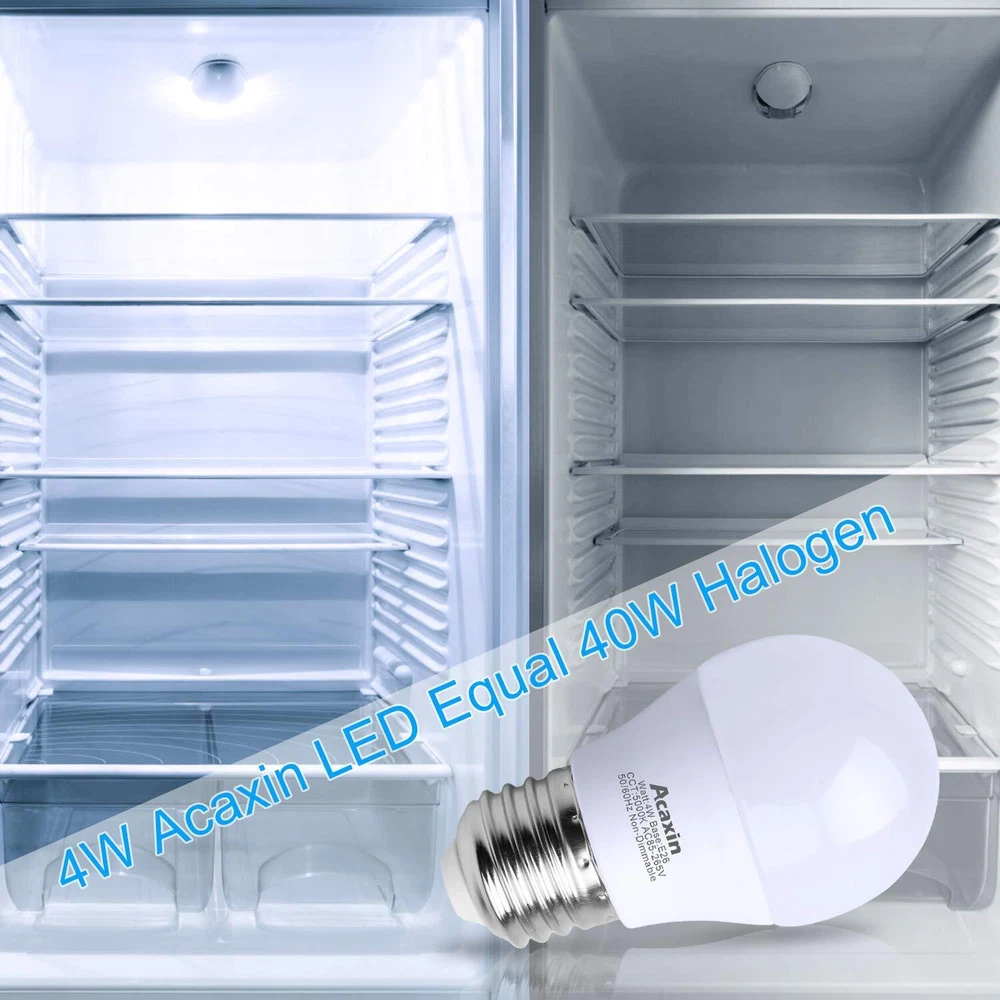❤ Features √90-Day and 3-Year Add led bulb 4w with 400 lumen into your cart without hesitation as we provides unconditional 90-DAY and 3-YEAR . If you are not satisfied with your purchase, please feel free to our service team directly to solve your problems √ Standard E26 base: Easy installation, small compact size is suited for most light fixtures, ceiling light, bathroom light, outdoor light. √ Care your Eyes The e26 led bulb 4 watt turns on instantly with flicker-free, buzzing-free, mercury-free and provides 5000k daylight white lighting offers more energy for your kitchen, living room and office, where your attention is most needed. ❤ Specification: --Brand: --Power: 4W(40W equivalent) --Dimmable: No --Material: PC --Lumen: 400 LM --Voltage: AC 85-265V --Beam Angle: 270 degree --Size: Dia1.8*L3.1inches --Base Type: E26/E27 standard base --Light color: Daylight/Cool White 5000K --Pakage Includes: 2x 4watts A15 E26 medium base LED bulb ❤ Tips ☞ 40w equivalent light bulb is 1.8*3.1inches, pls check the base and size carefully before purchase; ☞ Do not put it in enclose fixture. Otherwise, the performance will be highly impacted; ☞ Our E26 base bulb is non-dimmable, do not use it with dimmer switches. Otherwise,it may cause buzzing and flickering 💡💡 Perfect Refrigerator Light Bulb for Fridge - Mini fridge 40w 120v light bulb, IP54 rank waterproof, 5000K daylight white, work temperature: -20℃-45℃. Sturdy, don't need change refrigerator led bulbs frequently. Wide application in refrigerator, freezer, ceiling fans, pendant lights, bathroom vanity light, ideal appliance light bulb for home. 💡💡 Energy Saving, Money Saving - A15 refrigerator led bulb 4 watt daylight is a perfect frigidaire light bulb of 40w traditional incandescent refrigerator light bulbs. A15 120v 40w bulb for refrigerator bulb is more energy-saving, use less , long life energy saver freezer light bulb. 💡💡 High Quality Fridge LED Bulb- Flicker-free, Buzzing-free and Mercury-free, Excellent Heat Dissipation. E26 led light bulbs are less than florescent bulbs, keep your home safe and better for the environment 💡💡 Wide Application - led bulb A15 4W 400 lumen with E26 small base is ideal for your ceiling fan lights, table lamps, accent lights, wall lamps, desk lamps, floor lamps and other light fixtures 💡💡 About - is always putting every effort to improve your home lighting experience. We are committed to providing high quality lamp and satisfy customers needs, and give you different and special home lighting experience