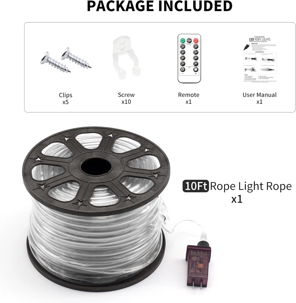 Store New Arrivals Add to Favorite View Feedback Contact LED Rope Lights for Outside,10Ft Waterproof Led Rope Lighting 43 Leds 110V 8 Modes Remote Control Timer Led Strip Light for Indoor Outdoor Party Holiday Garden Decoration (White) Description Item model number LE-PX10-WH Light Source Type LED Style Modern Number of Items 1 Power Source AC Number of Light Sources 43 Control Method Remote Theme Decoration Batteries Included? No Controller Type Remote Control Batteries Required? No Wireless Communication Technology Infrared Material Polyvinyl Chloride Seasons All Seasons Package Dimensions 7.28 x 7.13 x 2.44 inches Included Components Rope light x 1, Remote x1, Manual x 1, Cable clamp x 5, Screw x 10 Indoor/Outdoor Usage Outdoor, Indoor Country of Origin China Light Color White Water Resistance Level Water Resistant Item Weight 10.2 ounces Occasion Christmas Special Features Corded Special Feature Corded Color White Voltage 110 Volts (AC) Size 10Ft Remote control with 8 modes : This Led rope light supports 8 modes lighting effect switching, and support brightness options and timing function.Just press the button on the remote control to change the mode and enjoy the lighting you choose. Durable outdoor LED rope light : This LED rope light is covered with good quality transparent PVC round tube, which can effectively protect the inner circuit.UV resistance5000 hours, use it with confidence. Outdoor rope lights waterproof : Rope lights outdoor have IP65 protection, don't worry about the safety of outdoor use even if it rains.(Please note that the plug is not waterproof, please keep the plug away from water sources) Easy to shape : Outdoor LED rope light is easy to shape around any place you want, only needs to connect to a 110V power supply will add holiday atmosphere for your life. Great for party, wedding, Christmas, camping, patio, garden, bedroom etc. Safe voltage : The plug is equipped with a built-in voltage reducing device.The voltage will automatically decrease to a safe voltage of 36V after passing through the plug,ensure your safety in daily use. Product Description Each set product incloud: 1 x User Manual 1 x Remote 5 x Clips 10 x Screw 1 x 10 Ft Rope Light Remote control with timer Support 8 modes lighting effect switching, with brightness options and timing function. Outdoor IP65 waterproof Don't need to worry about the safety of outdoor use even if it rains.(Please note that the plug is not waterproof, please keep the plug away from water sources) Easy installation Rope lights for outside is easy to around the any place you want, only needs to connect to a 110V power supply will add holiday atmosphere for your life. ABOUT US We offer the best prices around on high quality products. Our E-store includes media such as books, movies, music and games while offering electronics, toys, sporting apparel, clothing, tools, general home, garden items and more. SHIPPING We are always working hard to ensure your package arrives as soon as possible. Please understand that some factors like weather, high postal traffic, and the performance of shipping companies are outside of our control. We offer free shipping to the lower 48 states and ship within 2 business days of payment, usually sooner. We do not accept P.O. Boxes. Please provide a physical address. For shipping outside of the continental USA, we only use eBay's Global Shipping Program.The item is shipped to KY and then sent to the rest of the world. International customers are responsible for all duties and taxes. Continue to check out in order to calculate costs for shipping the item to your country. Messages regarding eBay's Global Shipping Program MUST be directed at eBay EXCLUSIVELY. RETURNS We offer a 30-Day Return Policy on items which you are not completely satisfied with. You have the option for a full-refund or an exchange of the item. No returns are available on items shipped outside of the USA. PAYMENT We accept PayPal. CONTACT US This page content is yet to come Please ad us to your favorite seller and visit again later Thank You CUSTOMER SATISFACTION We try our very best to make sure every customer is completely satisfied. If there's a problem, message us! We're happy to help. WE ACCEPT Copyright © 2021 AutoDS. | All Rights Reserved
