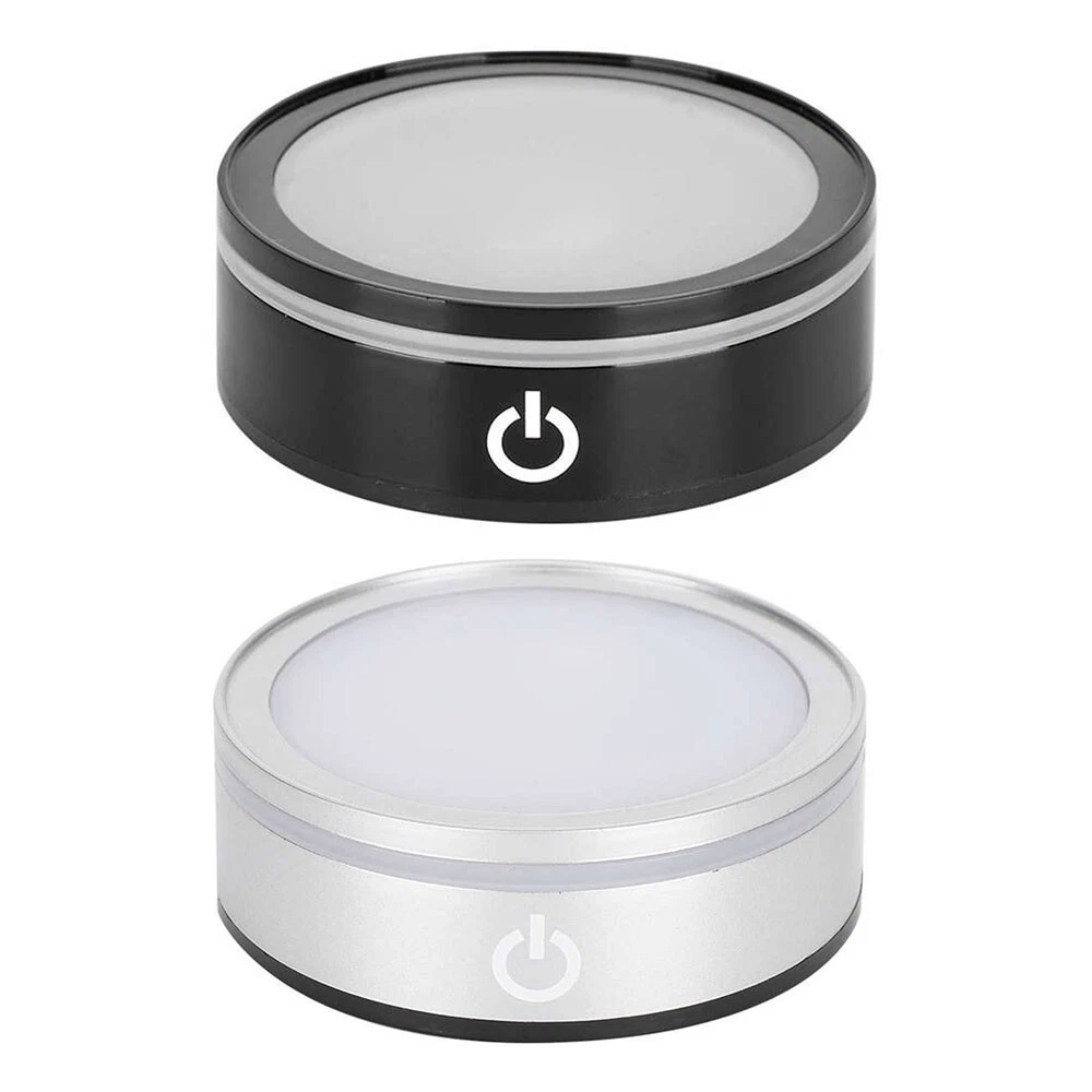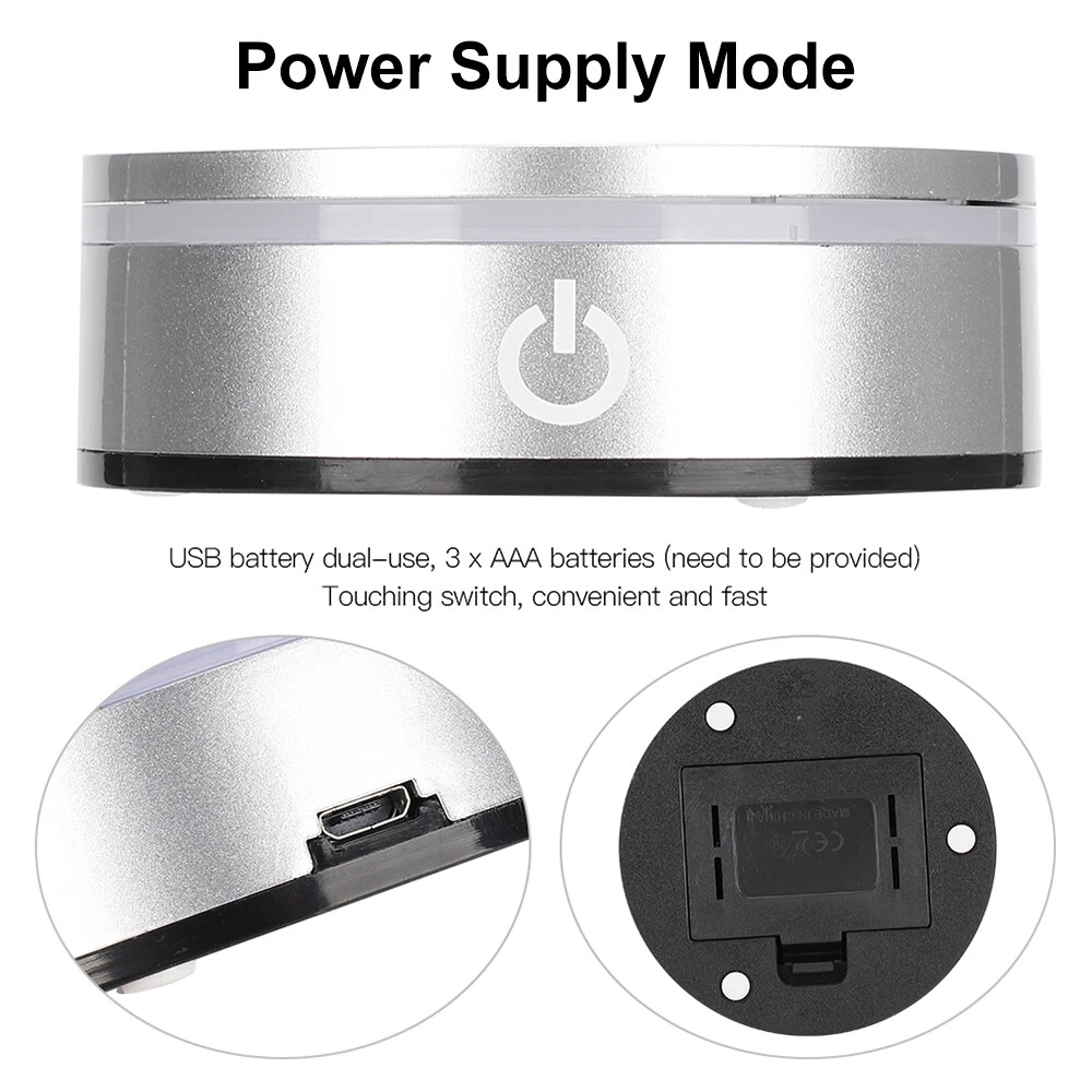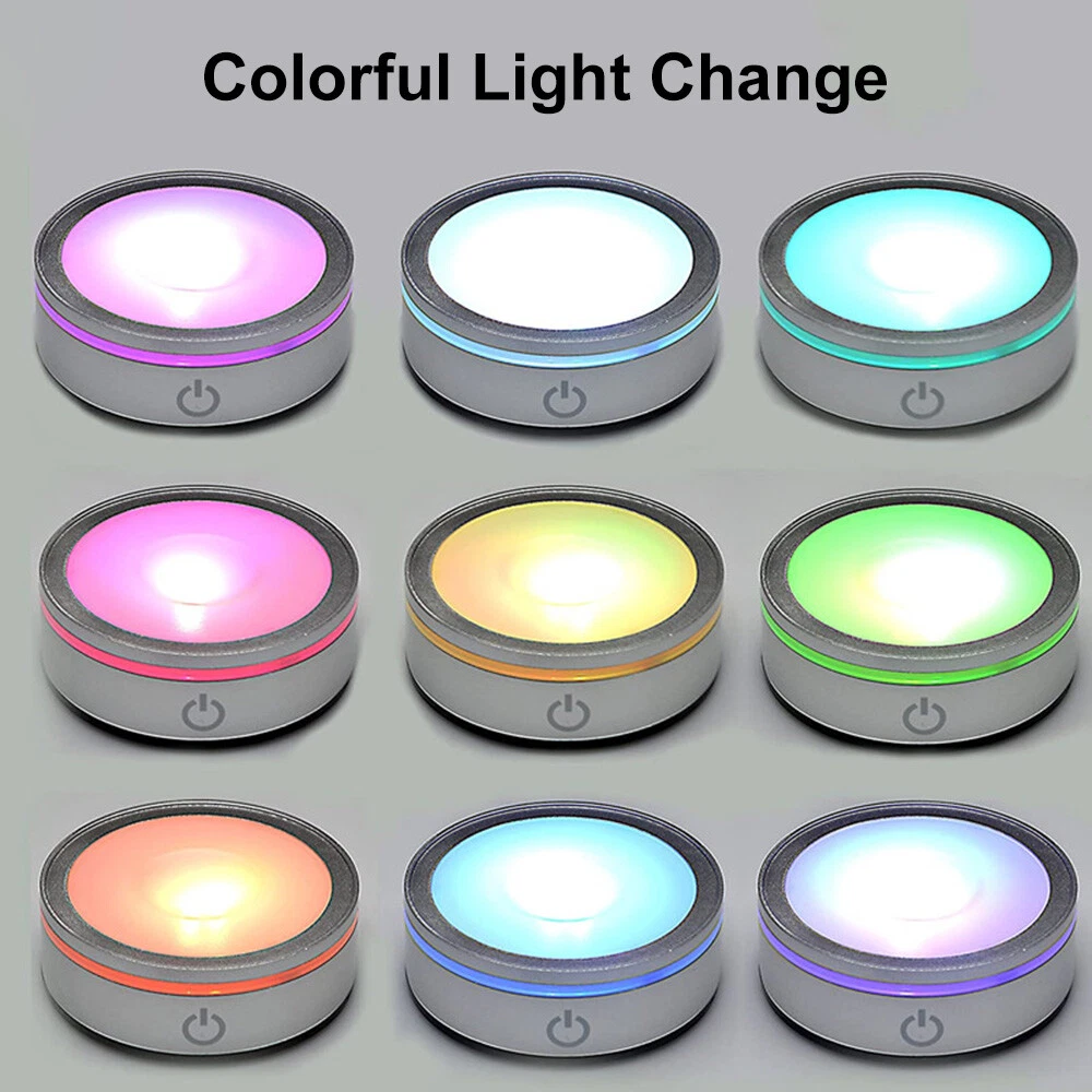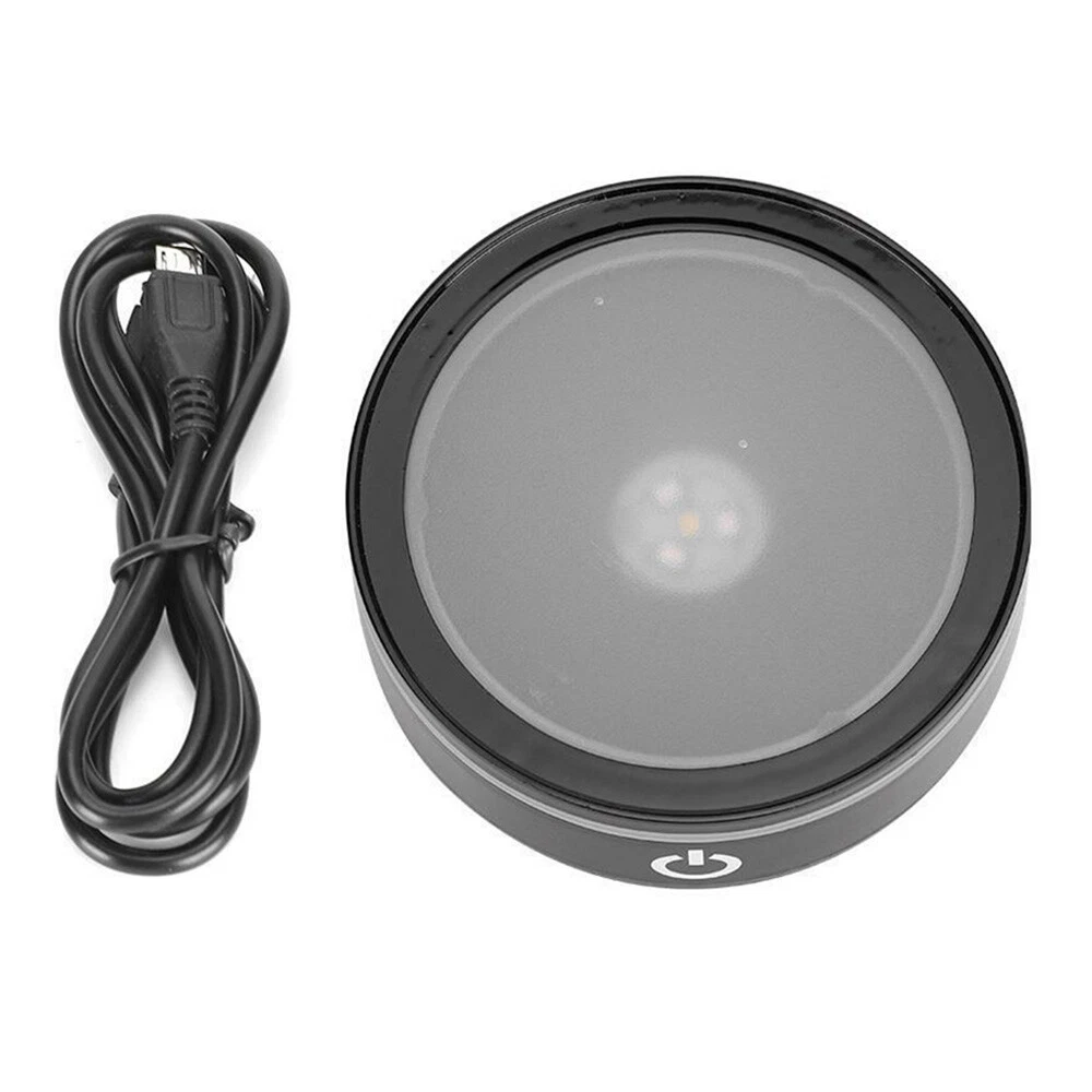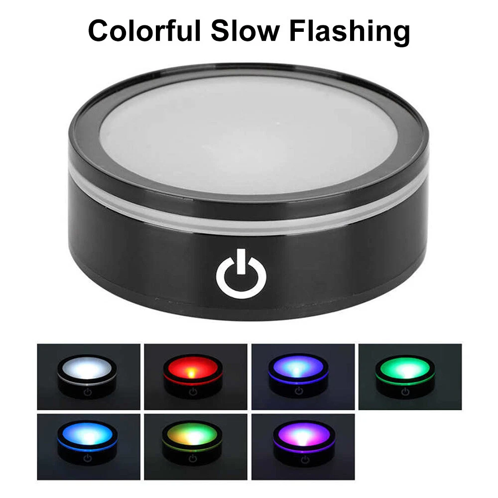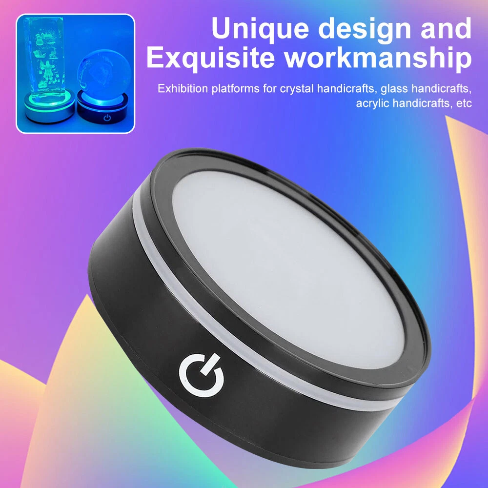 LED Rotating Crystal Light Display Base Stand Round Holder Home Luminous Decor
