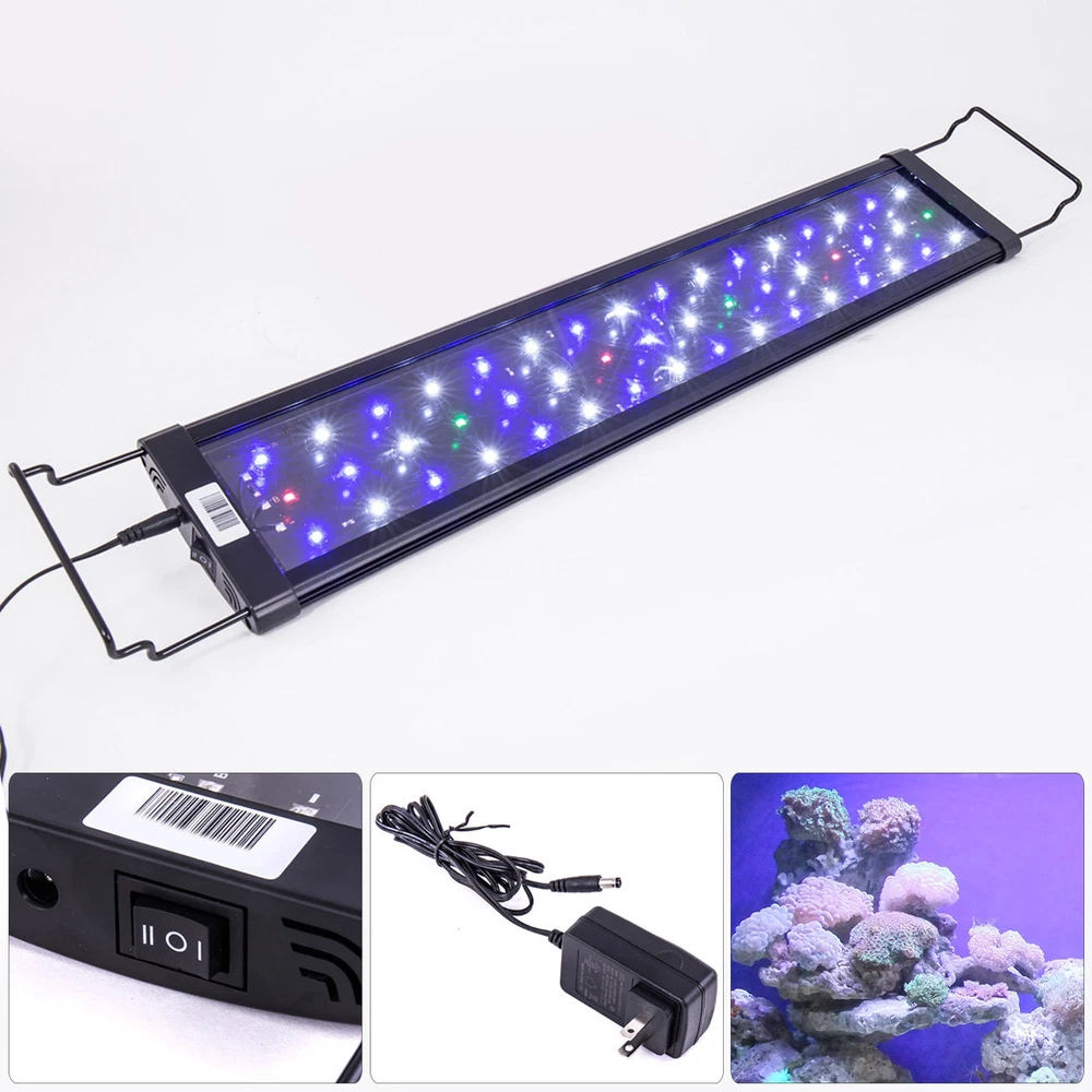 LED SMD 24"-30" Multi Color Aquarium Fish Tank Light Extendable Bracket 2-Modes This upgraded colorful full spectrum 0.5W LED aquarium light with expendable brackets is great for your aquarium tanks. Not only does it help algaes grow more luxuriant, but it also enhances your aquatic plants to have more vivid color - adding even more ornamental value to your aquarium tanks. Features: 48 LEDs with 4 Colors: Full-spectrum, super bright, energy efficient, and long lasting LEDs which produces an amazing vivid shimmer for your aquarium. Adjustable Mounting Legs: Extendable brackets allow for flexibility in fitting a variety of aquarium tanks with widths ranging from 24 inches to 30 inches. Durable Design: Constructed from an aluminum alloy shell for faster heat dissipation while providing a much more durable body than those made of plastic. High-quality LEDs can be used for at least 50,000 hours. Applications: Suitable for both freshwater or saltwater tanks, and low-to-high light level aquarium plants. It is strongly recommended to use over a glass aquarium cover or acrylic canopy top. Do not use over "open" water. 3 Optional Lighting Modes: All LED Lights On. Only Blue LED Lights On. All Lights Off. Specifications: 24" to 30" Aquarium White LED - 21 Pieces (10000K 0.5W) Blue LED - 21 Pieces (460NM 0.5W) Red LED - 3 Pieces (625NM) Green LED - 3 Pieces (625NM) Lumen - 2880 Extendable Bracker Length: 5 Inches Size Of Light: 21.8" x 4.5" x 0.5" Communication is very important and we will try our best to assist all our customers with any concerns. Have a question? Please do not hesitate to send us a message through the ebay messaging system or Click Here and we will reply to your message. We are open from 10:00am - 6:30pm Pacific Standard Time (PST) Monday through Friday (excluding weekend and holidays). We are closed during the weekend and holidays and cannot respond to emails during those times but will respond as soon as we return. Questions are answered in the order they arrive as quickly as possilble. If you have a problem about your shipment, please email us to resolve your issues before leaving feedback. PAYPAL: We mainly accept payments via PAYPAL (USD ONLY). Credit Cards: We accept credit card payment only with PAYPAL by Clicking on PAY NOW button after a purchase and it will take you through the checkout. Payment is expected within 3 days after an auction ends. Orders will be processed and shipped out within 1-2 business days after payment has cleared. (NOTE: Business days do not include weekend & holidays) California Customers are required to pay sales tax. (CA Tax = 8.75%) Texas Customers are required to pay sales tax. (TX Tax = 8.25%) Items are shipped depending on location of the customer as well as the location of the item stock. Both TX and CA are subject to sales tax. Items may not always be in stock. If an item runs out of stock, we will try to find another supplier to ship it out for us. If we cannot, we will notify the winner by message for a different item or a full refund. Insufficient shipping information will delay the order process so please read the invoice carefully during checkout. Make sure that the shipping information is correct to avoid delays. Restocking Fee will apply for all returned items due to insufficient information. We use United States Postal Service (USPS), United Parcel Service (UPS) or Federal Express (FedEx) to ship our packages. Shipping Charges will include handling charges and insurance. Shipping Carriers used will be based on weight/length/destination of the customer. Ground Carriers do not deliver to PO BOX and additional charges will be required. Additional shipping fee is required for the following states or areas: Hawaii (HI) , Alaska (AK) , Puerto Rico (PR) , Guam (GU) , Virgin Islands (VI) , Saipan (MP) , Army Post Office (APO) , Fleet Post Office (FPO) FOR ALL BUYERS WITHIN US PROTECTORATE TERRITORIES SUCH AS PR , HI , AK , GU , VI , APO , FPO PLEASE SELECT UNITED STATES POSTAL SERVICE AS THE SHIPPING METHOD OTHERWISE YOUR ORDER WILL BE PLACED ON HOLD. Canada and International Countries International Buyers - Please Note: Import duties, taxes and charges are not included in the item price or shipping charges. These charges are the buyer's responsibility. Please check with your country's customs office to determine what these additional costs will be prior to bidding or buying. We cannot mark merchandise values below value or mark items as "gifts" - US and International Government Regulations prohibit such behavior. Tracking numbers or shipping confirmation numbers will be emailed after they are processed. Tracking numbers are also available upon request by contacting us through the eBay message system. We do not offer local pick ups for any orders made through eBay. Items are ONLY shipped to the verified address provided through the PayPal transaction. The customer is responsible for making any changes prior to purchasing. Once order is placed we will no longer make any changes for shipping information. Order processing is done during normal business hours (Monday - Friday). Please understand if you order the item after the processing hours, we will continue processing it the next available business day. Orders placed on weekends and holidays will be processed the follow business day. All orders require up to 1-2 business days for processing in which a valid tracking number will be uploaded into eBay. Please allow time for the tracking number to be updated within those 1-2 business days. Shipping couriers are subjected to change based on the package size. (We will not ship to PO Boxes) ***We do not offer customers the option to choose for standard shipping*** Fedex USPS (United States Postal Service) LOCATION SHIPPING RATE INSURANCE SHIPPING TIME USA 48 States USD $0 Included! 3-8 Business days PO BOX, GU, PR HI, AK,APO/FPO USD $0 Included! 3-9 Business days Sales Tax % 8.75% California Customers / 8.25% Texas Customers All return merchandis