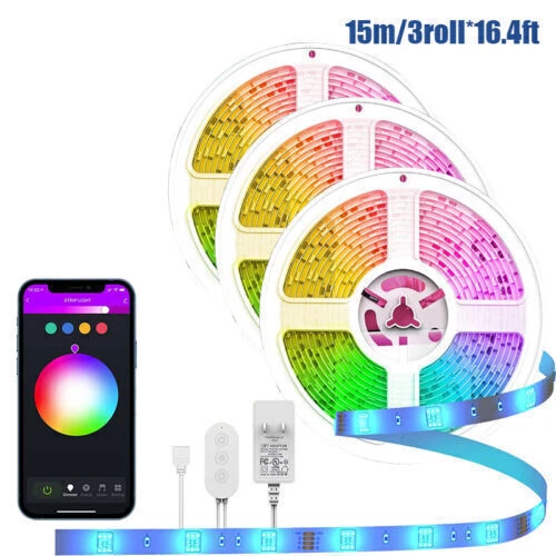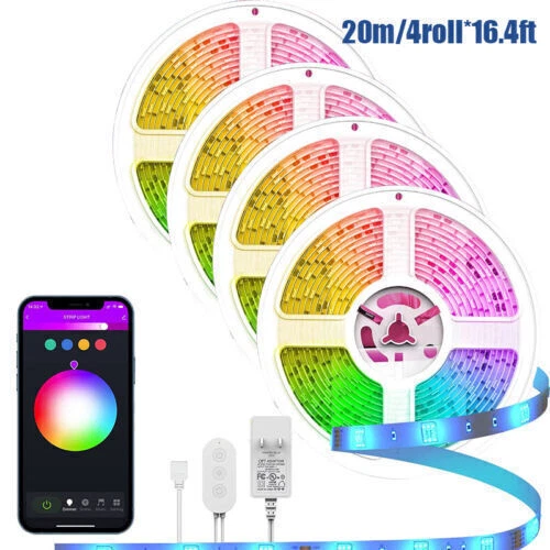Product Description Product description: 32ft(2Roll*16.4ft)Key indoor use 【 RGB Color Changing 】This light strip has 20 colors and 8 modes: Quick/Slow/Auto/Flash/Fade/Jump. The 44 keys infrared controller has 6 DIY keys for memorizing the colors that you preferred, You can choose the color, modes, speed, DIY effects settings, and brightness of the LED strips according to your mood and atmosphere and enjoy the most pleasant lighting. 【 Easy Installation 】 LED strips are made of flexible materials and their backs are self-adhesive. The LED strips can be cut along the cutting marks. Without damaging the remaining LED strips.The LED strip strip can be easily attached anywhere. Bend, expand and design at your own discretion. 【 Wide application 】 The LED strip can be used outdoors. The colorful lights in the dark are perfect for watching TV, Perfect for garden, Christmas, party, wedding, vacation, dining room, bedroom, patio, TV, sofa, mirror, beds, wardrobes, kitchens, blankets, outdoor balconies, Bars, etc. 【 Full Kits & Top Service 】 Packing include: 2×LED strip lights 5M (Total 10 M) , 1×44-keys Infrared Remote Control, 1×Power supply, 1×IR control box, 1×User manual. ►Your customer service will be through a professional customer team, you can buy without worry. If you have any questions, we are happy to help. 16.4ft smart light strip Hands-Free Voice Control: The smart LED strip light works with both Alexa and Google Home. With simple voice commands, frees up hands to turn on and off, change colors, or dim brightness Wireless App Control: The easy App_𝗚𝗼_𝘀𝘂𝗻𝗱 control provides convenient management over your led lights, have access to customized functions like 8 DIY scene modes and a daily sleeping timer and schedule. (Only Support 2.4GHz WiFi ) Sync to Music: The built-in mic allows the LED lights to sync to various dynamic music. Use the smart app to let your lights dance to music beats Timer and Schedule: Set a timer for the bedroom and living room LED light strip by your family's daily routine, manage the time to get up and sleep by lights on and off Easy to Install: Including 16.4Ft LED light with adapter and mounting clips. Please keep the surface clean and dry when attaching the steady and strong 3M adhesive of the strip light Light Source Type: LED Color: Rgb (Red, Green, Blue) Special Feature: Corded Connectivity Protocol: Wi-Fi-2.4GHZ Material: Copper Wattage: 12 watts Control Method: App Controller Type: App Control, Voice Control Item Weight: 7 ounces Package Dimensions: 6.5 x 5.43 x 1.26 inches Specific Uses: Indoor use only Light Direction: Adjustable About Us Payment Shipping Returns Contact Us We pursuit 100% transactions satisfaction,We attach importance to every customer from around the world,Please buy with confident!if you have any issue,you can just give us a message,and we give you full resolve. We guarantee 100% customer satisfaction. We will offer professional product support:Product Inquiry,Aftersale Service,Shipping solution and so on.If you got question or problem,please just contact us by ebay message. powered by