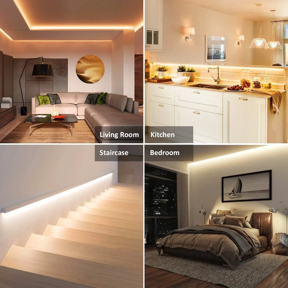 Store New Arrivals Add to Favorite View Feedback Contact LED Strip Lights White 52.5Ft 24V Dimmable 3000K-6000K LED Tape Rope Light with Remote Flexible 2835 LED Ribbon for Kitchen under Cabinet Mirror Room Indoor Home Daylight Warm White Description Item model number ULS-A Light Source Type LED Style decoration/home/bedroom/livingroom/kitchen Number of Items 1 Power Source Corded Electric Number of Light Sources 2835 Control Method Remote Theme Movie, Music, Neon, Christmas Tunable White LED Strip Lights, Fantasy, Halloween Batteries Included? No Assembled Height 0.1 inches Controller Type Remote Control Batteries Required? No Wireless Communication Technology Radio Frequency Product Dimensions 624 x 0.4 x 0.1 inches Material SMD/1920 LEDs Assembled Width 0.4 inches Seasons All Seasons Number of Batteries AAA batteries required. Included Components RF Remote*1, User Manual*1, Power Adapter*1, Controller*1, 26FT LED Strip Lights*2 Item dimensions L x W x H 624 x 0.4 x 0.1 inches Bulb Features Dimmable Indoor/Outdoor Usage Indoor Material Type SMD/1920 LEDs Light Color White Water Resistance Level Not Water Resistant Item Weight 10.9 ounces Connectivity Technology Radio Frequency Occasion Christmas, Bedroom, Father's Day, Congratulations, Birthday Special Features Adjustable Special Feature Adjustable Part Number ULS-A Color Temperature 6000 Kelvin Color White Wattage 36 watts Batteries AAA batteries required. Voltage 12 Volts Plug Format US Style Assembled Length 52 Feet Luminous Flux 2750 Lumen Size 52FT 24V Safe White LED Strip & Long Life: Low heat generation and low voltage of 24V. The tunable white led strip 26ft*2 is touchable and without danger. The dimmable LED strip lights of 52ft is UL & FCC listed for safety and quality assurance. The power supply is UL certified and thus guarantees a long service life. Please as soon as possible if you have any problems with the item. We will find the best solution for you within 24 hours. Dimmable White LED Strip & Multimode: The color temperature for the led strip lights is adjustable from 3000K-6500K (a total of 10 levels). You can flexibly switch between warm white, daylight and cold white. There are separate buttons to control multiple modes. Timer & extra DIY Buttons with memory function. Super Bright & Dimmable: Ustarus light strip 24v adopts new 2835 LEDs as conventional 3528 LEDs, guarantees higher brightness, nicer light, better heat dissipation. 1920 LEDs that can be dimmed from 10% to 100% provide you with sufficient light power from 10 levels of brightness. Please kindly note that you cannot dim the light without a remote. Easy Installation & can be shortened: Please clean the wall and keep the wall dry before installing the led strip lights so that the led tape could be adhesive to the walls. Multiple functions are adjustable by one button, easy to use. The LED tape can be cut at the marked points. Please search for “2835 4 pin connector” for a re-link. Practical 360 ° RF Remote Control: RF can control longer distance (up to 15M) than IR. It can also penetrate an obstacle. You can control the white led strip in every corner of the room. One Ustarus remote control connects to only one LED strip. Ustarus led strip lights is compatible with smart plug. Product Description • Ustarus is a company that focuses its activities on getting involved in the field of lighting for houses. • We are committed to creating excellent lighting for global families through constant innovation, dedicated work and excellent products. Why 52FT Ustarus LED light strips? When you need 50ft led strips • Voltage is only DC 24V. Thanks to the excellent heat dissipation, the LED light strip can be touched. There is no danger! • You can use the white led strip in cars safely. • No lead or mercury, no UV or IR radiation. • Adopted high quality LED 2835 with low heat generation ensures long life up to 50,000 hours. • 10 Brightness & 11 color temperature 100% security & non-toxic Durable Flexible operation Easy handling Warm white + natural white + daylight + cold white Widely used in hotel, kitchen, living room, architectural decoration, security and emergency lighting. Shortable & Foldable Please shorten the 2835 led strip directly along the marks. The thickness of the white led tape is about 0.4mm. This is convenient for you to bend the light strip at will at the corner. Connetor & Extension Wire Please search for “2835 4 pin connector” as keywords for the re-link. All extension wires suitable for 10mm, 4 pin connectors can be used for connection. 4 Steps to Install 1. Clean the surface; 2. Remove the adhesive; 3. Paste and press for 10 seconds; 4. Turn on the led strip lights. Package Inhalt 2X 26ft Dimmable White LED strips; 1X Upgraded RF remote controller, 1X ETL Listed power adaptor; 1X Controller Cable, 1 x User Manual Specification: Wattage: Max. 32W; LED Quantity: 1920 LEDs Color Temperature: 3000-6500k adjustable Color: warm white, daylight white, cool white Working Voltage: 24V; Protection Rating: IP20 Length: 16m/52ft; LED Type: 2835 Versatile Application You can decorate and light up your kitchen, living room, bedroom, TV background, mirror, door, wall, stairs, ceiling, cabinet, etc. Used to create a warm atmosphere and environment (wedding, birthday, party, bar) during the festival. Interior lighting Ideal for illuminating kitchens, cosmetic mirrors, dining tables, bays, benches, shelves or wardrobes or for commercial applications. Wherever you have a port, you have brilliant LED lighting in your home. Decoration Decorate your bedroom so that you have a restful and relaxed environment. The number of possible uses of the LED light strip is only limited by your imagination. DIY LED light strips are flexible and can be bent into any desired shape. Let your imagination run wild and create your own fairy lights. (Attention: Children must be accompanied by adults) The remote controller can control either one or many strips accordi