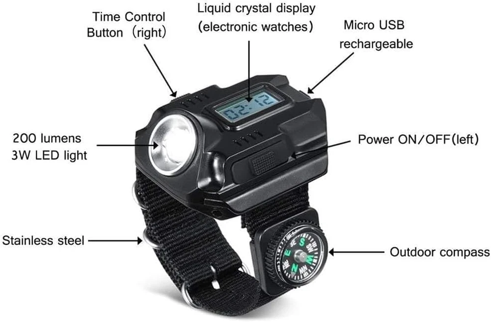 FREE FAST SHIPPING SATISFACTION GUARANTEED LIFETIME WARRANTY 24/7 CUSTOMER SERVICE π₯ Key Benefits: Hands-Free Tactical Lighting β Wear this powerful LED wrist-mounted flashlight and enjoy bright, reliable illumination while keeping both hands free for running, biking, or other activities. Rechargeable & Eco-Friendly β No need for disposable batteries! This wrist light is rechargeable for long-lasting performance and a more eco-friendly option. Built-In Compass for Navigation β The included compass helps guide your way, making this wrist light perfect for hiking, mountain climbing, or any adventure in the wild. Lifetime Warranty β 100% Risk-Free Purchase! β We stand by the quality of our products! If anything goes wrong, weβll replace or repair your wrist light for lifeβno hassle, no extra cost. π Key Features: β Wrist-Mounted LED Flashlight β Enjoy a hands-free lighting solution with this lightweight, portable wrist light, perfect for outdoor activities like hiking, running, and biking. β Rechargeable & Bright LED β The powerful LED provides reliable brightness, while the rechargeable design ensures youβre always ready for your next adventure. β Integrated Compass for Outdoor Navigation β Stay on track with the built-in compass that helps guide you during outdoor excursions, ensuring safe and easy navigation. β Durable & Weather-Resistant β Designed to withstand rugged conditions, this wrist light is weatherproof, ensuring reliable use in any environment. π Product Description: Step into the wild with confidence and hands-free lighting with the LED Tactical Wrist Light Flashlight . Whether you're running, biking, or tackling challenging mountain climbs, this wrist-mounted torch offers bright illumination without slowing you down. Order yours today and take on the great outdoors with powerful, wearable light! ππ―οΈ