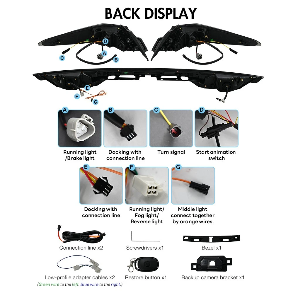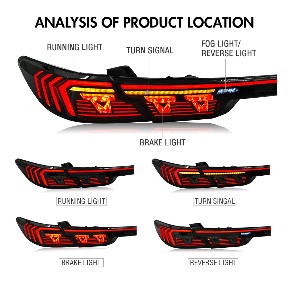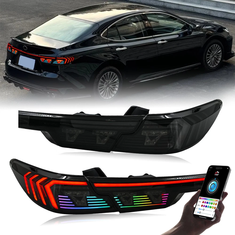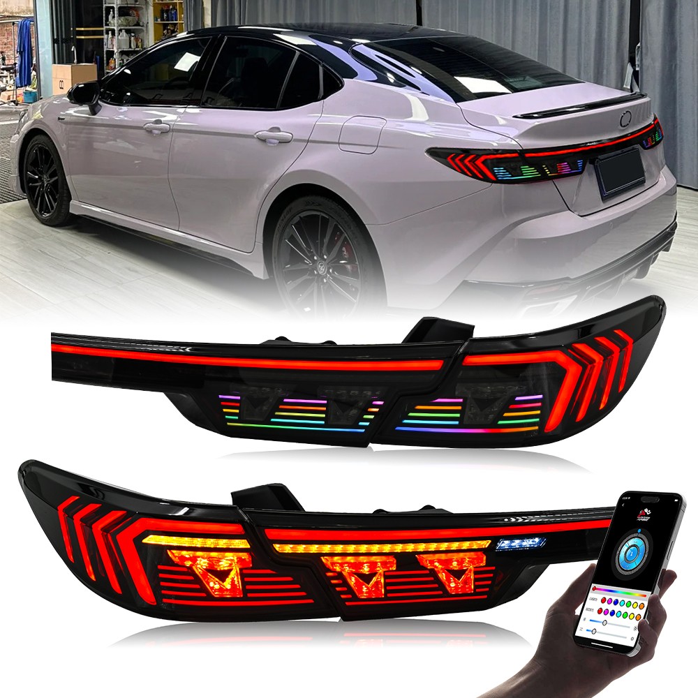 RGB LED Tail Light Trunk Lamp Fit For Toyota Camry 2024-2026 Rear Lamps Assembly Features: 1. One pair: Left + Right + Center Trunk tail lights 2. Tail Light Lens: Smoked Lens, Chrome Housing 3. Bulbs: All bulbs are built-in LED, no extra bulbs needed 4. Function: Rear Running Light (Red/RGB)+Turn Signal(Amber )+Reverse(White)+Brake (Red) lights 5. Easy installation: plug and play,same as original one to install 6.Assembly: all parts are included in the package,no need to buy extra bulbs or harness Fitment Fits For Toyota Camry 2024 2025 2026 ( Professional Installation is Highly Recommended ) Package include 1 Pair of Taillights (driver's side + passenger's side) Note 1. Please confirm whether this car-lamps can fit your car before buying, if you are not sure, please contact us and send us pictures of your original car light or plug. 2. Using your factory supplied connector/harness will avoid cutting or modifying any wires. Specification ·100% Brand New ·Professional Installation is Highly Recommended ·Welcome to send us message for more information Warranty: One-Year warranty after receiving After Sales Service Please contact us before returning the products, we will do our best to help you solve all the problem well with good service!!! Questions Any question will be replied within 24 hours except the weekend and holiday. We will serve for you all sincerity!