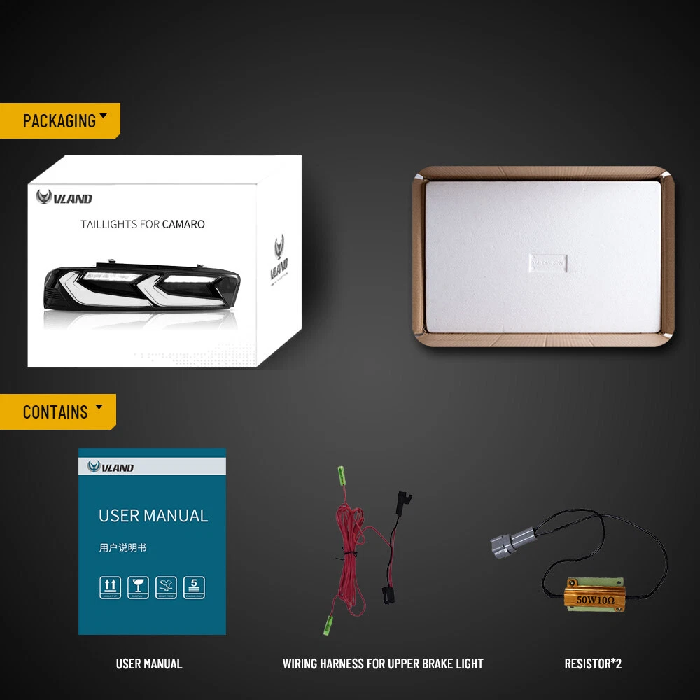 LED Tail Lights Smoked/Black Rear Lamps For Camaro Chevrolet 2016-18 Sequential Description: Compatible for: Chevrolet Camaro 2016 2017 2018 (Not fit for European models) Vehicle Exceptions: (Not fit for European models) Condition: Brand New Sold As: A Pair (Driver side & Passenger side) Tail Light Lens: Smoked Lens Running Light: LED (red) Signal Light: LED (Amber) Sequential Indicator Brake Light: LED (red) Reverse Light: LED (white) Fog Light: / Installation: Plug & Play Bulbs Included: Full Built-in LED included, no need extra bulbs. Warranty: 1 year Tips: Professional installation is highly recommended Video(The video color is for reference only, and the physical object shall prevail) SPECIFIC SHIPPING ABOUT PAYMENT RETURN SPECIFIC SHIPPING ABOUT PAYMENT RETURN Store Categories Store Categories Headlights Taillights Headlights&Taillights LED Bulb Other LED Tail Lights Smoked/Black Rear Lamps For Camaro Chevrolet 2016-18 Sequential Description: Compatible for: Chevrolet Camaro 2016 2017 2018 (Not fit for European models) Vehicle Exceptions: (Not fit for European models) Condition: Brand New Sold As: A Pair (Driver side & Passenger side) Tail Light Lens: Smoked Lens Running Light: LED (red) Signal Light: LED (Amber) Sequential Indicator Brake Light: LED (red) Reverse Light: LED (white) Fog Light: / Installation: Plug & Play Bulbs Included: Full Built-in LED included, no need extra bulbs. Warranty: 1 year Tips: Professional installation is highly recommended Video(The video color is for reference only, and the physical object shall prevail) SPECIFIC SHIPPING ABOUT PAYMENT RETURN SPECIFIC 1.This Price is for a left & right 1 pair 2.Bulk Discount is negotiable! 3.If you are interested in selling some of our products exclusive in the entire market,please contact us via eBay message! SHIPPING Our default shipping rates are for the 48 US states only via UPS Ground. No Alaska, Hawaii, Puerto Rico, APO, FPO or PO Box please. We usually ship within 1-2 business days of receiving cleared payment. Unless otherwise noted, Buyer pays shipping. Pick up at our facilities is available. Please contact us prior to your purchase to arrange pick up. For items marked with FREE shipping no shipping fees apply to 48 US states. Freight Items We will not ship freight items and some larger or fragile parts outside of the 48 US states. For large items that must be shipped via Freight Truck (i.e. engines, transmissions), the delivery site must be a commercially zoned address capable of unloading a freight truck. We can also arrange for you to pick up your freight item at your local freight terminal. For an accurate residential freight quote, please contact us before your purchase. If for some reason our shipping cost is greatly over this estimate, we reserve the right to ask for additional funds or an alternate ship to address. Shipping Deadlines We will process every order within 24 orders of checkout. Please allow 1-5 days for delivery. Most areas in the US are within 5 days. No Expedited shipping is available. ABOUT If you have a question about a part please contact us before purchasing. Our main contact method is by ebay messaging. We try to answer all messages within 24 hours, Monday - Friday 8am-5pm Eastern Standard Time . If we are unable to answer your questions before the listing ends the item will be re-listed again soon for you to purchase. PAYMENT RETURN 1. We offer 30 days return policy. 2. Please contact us within 30 days from the date you receive your package if you have any questions with the products . 3. Refund will be sent after we got your returned package. 4. All returned items should be in the original packaging with tracking number. On Dec 24, 2024 at 19:36:51 PST, seller added the following information: