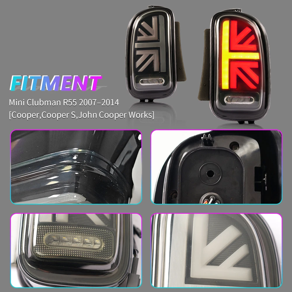 Compatibility: LED tail lights compatible with 2007–2014 Mini Clubman R55,Mini Cooper/Cooper S/John Cooper Works. OEM: 63217167412,63217167411,63212754530,63212754529,63217255919,63217255920 What's Included: 1 Pair of Tail Lights Required harness Specifications: Bulbs Type: LED Chips(No need bulbs) Certifications:DOT Voltage: DC12V Housing Color: Black Lens Color: Smoked Housing Material: ABS plastic Lens Material: PC Connector(s): OEM-Size Plug and Play Protection: IP68 Weatherproof Application: Taillamp Features: Starting Animation:When it is ignited, it has the dynamic of scanning welcome Sequential Turning Light:Use dynamic sequential turning light, more eye-catch than the original turn light Full LED Design:More brighter than the original rear lights Plug and Play Compatibility: LED tail lights compatible with 2007–2014 Mini Clubman R55,Mini Cooper/Cooper S/John Cooper Works. OEM: 63217167412 , 63217167411 , 63212754530 , 63212754529 , 63217255919 , 63217255920 What's Included: 1 Pair of Tail Lights Required harness Specifications: Bulbs Type: LED Chips(No need bulbs) Certifications:DOT Voltage: DC12V Housing Color: Black Lens Color: Smoked Housing Material: ABS plastic Lens Material: PC Connector(s): OEM-Size Plug and Play Protection: IP68 Weatherproof Application: Taillamp Features: Starting Animation:When it is ignited, it has the dynamic of scanning welcome Sequential Turning Light:Use dynamic sequential turning light, more eye-catch than the original turn light Full LED Design:More brighter than the original rear lights Plug and Play Warranty: Provide one year of after-sales service. If you have any problems during installation or work of the lights, please feel free to contact us. On Nov 25, 2024 at 02:35:57 PST, seller added the following information: