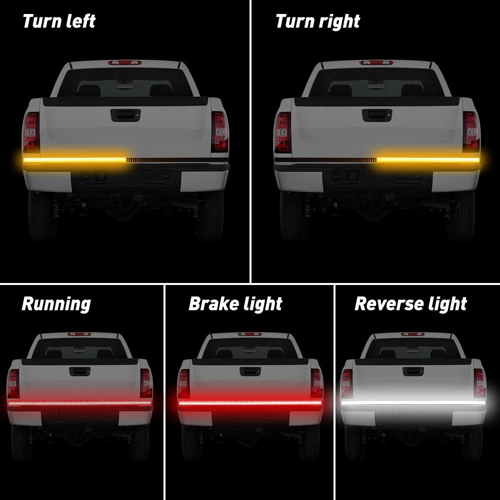 LED Tailgate Light Bar 60" Triple Row 5-Function Strip for Pickup Trailer SUV