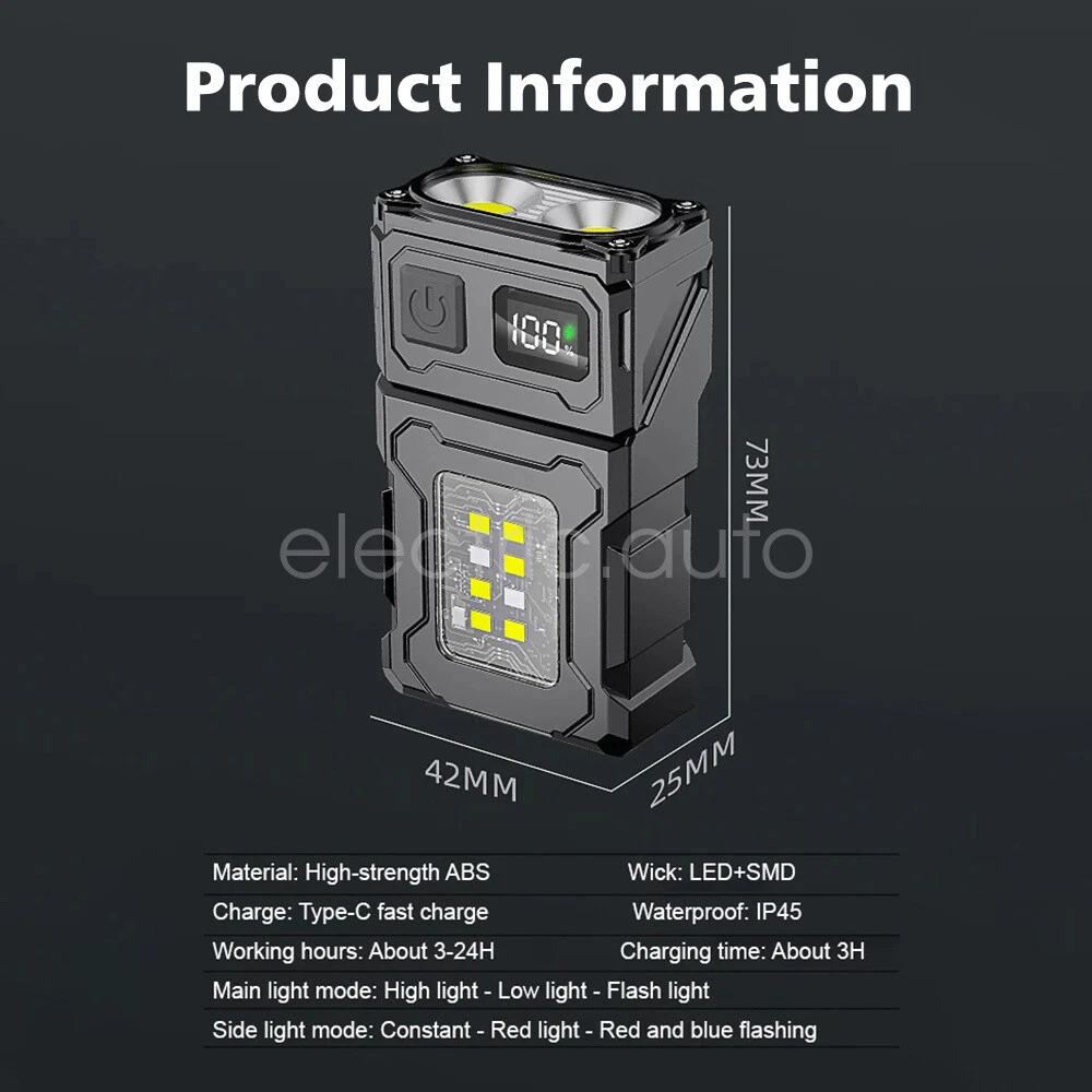 Product View Detail Features: 1. Multi-functional lighting: - This flashlight can not only be used as a car inspection light, but also as a work light for home repair, outdoor adventure, night walks and many other occasions. Its multi-purpose design allows you to get the lighting you need in different environments, reduces the number of tools you have to carry, and enhances the convenience of use. 2. Portable mini design: - The lightweight size (fits in your pocket, backpack or toolbox) and light weight make this flashlight perfect for carrying around. Whether you are using it for daily use or traveling with it, it can be easily adapted to ensure that you can quickly access it when you need it and meet your lighting needs anywhere and anytime. 3. Fast charging with long battery life: - Equipped with Type-C USB charging port, compatible with charging cables of many modern devices, charging is more convenient and fast. Built-in 800mAh polymer battery supports long time use, ensuring that you won't lose your lighting due to insufficient power at critical moments, suitable for long time outdoor activities or emergencies. 4. Waterproof and durable: - IPX4 waterproof design ensures that it can be used normally even in rainy or humid environments, suitable for outdoor adventure, camping and other activities. The high-strength shell is impact-resistant and can withstand accidental drops and impacts, which ensures the flashlight's long-term stable performance and reduces the need for maintenance and replacement. 5. Intelligent lighting mode: - Equipped with advanced LED COB technology, it provides 8 different lighting modes, including strong light, soft light, flashing light, etc. to meet the lighting needs of different occasions. Intelligent power indicator function lets you know the remaining battery power at any time to avoid accidents during use, and also automatically adjusts the brightness according to the ambient light to enhance the using experience. Product Specifications: Product net weight: about 80 grams Product Wick: LED+COB Charging method: Type-c fast charging Battery Display: 100% -75% -50% -25 Battery capacity: built-in 800Mah lithium battery Waterproof grade: IPX4 Product size: 81*45*26mm Product material: ABS + aluminum alloy Features: Strong magnet at the bottom / back pen clip / rotatable Package includes: 1×Torch 1×USB charging cable 1×Instruction manual Shipping Policy Payment Method Returns Policy Shipping Policy We only accept your Ebay Address ,Please Make sure it's 100% right. The items you ordered will be shipped out in 1 business day by Hong Kong Air Mail when your payment is clear. The arrival time is 5-20 business days to United States usually. We maintain high standards of excellence and strive for 100% customer satisfaction! Feedback is very important to us. We request that you contact us immediately BEFORE you give us neutralor negative feedback, so that we can satisfactorily address your concerns. Payment Method Returns Policy Copyright © 2017 DataCaciques LED Torch Flashlight Super Bright Dual Lights COB Outdoor Tactical Camping Lamp Home Payment Shipping About us Contact us Store Categories Store Categories Consumer Electronics PC&Tablet Accessories Mobile Phone Accessories Sound&Vision Headphones Watches Camera Led Lights Others Auto Car Accessories Lights Others Motorcycle Motor Accessories Lights Others Headlamp&Torch Others Other Product View Detail Features: 1. Multi-functional lighting: - This flashlight can not only be used as a car inspection light, but also as a work light for home repair, outdoor adventure, night walks and many other occasions. Its multi-purpose design allows you to get the lighting you need in different environments, reduces the number of tools you have to carry, and enhances the convenience of use. 2. Portable mini design: - The lightweight size (fits in your pocket, backpack or toolbox) and light weight make this flashlight perfect for carrying around. Whether you are using it for daily use or traveling with it, it can be easily adapted to ensure that you can quickly access it when you need it and meet your lighting needs anywhere and anytime. 3. Fast charging with long battery life: - Equipped with Type-C USB charging port, compatible with charging cables of many modern devices, charging is more convenient and fast. Built-in 800mAh polymer battery supports long time use, ensuring that you won't lose your lighting due to insufficient power at critical moments, suitable for long time outdoor activities or emergencies. 4. Waterproof and durable: - IPX4 waterproof design ensures that it can be used normally even in rainy or humid environments, suitable for outdoor adventure, camping and other activities. The high-strength shell is impact-resistant and can withstand accidental drops and impacts, which ensures the flashlight's long-term stable performance and reduces the need for maintenance and replacement. 5. Intelligent lighting mode: - Equipped with advanced LED COB technology, it provides 8 different lighting modes, including strong light, soft light, flashing light, etc. to meet the lighting needs of different occasions. Intelligent power indicator function lets you know the remaining battery power at any time to avoid accidents during use, and also automatically adjusts the brightness according to the ambient light to enhance the using experience. Product Specifications: Product net weight: about 80 grams Product Wick: LED+COB Charging method: Type-c fast charging Battery Display: 100% -75% -50% -25 Battery capacity: built-in 800Mah lithium battery Waterproof grade: IPX4 Product size: 81*45*26mm Product material: ABS + aluminum alloy Features: Strong magnet at the bottom / back pen clip / rotatable Package includes: 1×Torch 1×USB charging cable 1×Instruction manual Shipping Policy Payment Method Returns Policy Shipping Policy We only accept your Ebay Address ,Please Make sure it's 100% right. The items you ordered will be