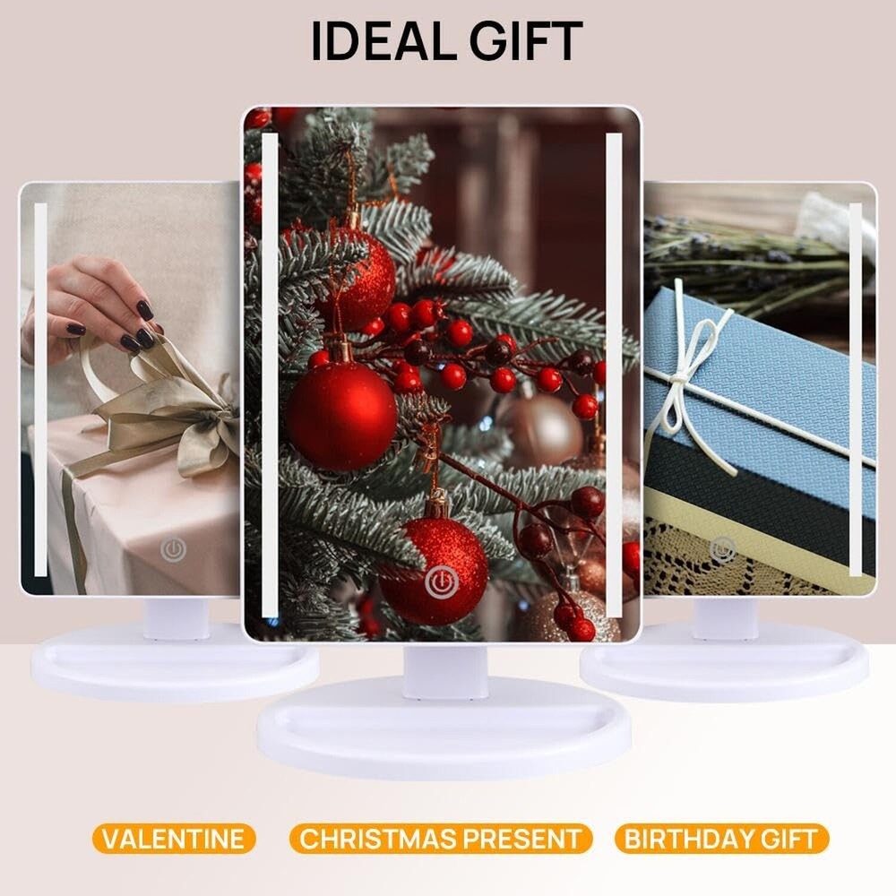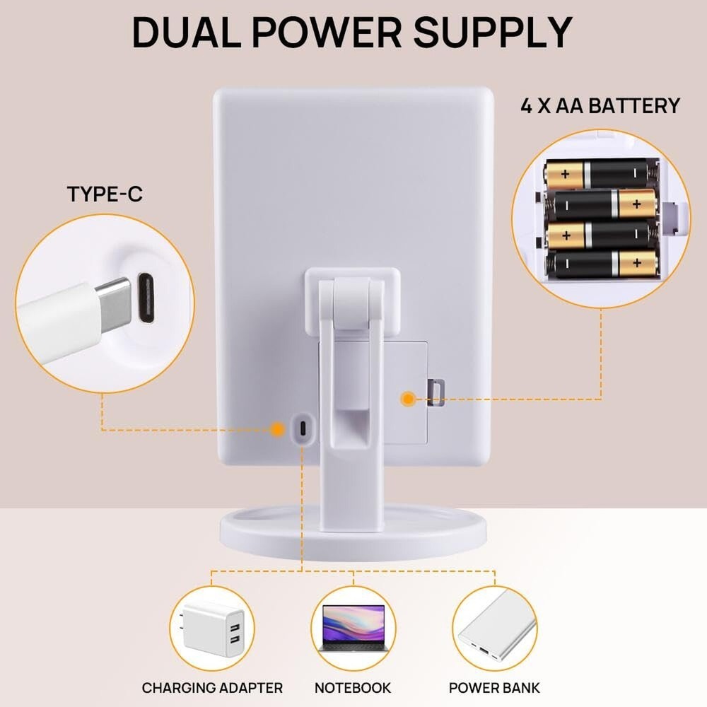 Vanity Makeup Mirror with LED Lights 180° Rotation Touch Screen Adjustable Brightness, Two Power Supply Modes Make Up Mirror (White) Product Details Brand: KAKULO Room Type: Dressing Room, Living Room, Bedroom Shape: Rectangular Product Dimensions: 10.5"L x 6.5"W Frame Material: Acrylonitrile Butadiene Styrene (ABS) Brand: KAKULO Room Type: Dressing Room, Living Room, Bedroom Shape: Rectangular Product Dimensions: 10.5"L x 6.5"W Frame Material: Acrylonitrile Butadiene Styrene (ABS) Style: Modern Mounting Type: Dresser Mount Finish Type: Polished Surface Recommendation: Wood Special Feature: 180 Degree, Dimmable, Lighted, Adjustable, USB Charging Color: White Theme: Love, travel Specific Uses For Product: Makeup Number of Pieces: 1 Number of Items: 1 Material: Style B-White Frame Type: Framed Assembly Required: Yes Frame Color: White Manufacturer: KAKULO Item Weight: 1.3 pounds Country of Origin: China Item model number: KA-BT01-WE-KAK31 Date First Available: July 26, 2023 Built-in LED Lights: The lighted makeup mirror has built-in adjustable LEDs, allowing you to apply makeup in various lighting situations such as day, night, home and office, providing soft but not dazzling brightness Adjustable Brightness: Lighted vanity makeup mirror, tap the bottom of the touch control to turn on/off the light, long press the touch screen sensor for a few seconds to adjust the brightness Dual Power Supply: Type-C cable and 4 AA batteries dual supply.(USB cable included, battery not included). please note that the LED mirror cannot store power by itself 180 Degree Rotations: KAKULO lighted vanity mirror with lights can be adjusted and fixed in position according to your needs, providing you with the best and comfortable viewing angle Perfect for Home or Travel Makeup Use: A functional and delicate Vanity Makeup Mirror is definitely a great gift for Birthday, Valentine's Day, Christmas, Thanksgiving, Mother's Day, Easter etc